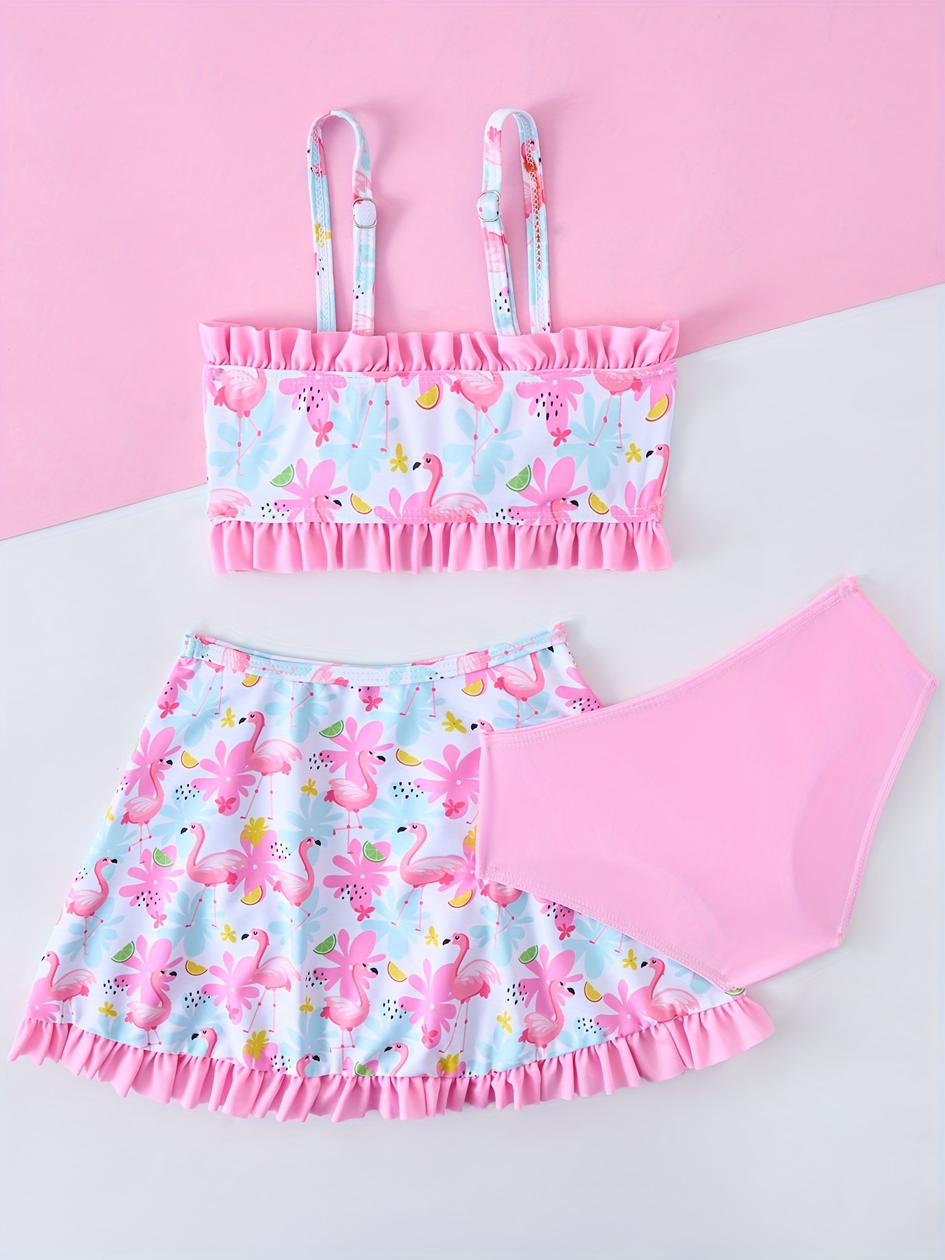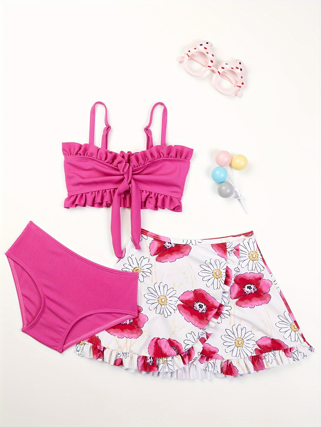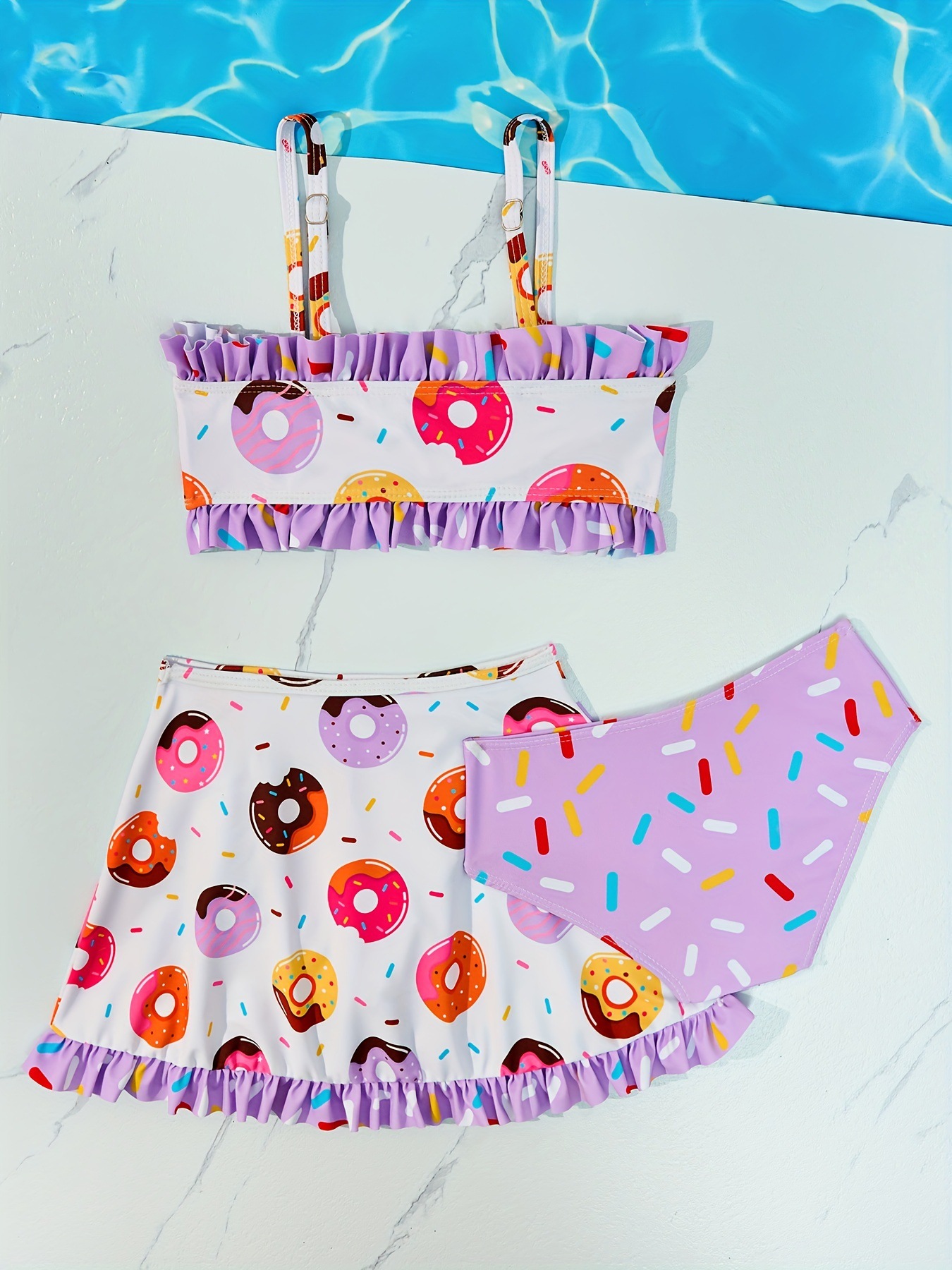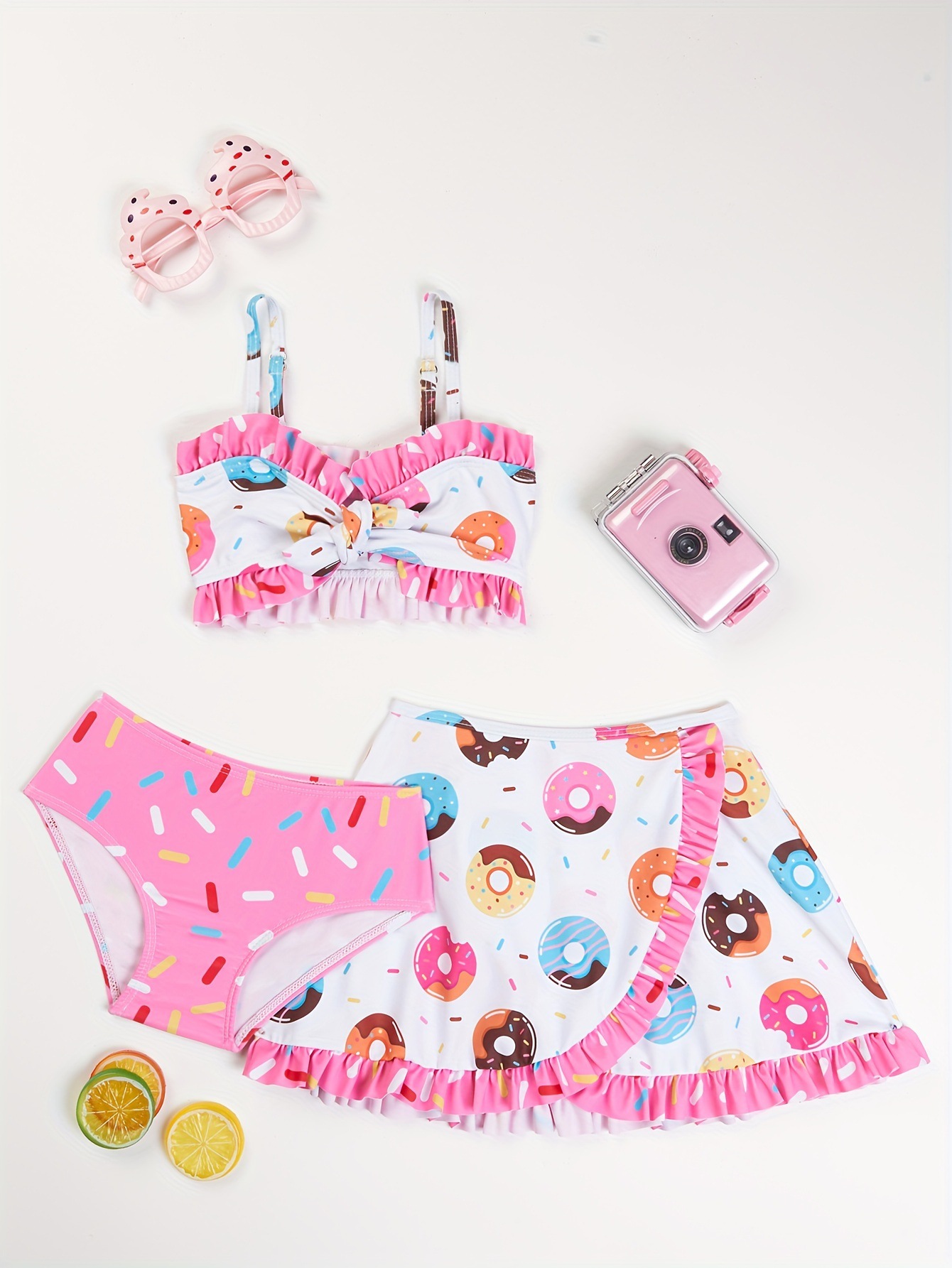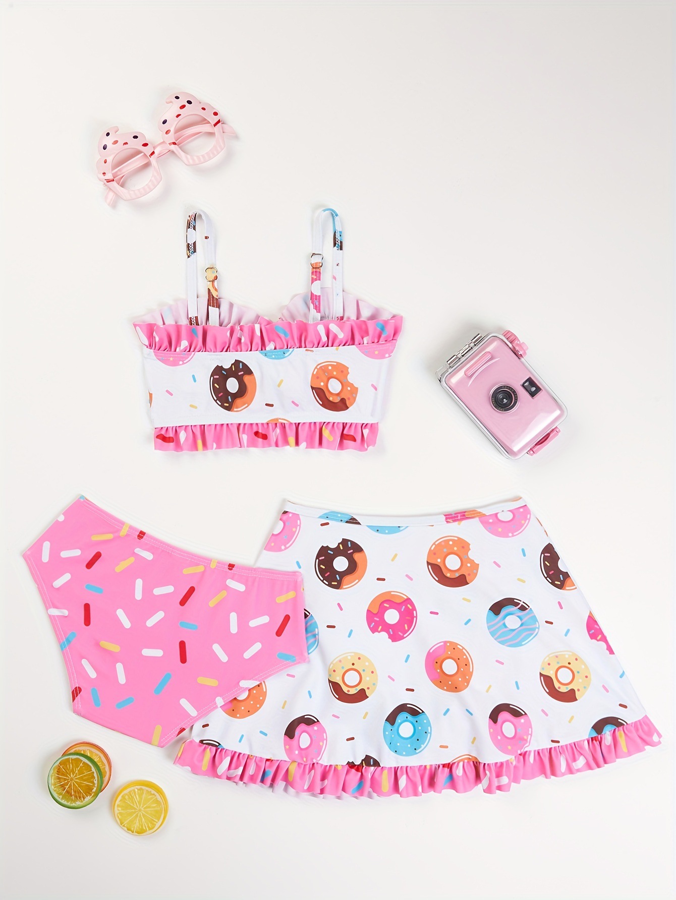 유럽과 미국의 새로운 스타일 여자아이 수영복, 귀여운 스커트형 수영복, 수영모, 아동용 한국 스타일 도매