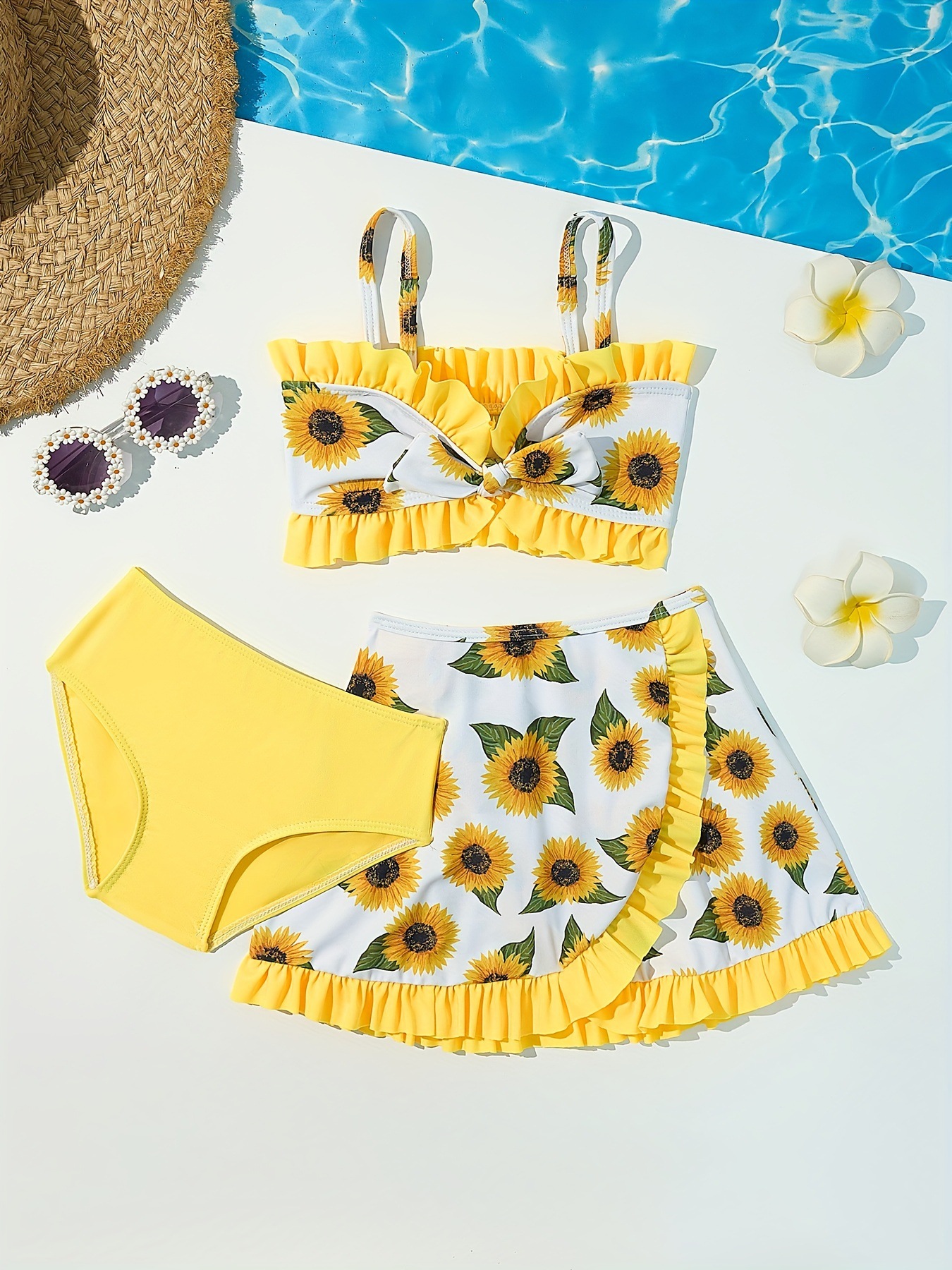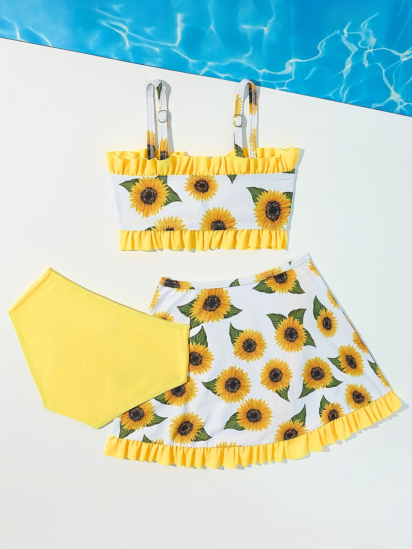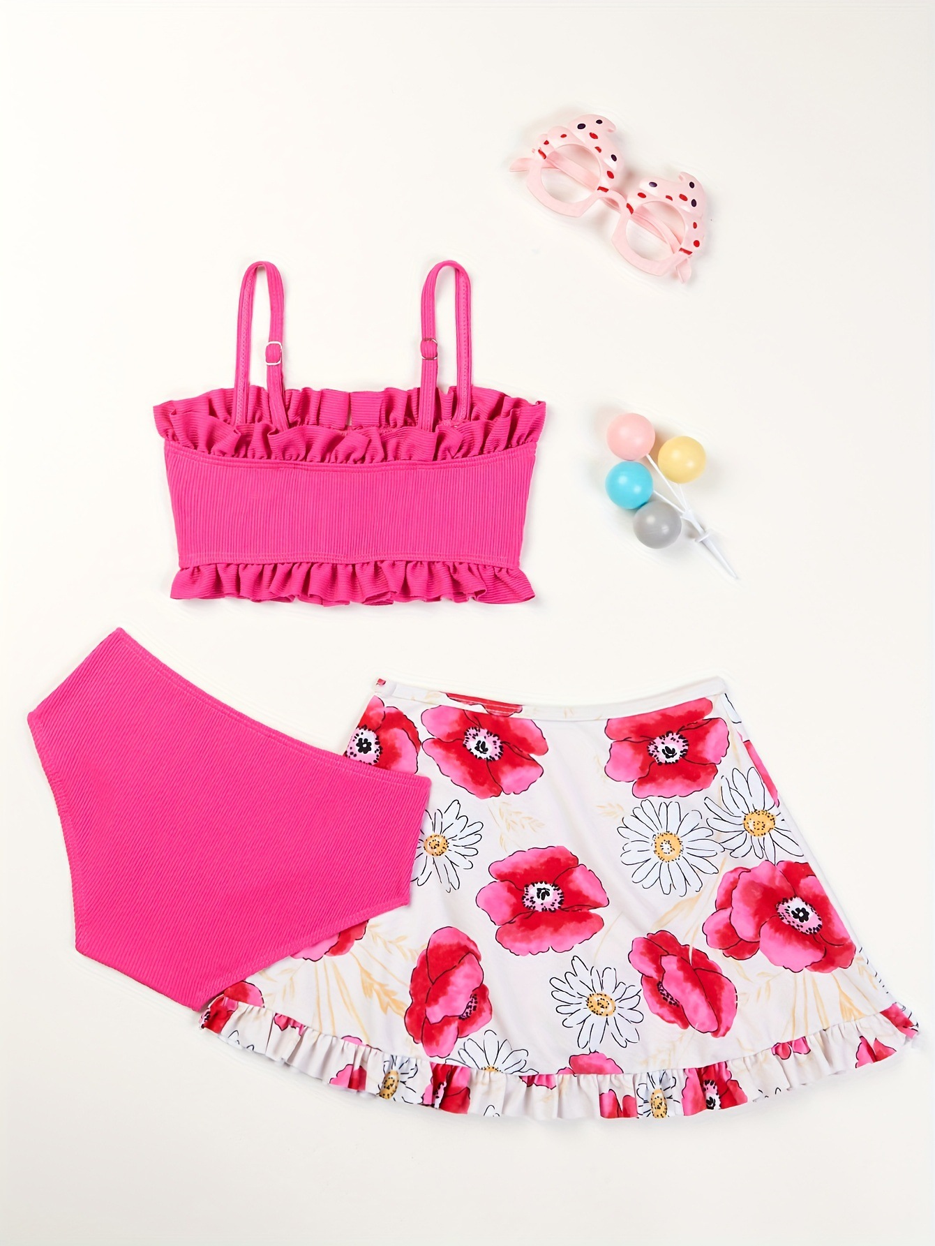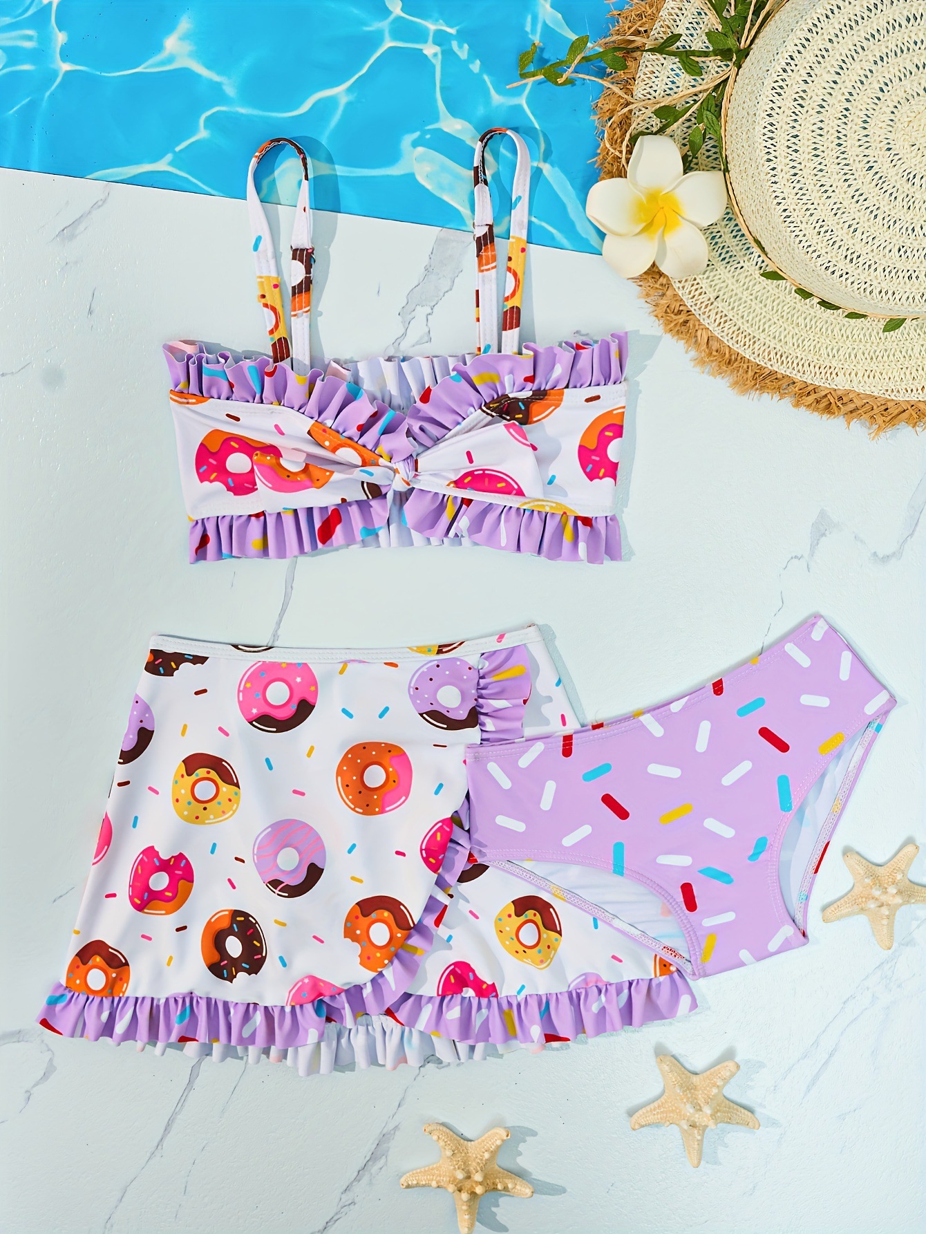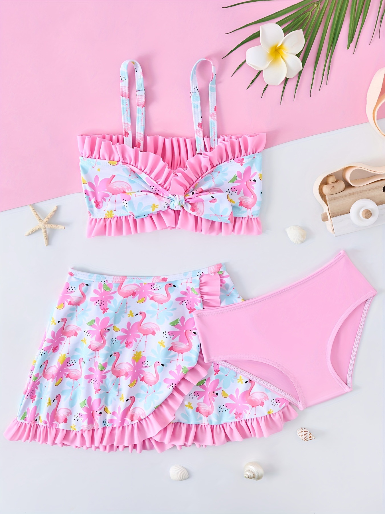 유럽과 미국의 새로운 스타일 여자아이 수영복, 귀여운 스커트형 수영복, 수영모, 아동용 한국 스타일 도매