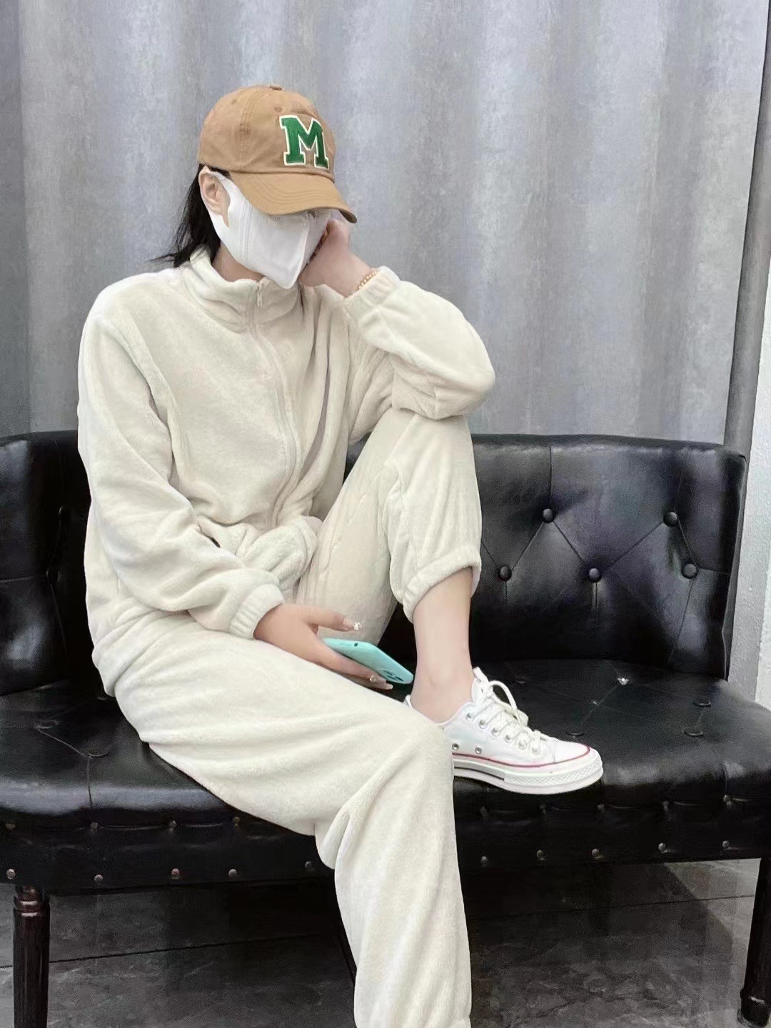 2025년 신상 여성용 가을 겨울 코랄벨벳 기모 두꺼운 따뜻한 홈웨어 외출복 한국 스타일 캐주얼 세트스토어 가기