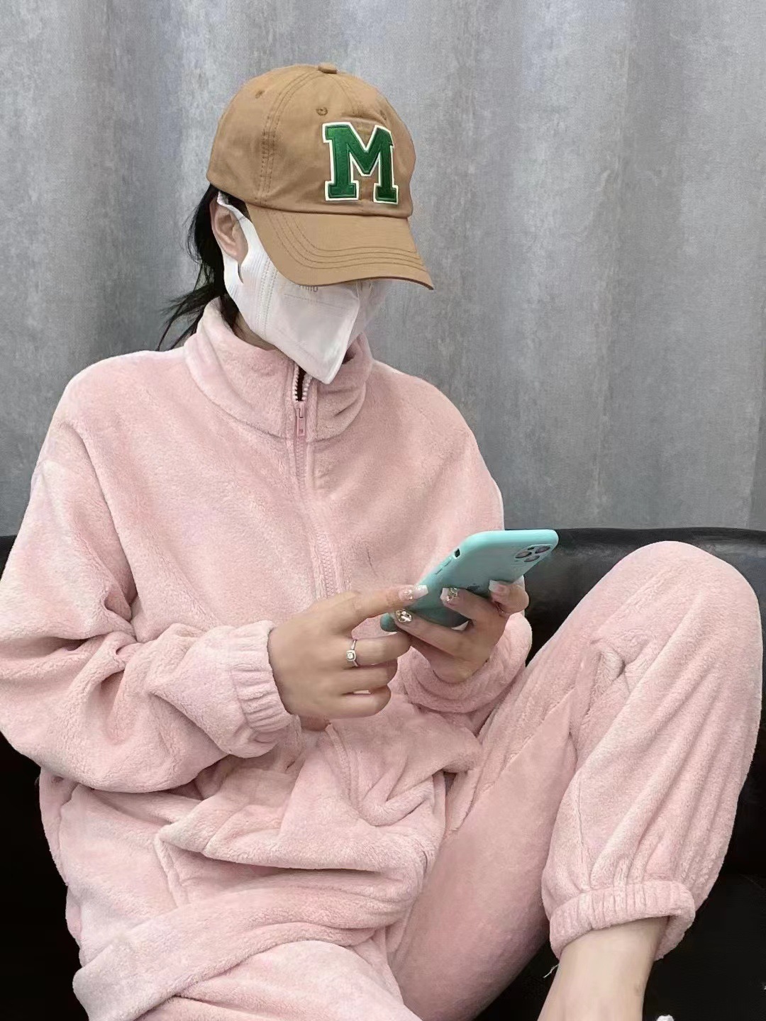 2025년 신상 여성용 가을 겨울 코랄벨벳 기모 두꺼운 따뜻한 홈웨어 외출복 한국 스타일 캐주얼 세트