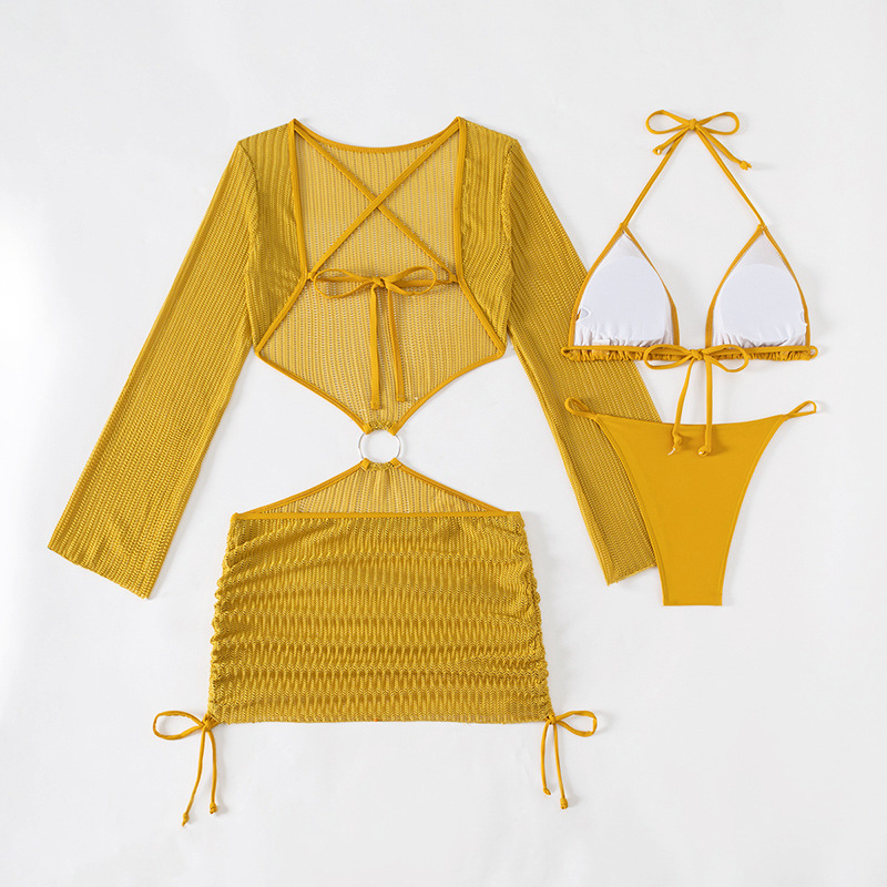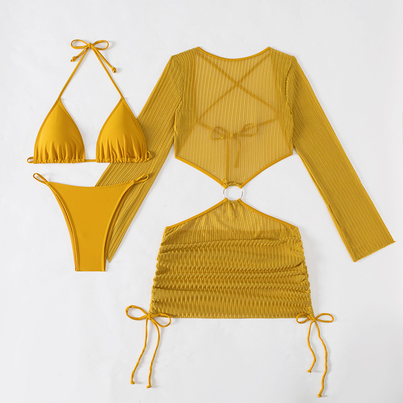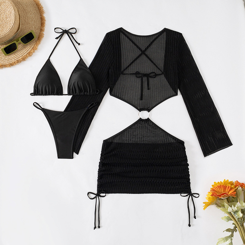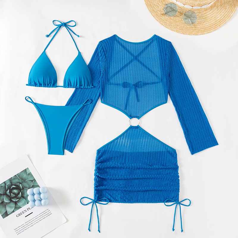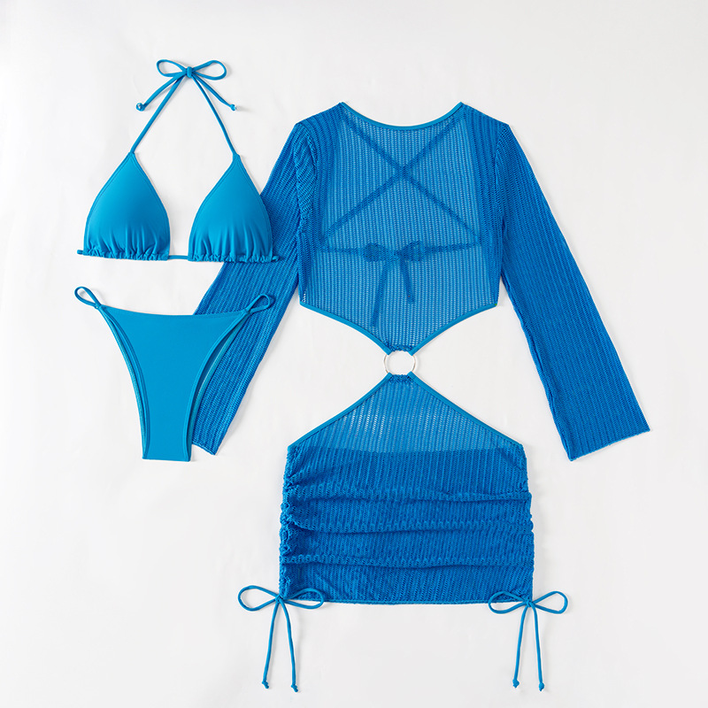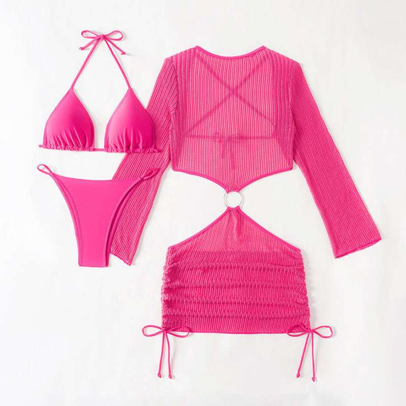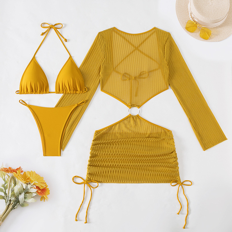 2024 새로운 솔리드 컬러 3 피스 비키니 수영복 크로스 보더 수영복 테무 AliExpress 스플릿 비키니스토어 가기