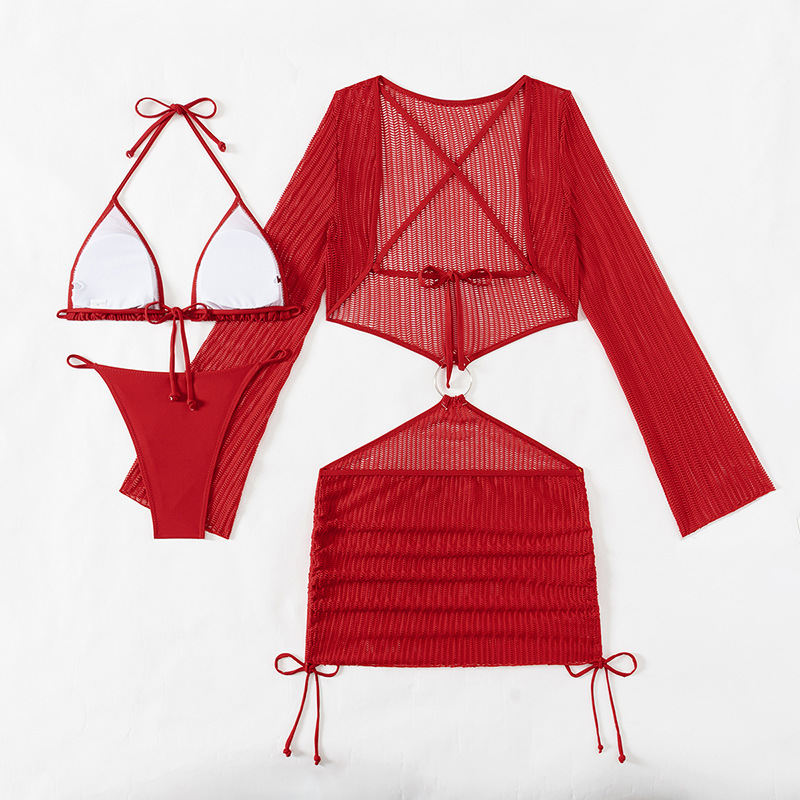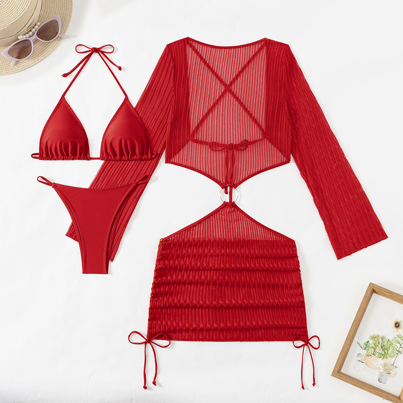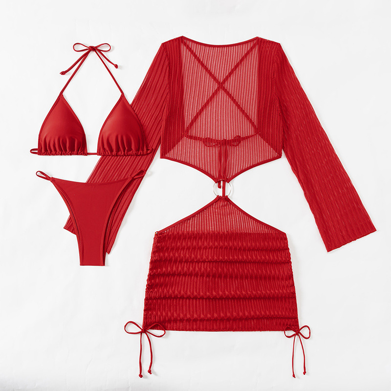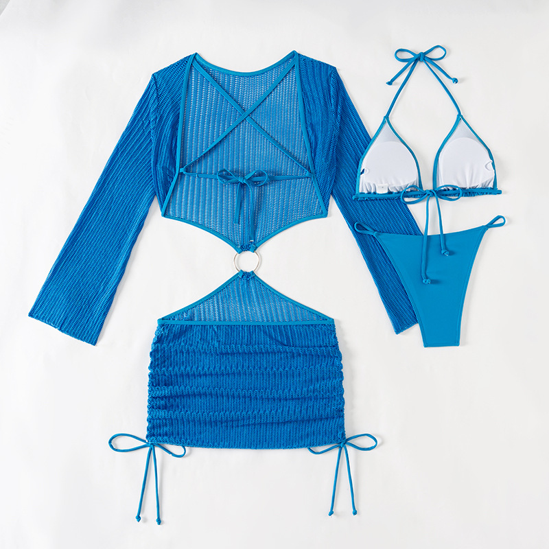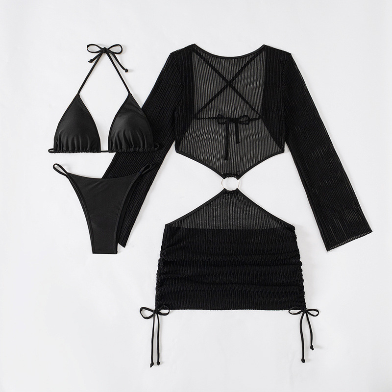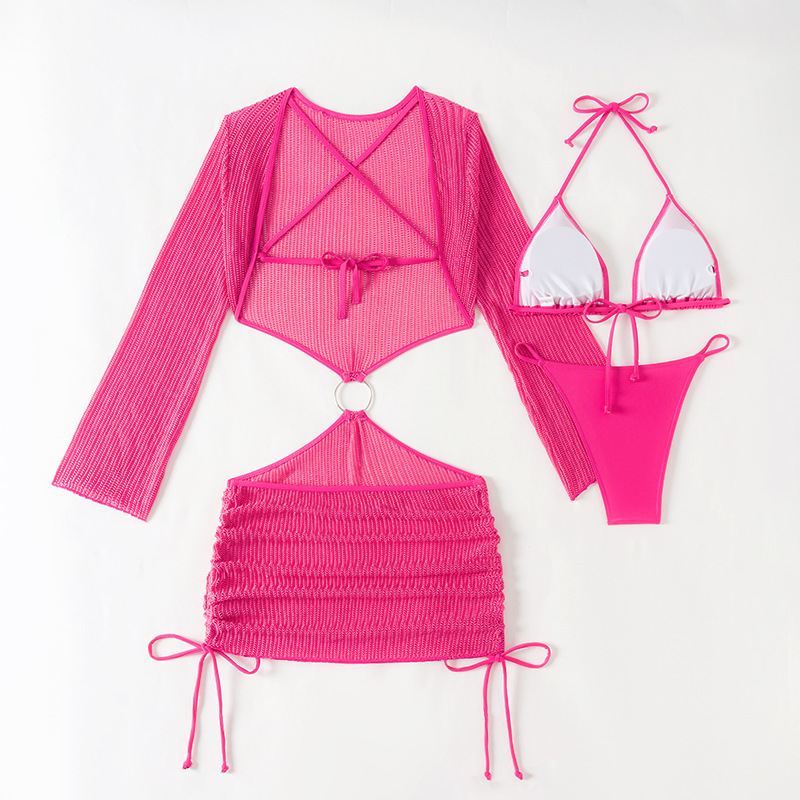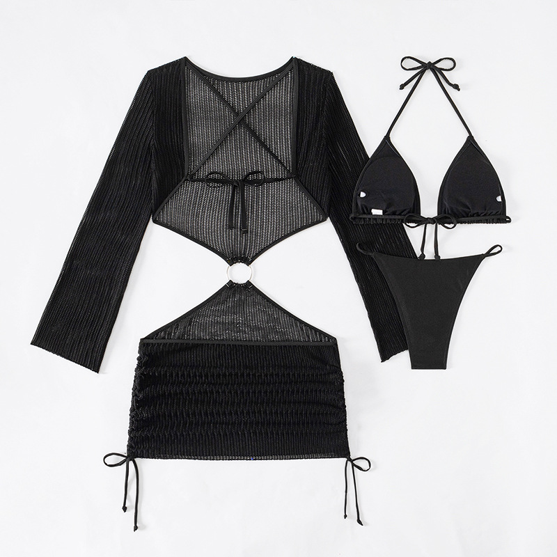 2024 새로운 솔리드 컬러 3 피스 비키니 수영복 크로스 보더 수영복 테무 AliExpress 스플릿 비키니스토어 가기