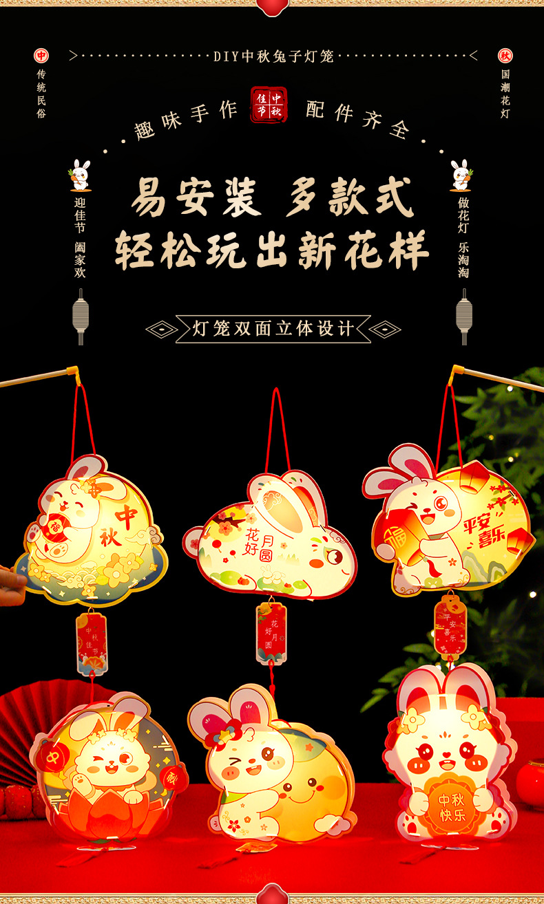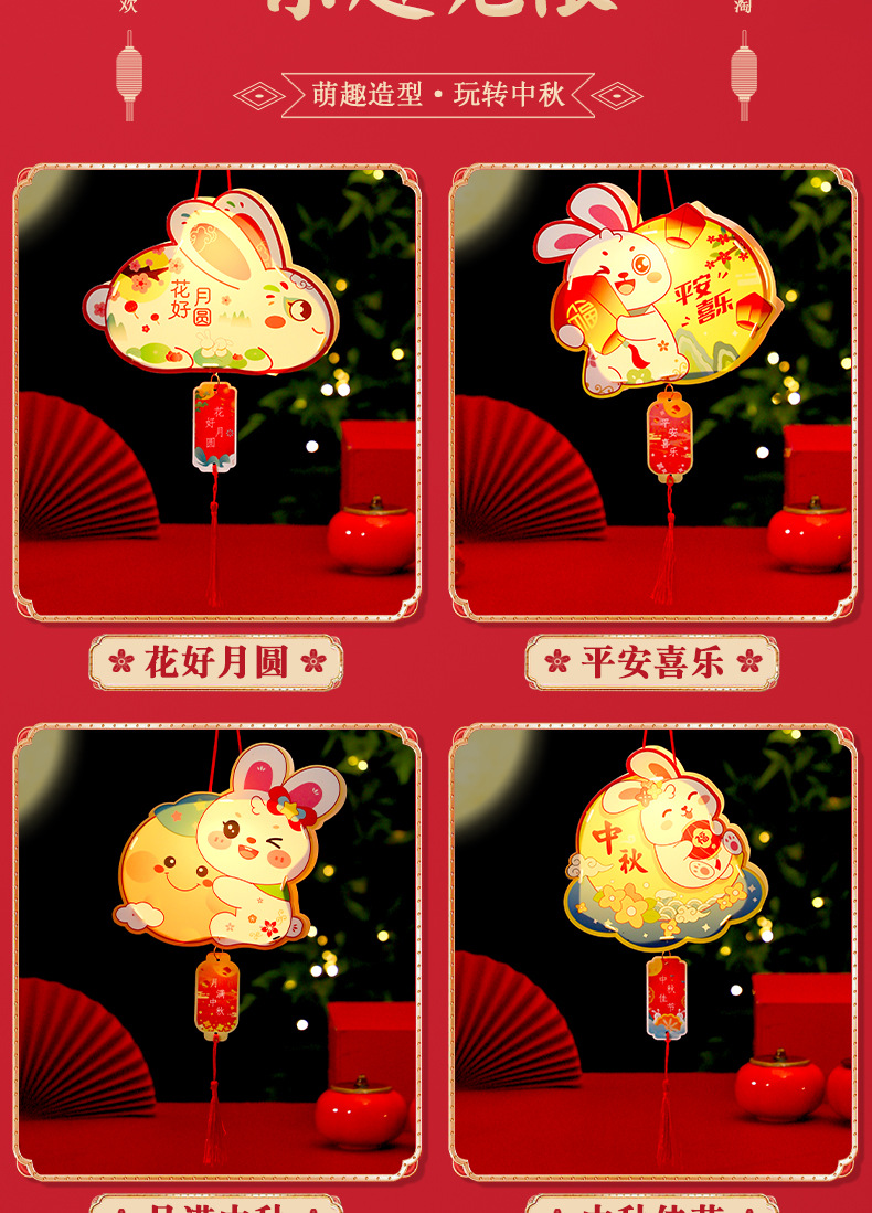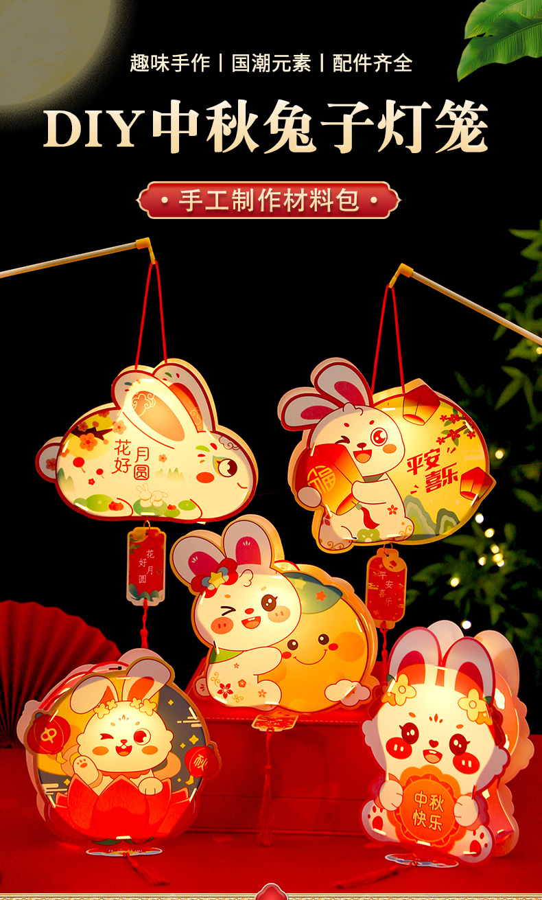 중추절 랜턴 어린이 휴대용 빛나는 랜턴 diy 재료 패키지 부모-자식 수제 토끼 랜턴 스톨 도매