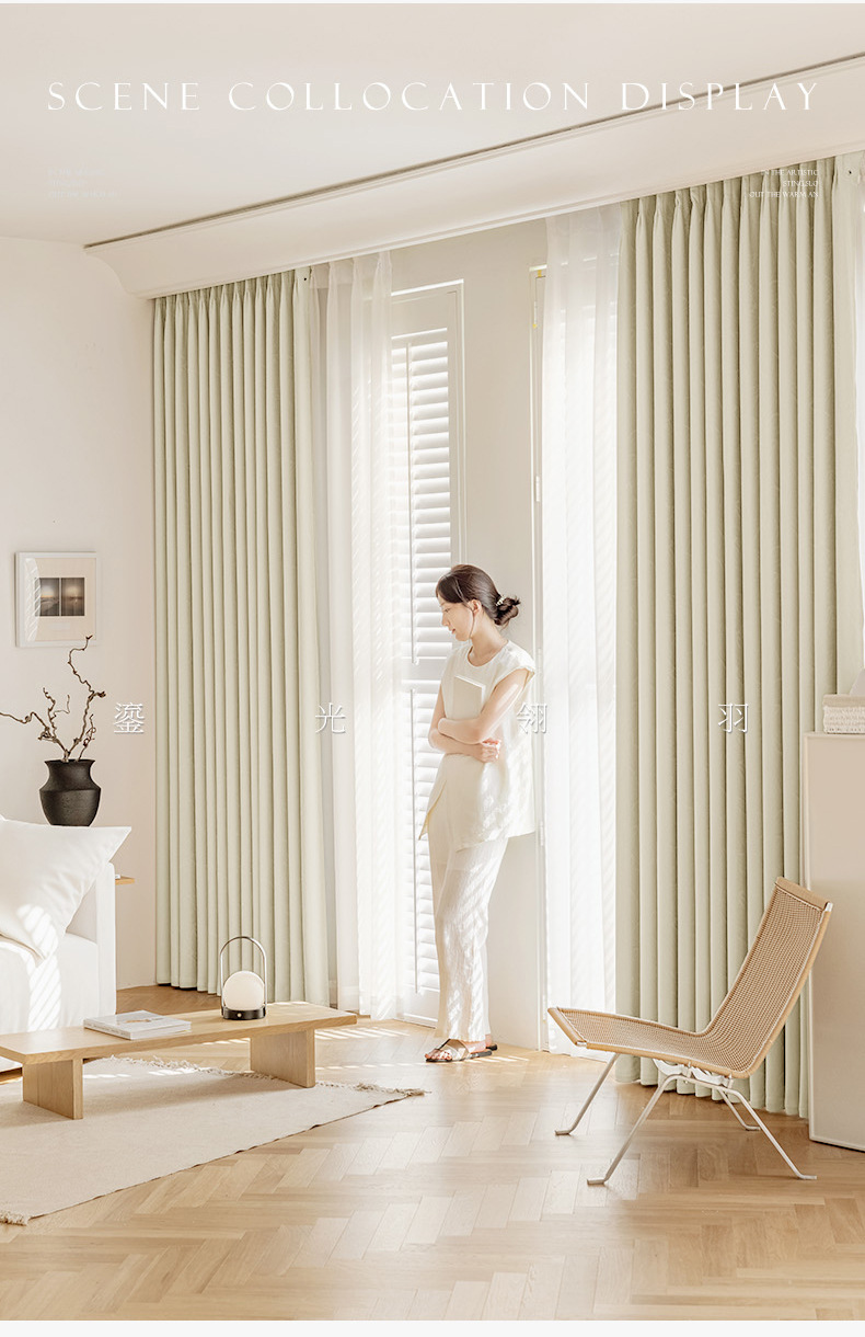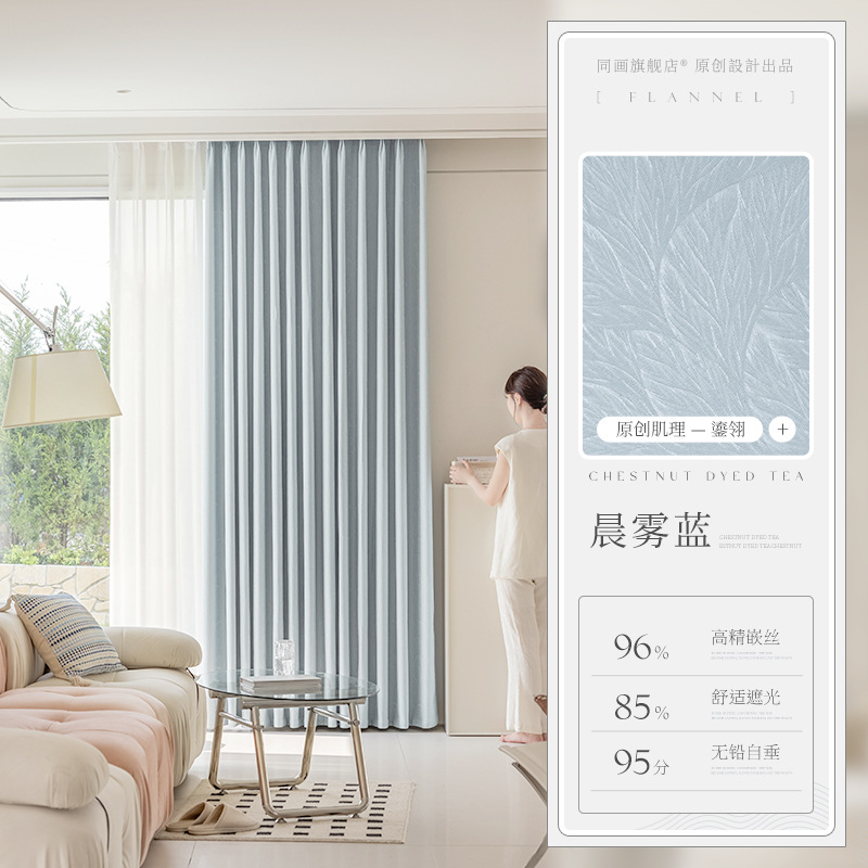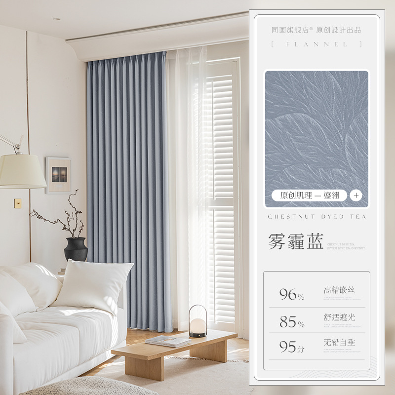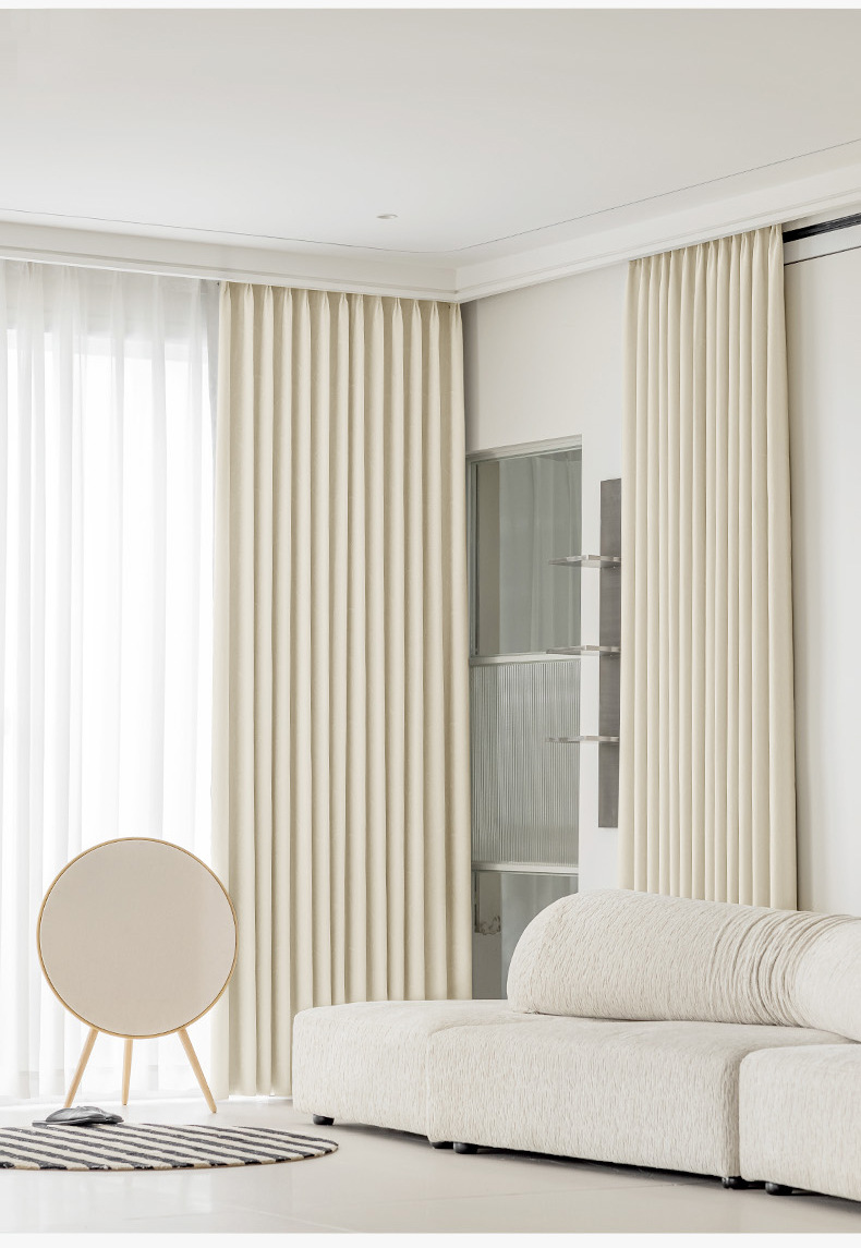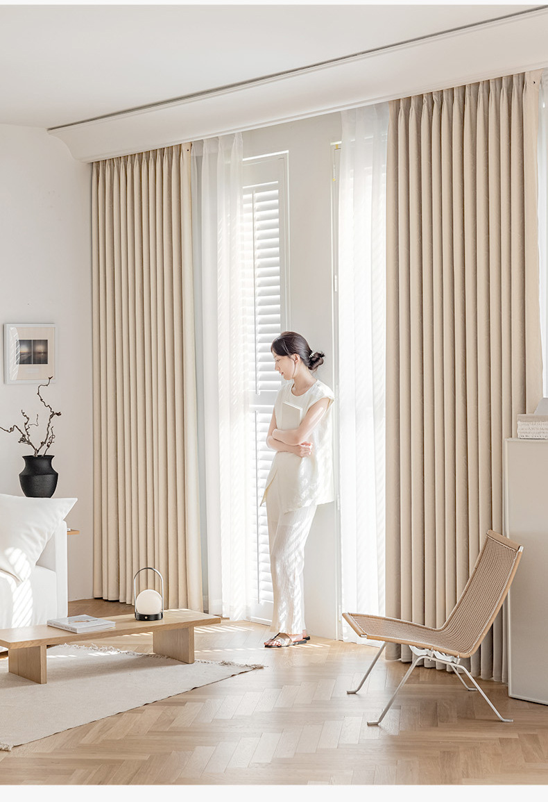 프랑스 라이트 베이지 커튼 라이트 럭셔리 현대 간단한 하이 엔드 쉐이딩 2024 새로운 스타일 복고풍 커튼 침실 및 거실