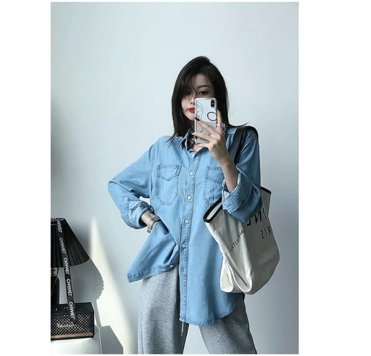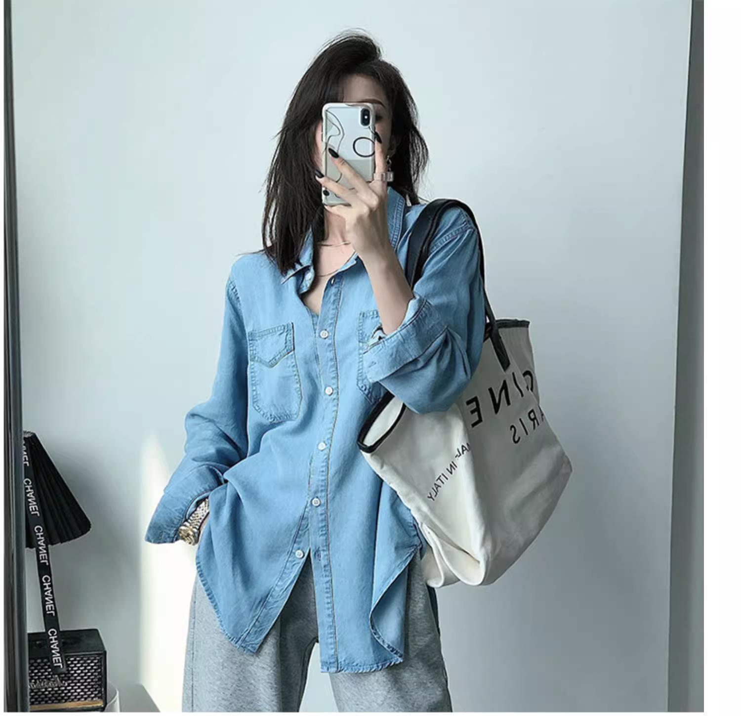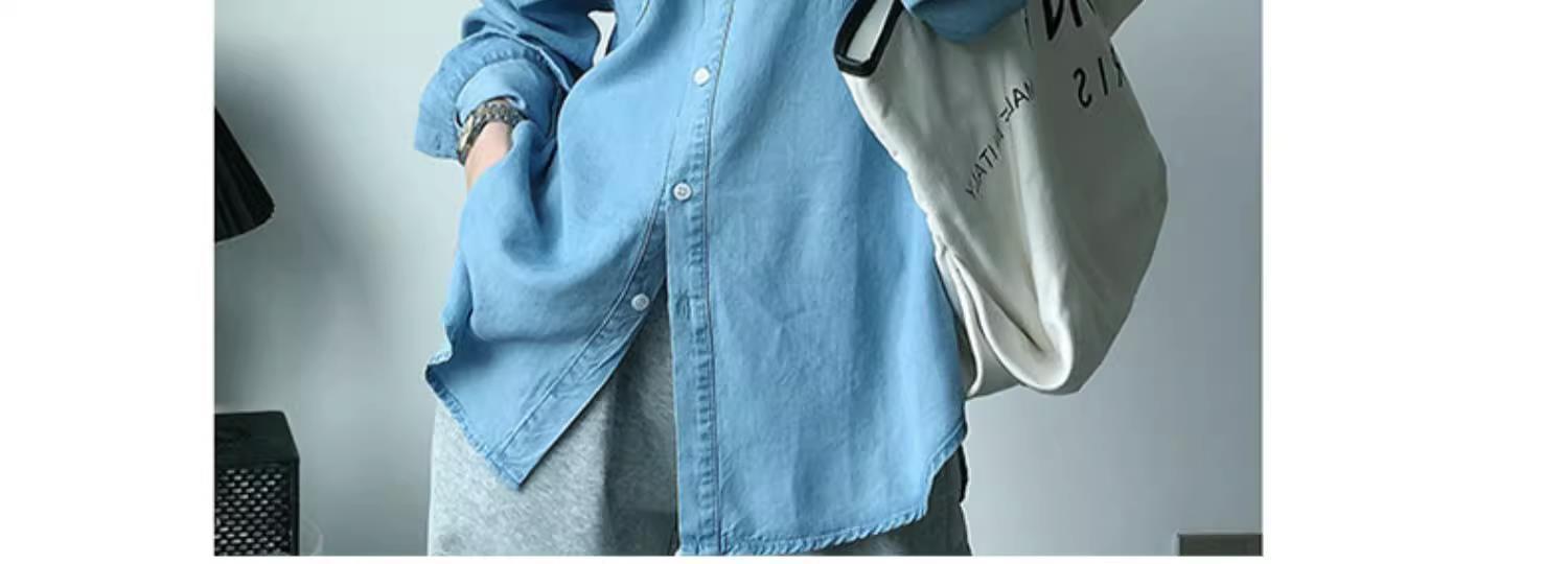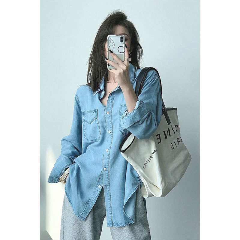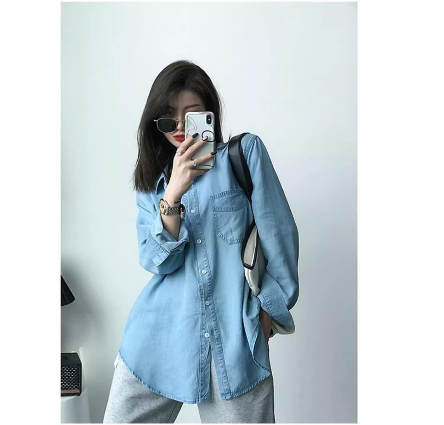 작은 신선한 패션 텐셀 데님 셔츠 여성 긴팔 2025 봄, 가을 새로운 복고풍 재킷 캐주얼 셔츠 여성스토어 가기