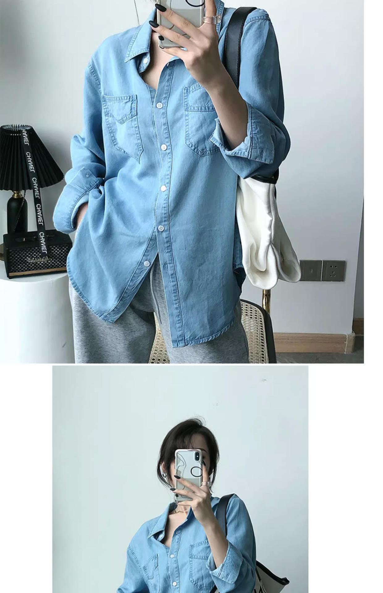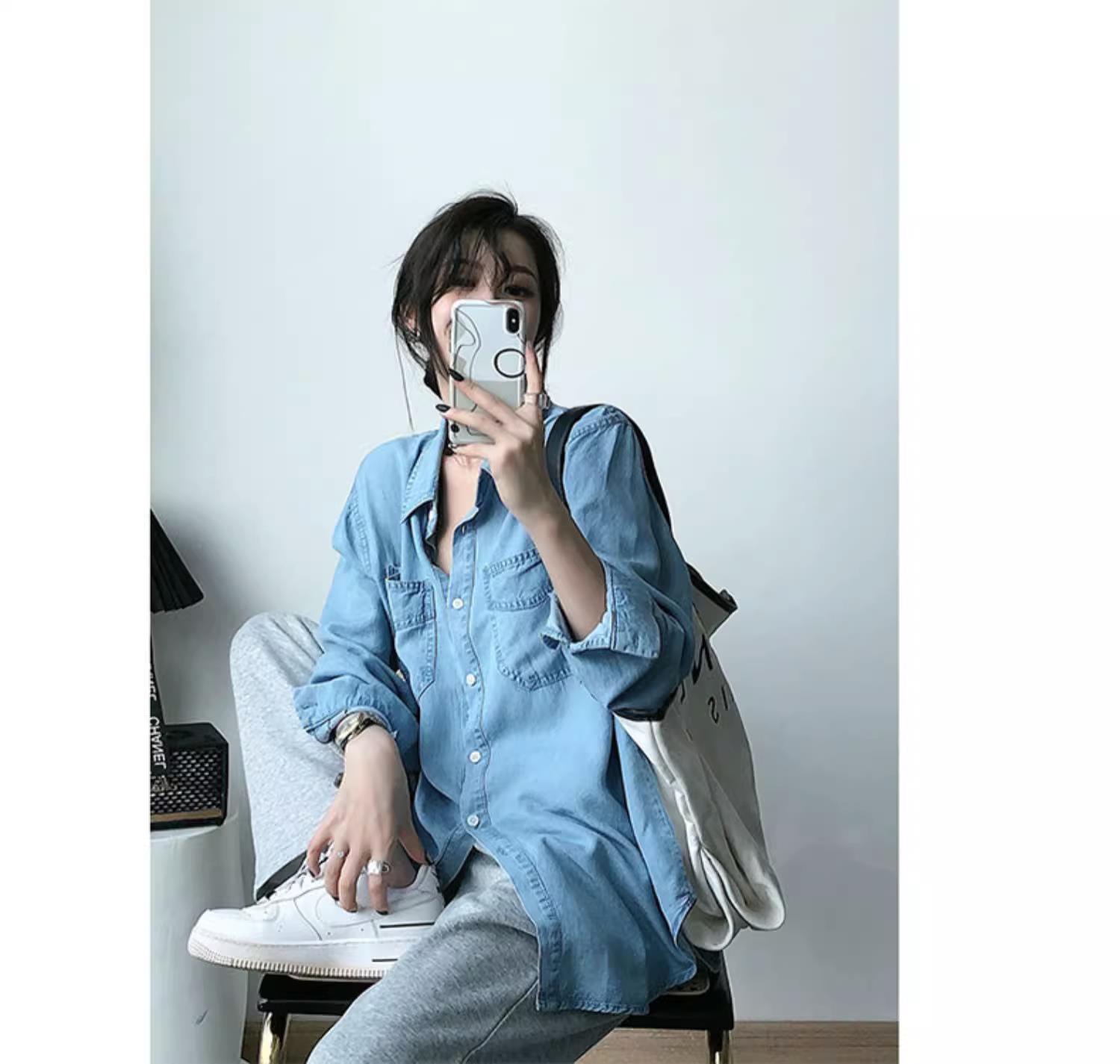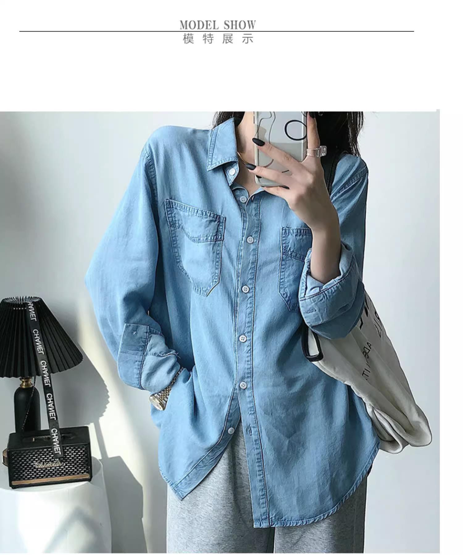 작은 신선한 패션 텐셀 데님 셔츠 여성 긴팔 2025 봄, 가을 새로운 복고풍 재킷 캐주얼 셔츠 여성스토어 가기