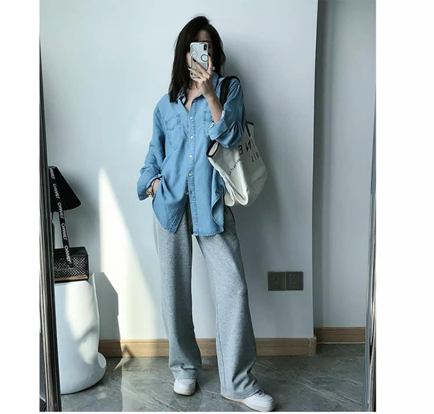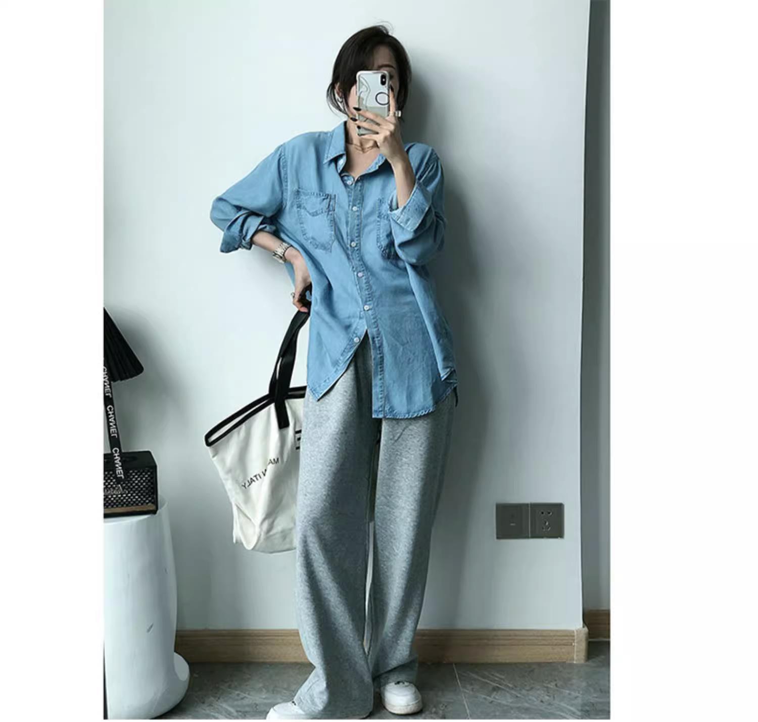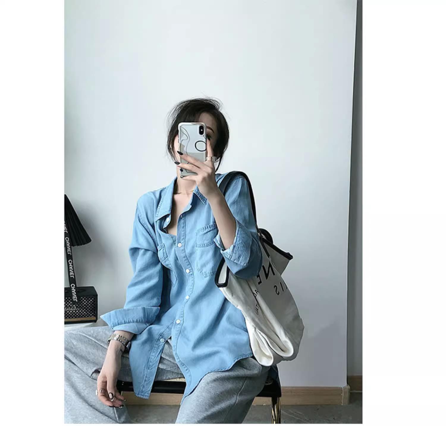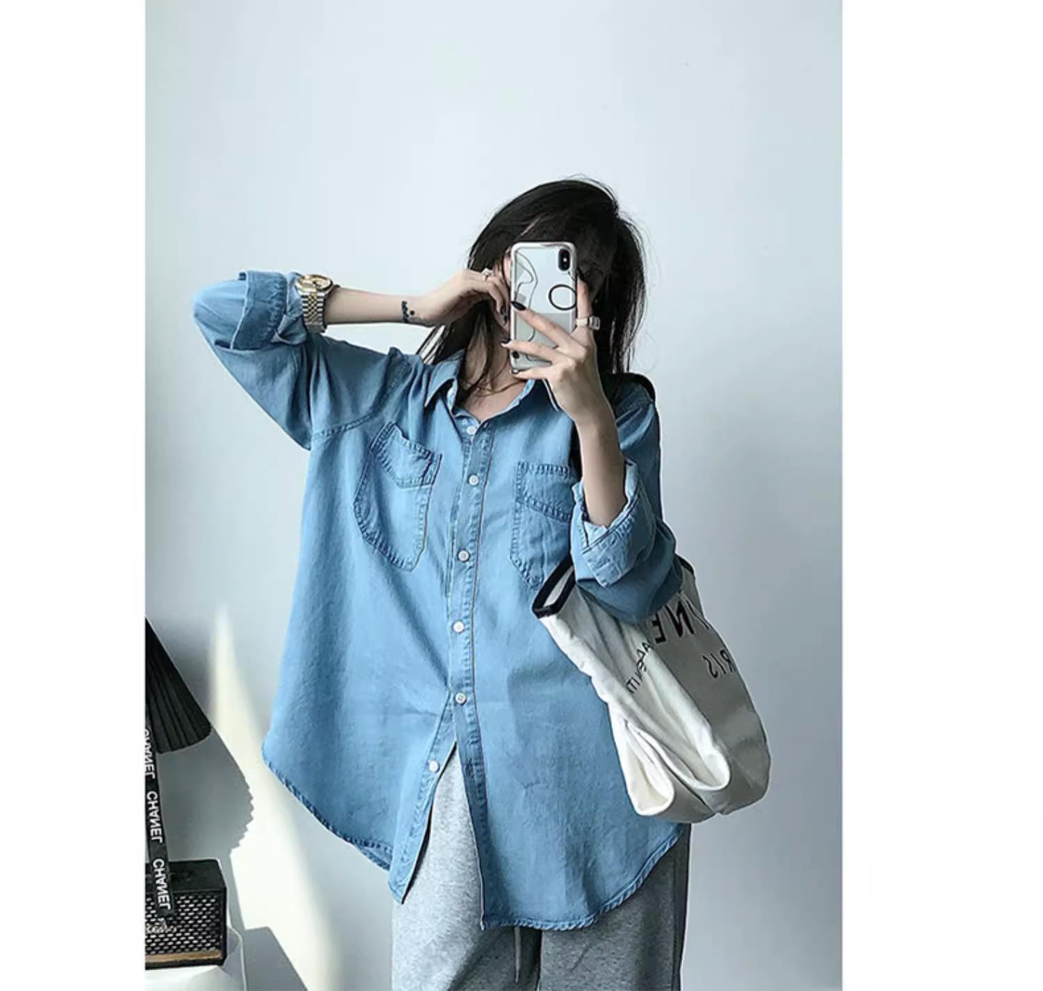 작은 신선한 패션 텐셀 데님 셔츠 여성 긴팔 2025 봄, 가을 새로운 복고풍 재킷 캐주얼 셔츠 여성스토어 가기