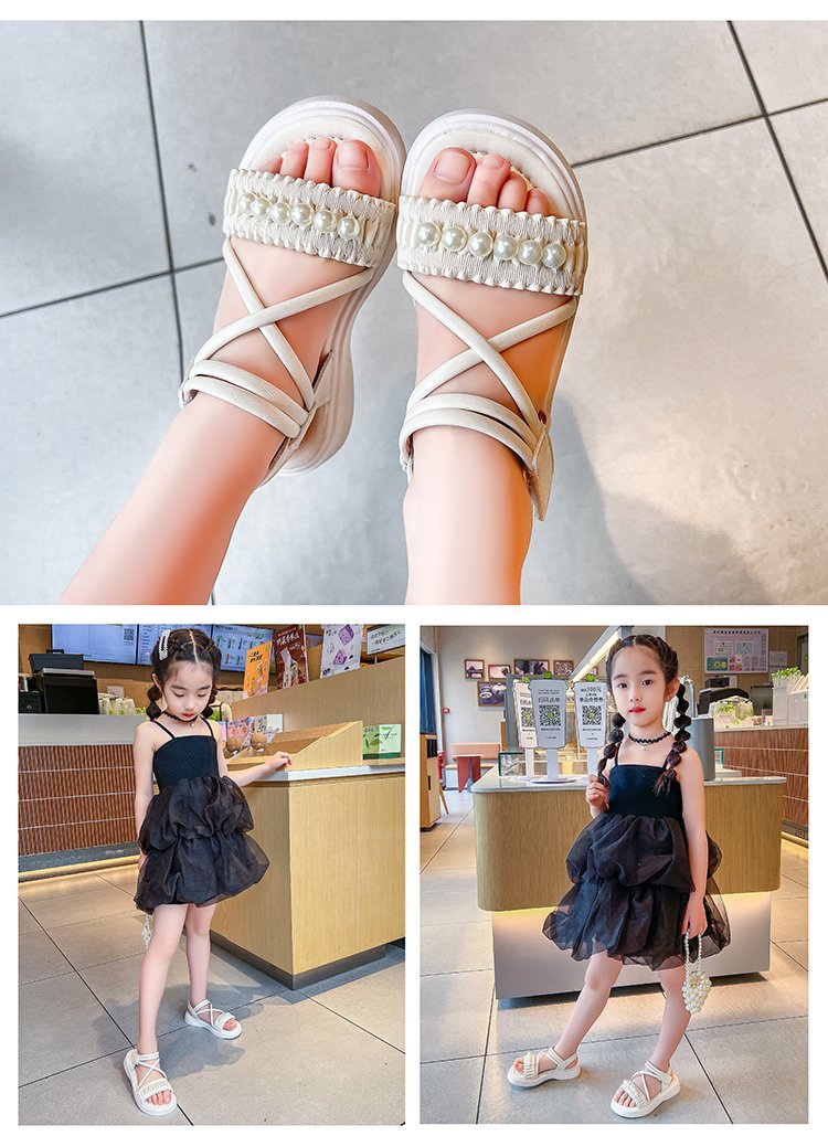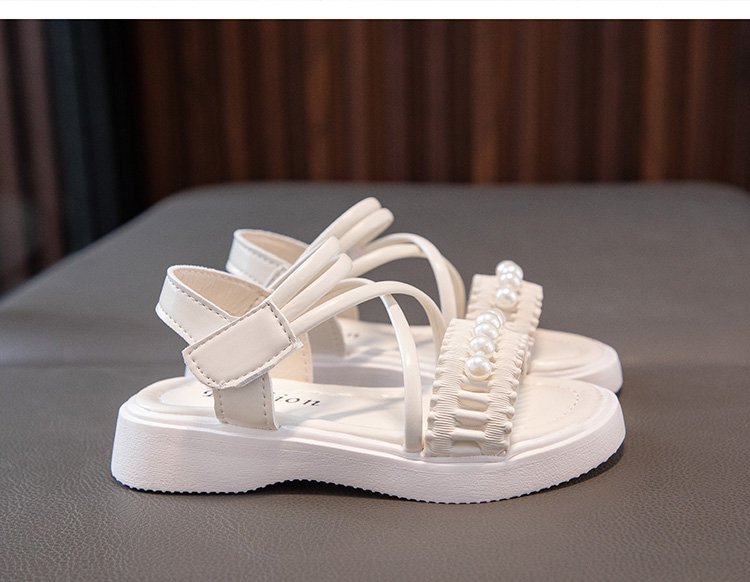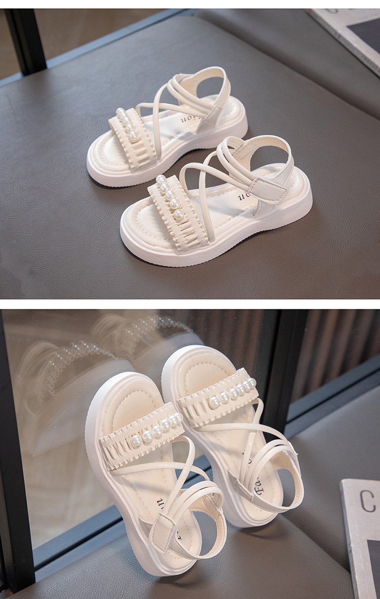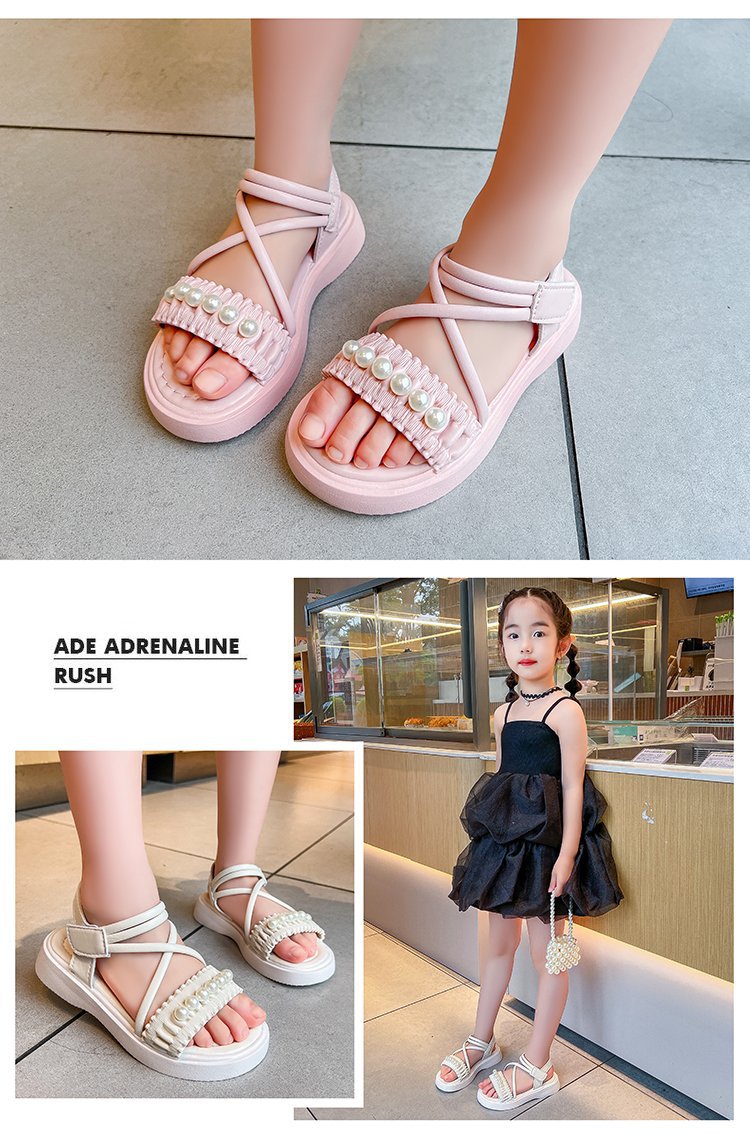 소녀 샌들 2023 여름 새로운 도착 어린 소녀 패션 미드 빅 어린이 비치 슈즈 어린이 샌들 펄 프린세스 슈즈스토어 가기