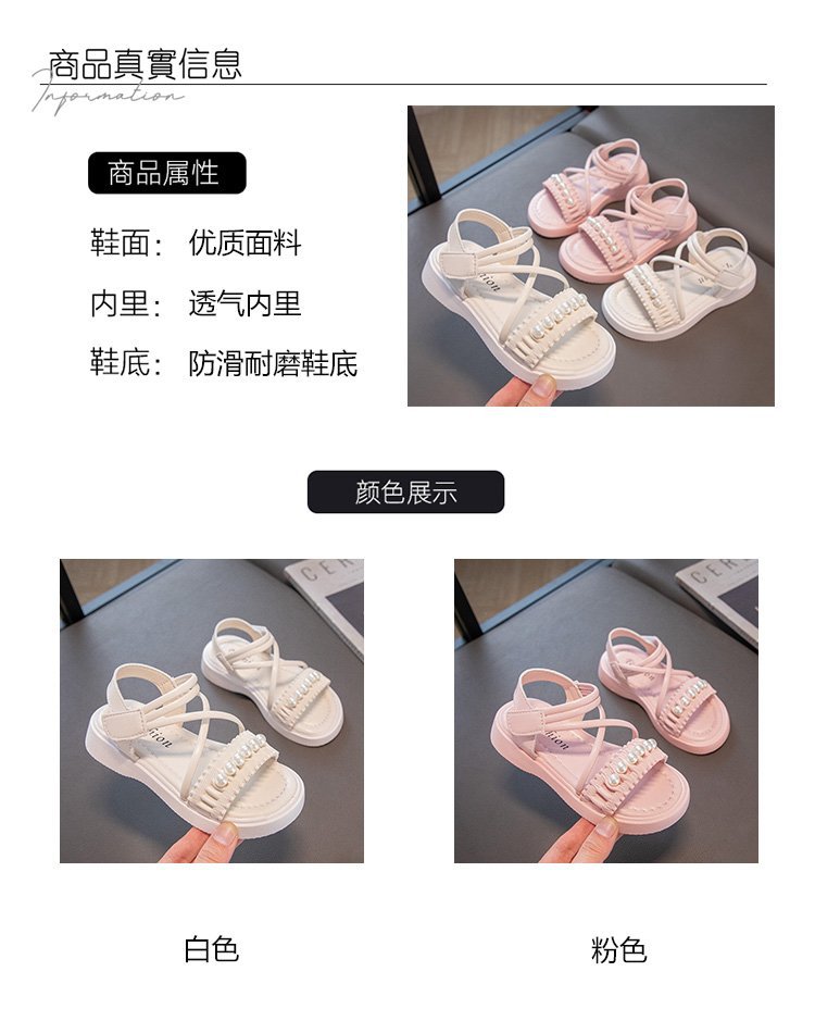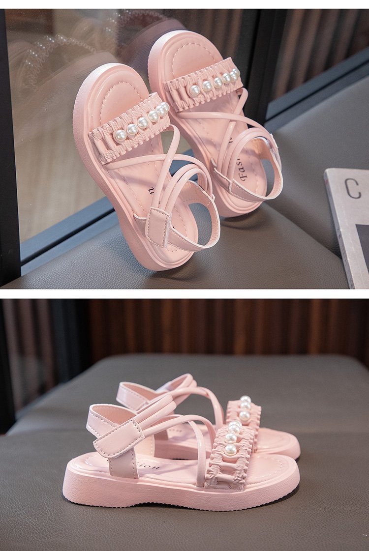 소녀 샌들 2023 여름 새로운 도착 어린 소녀 패션 미드 빅 어린이 비치 슈즈 어린이 샌들 펄 프린세스 슈즈