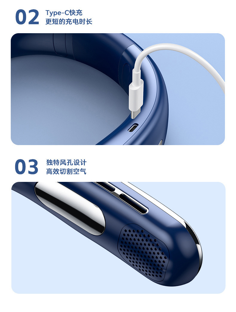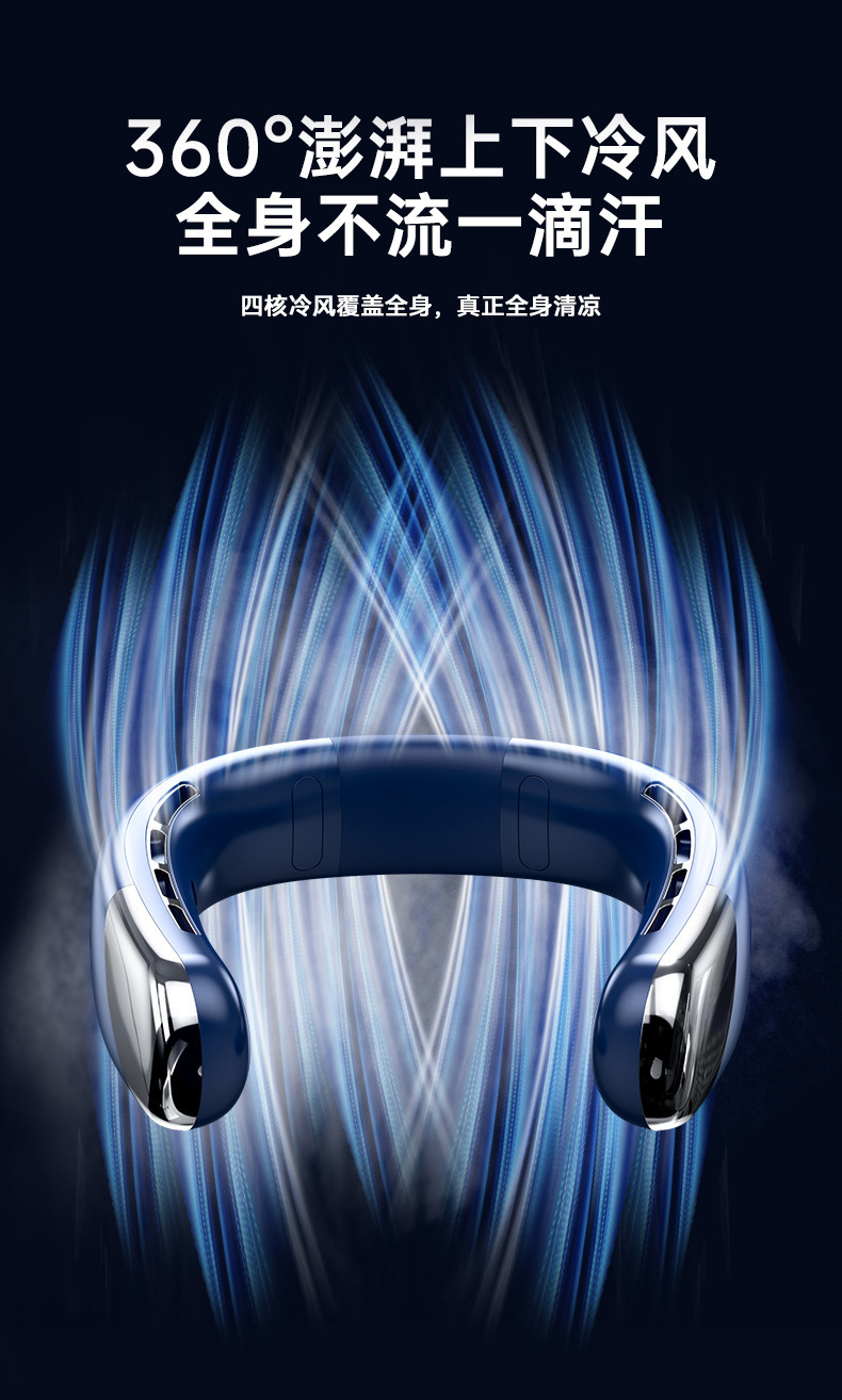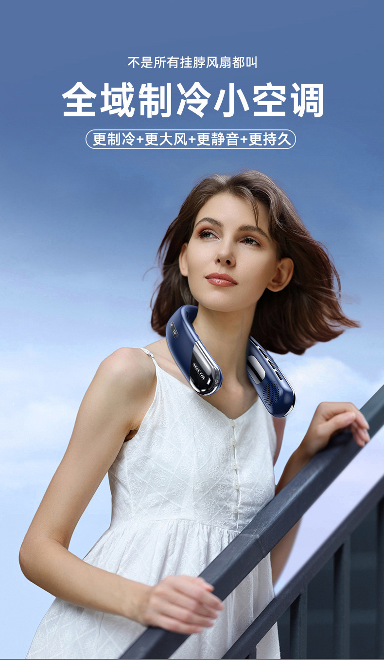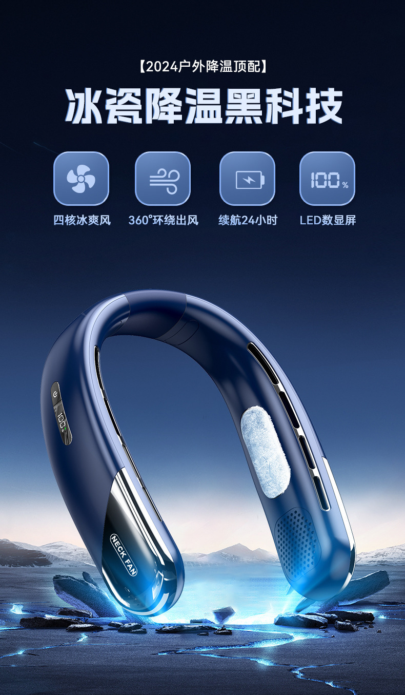 2024 국경 새로운 리드없는 목 팬 usb 미니 휴대용 충전 디지털 디스플레이 야외 냉각 작은 팬스토어 가기