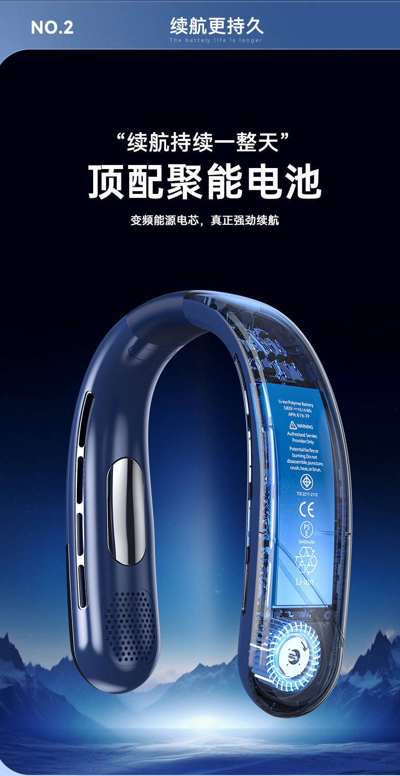 2024 국경 새로운 리드없는 목 팬 usb 미니 휴대용 충전 디지털 디스플레이 야외 냉각 작은 팬