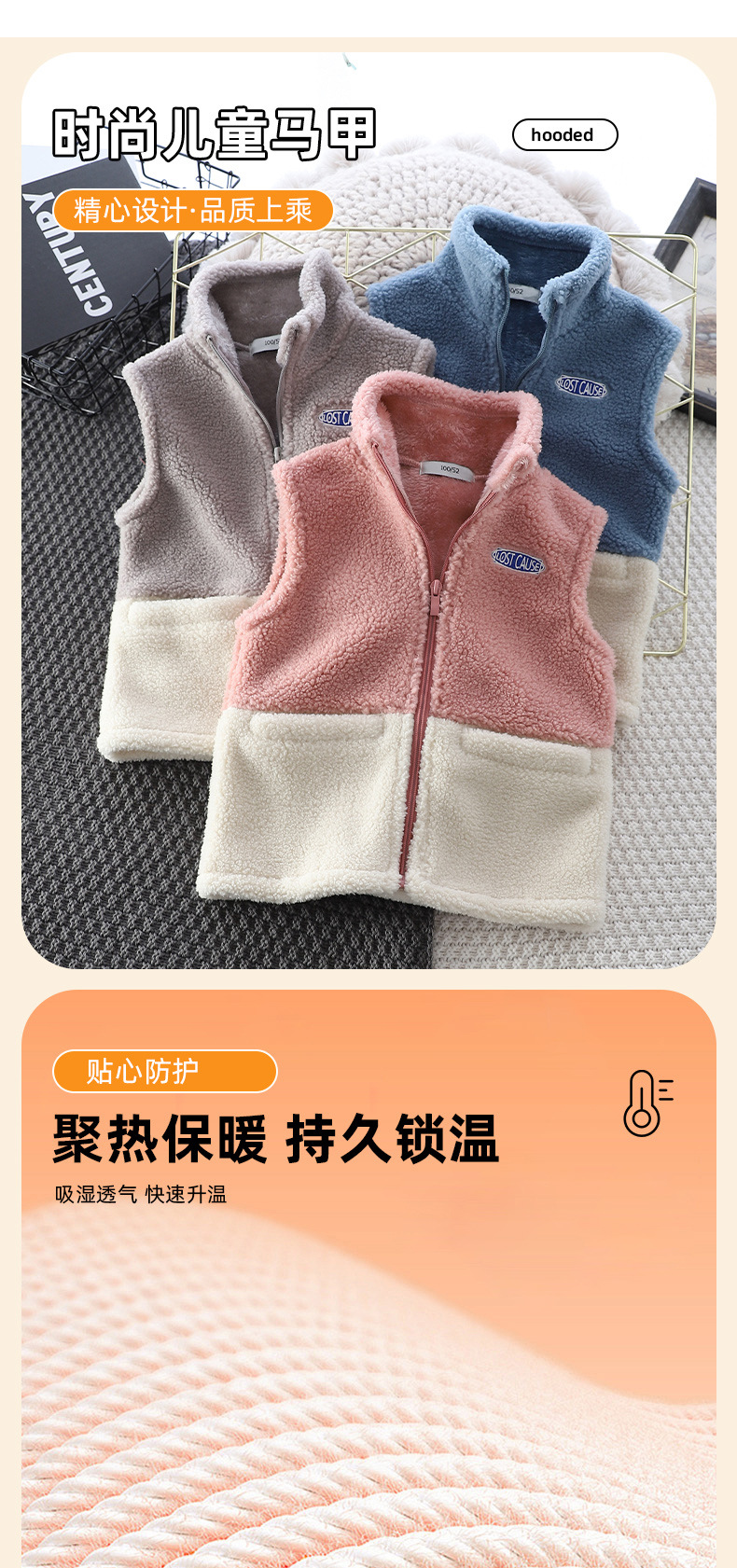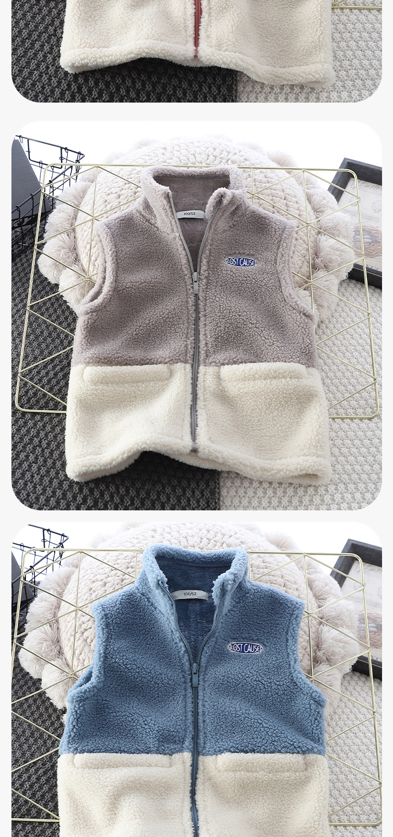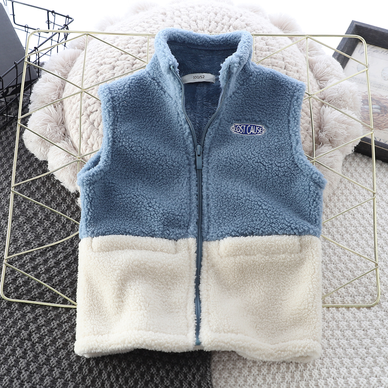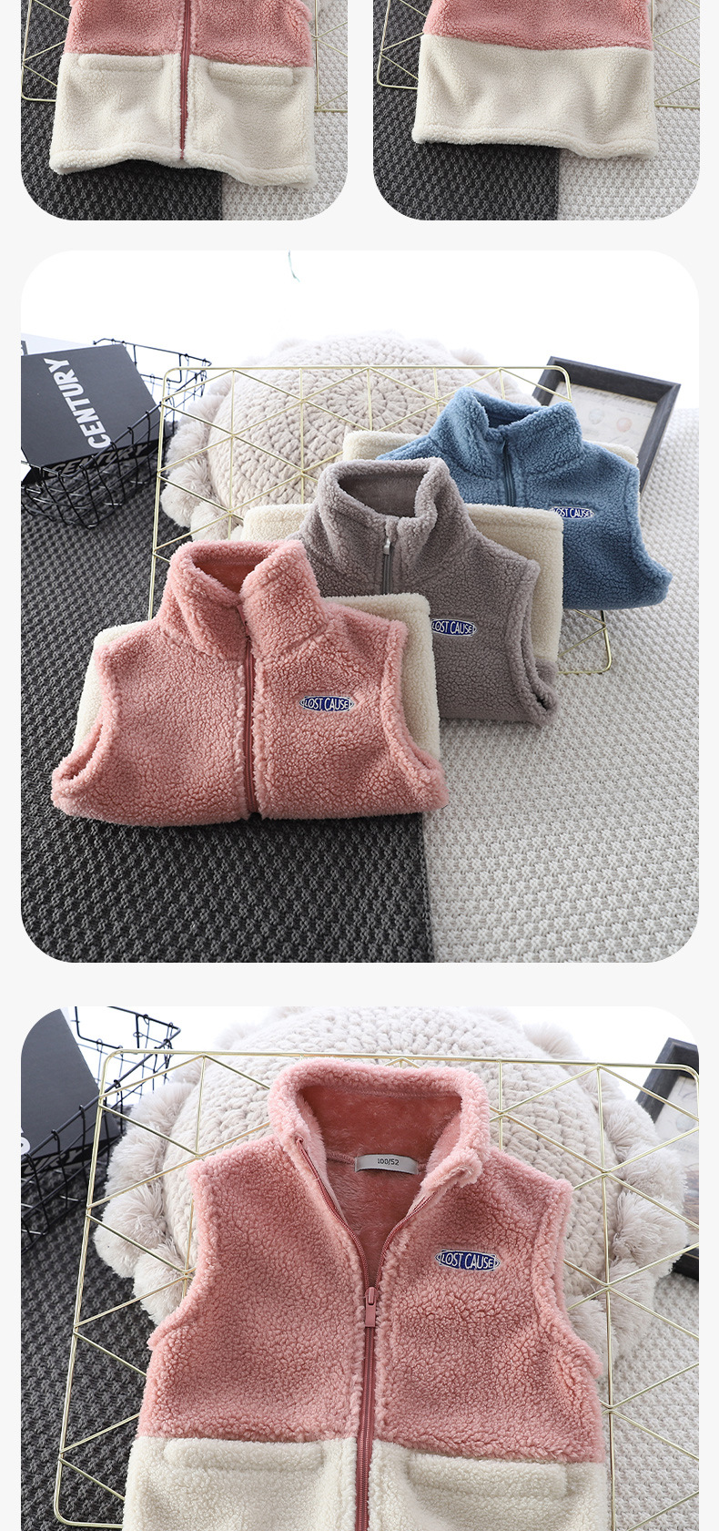 Zeta Tik 가을과 겨울 소년과 소녀 컬러 블록 양고기 따뜻한 조끼 어린이 3 색 더블 레이어 두꺼운 조끼스토어 가기