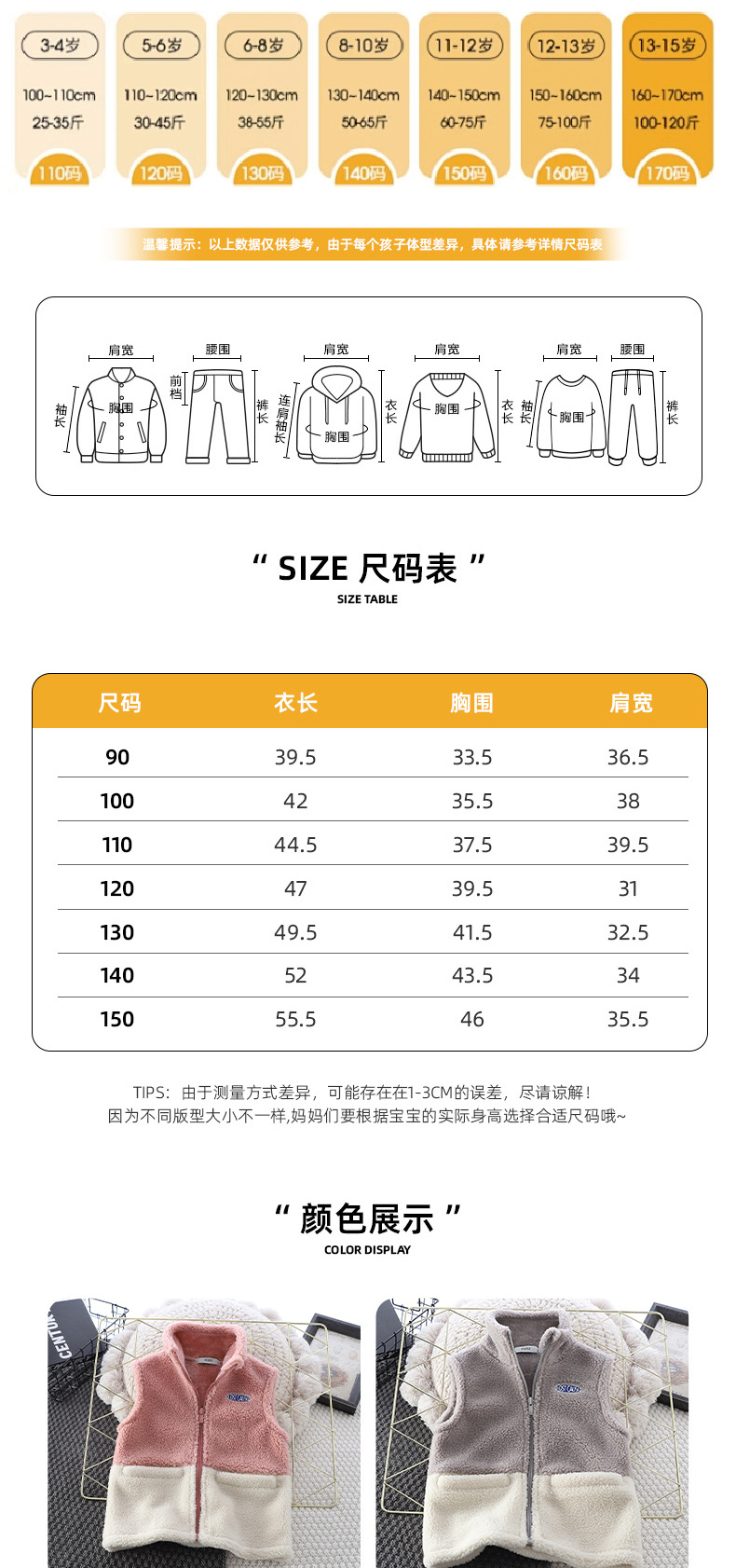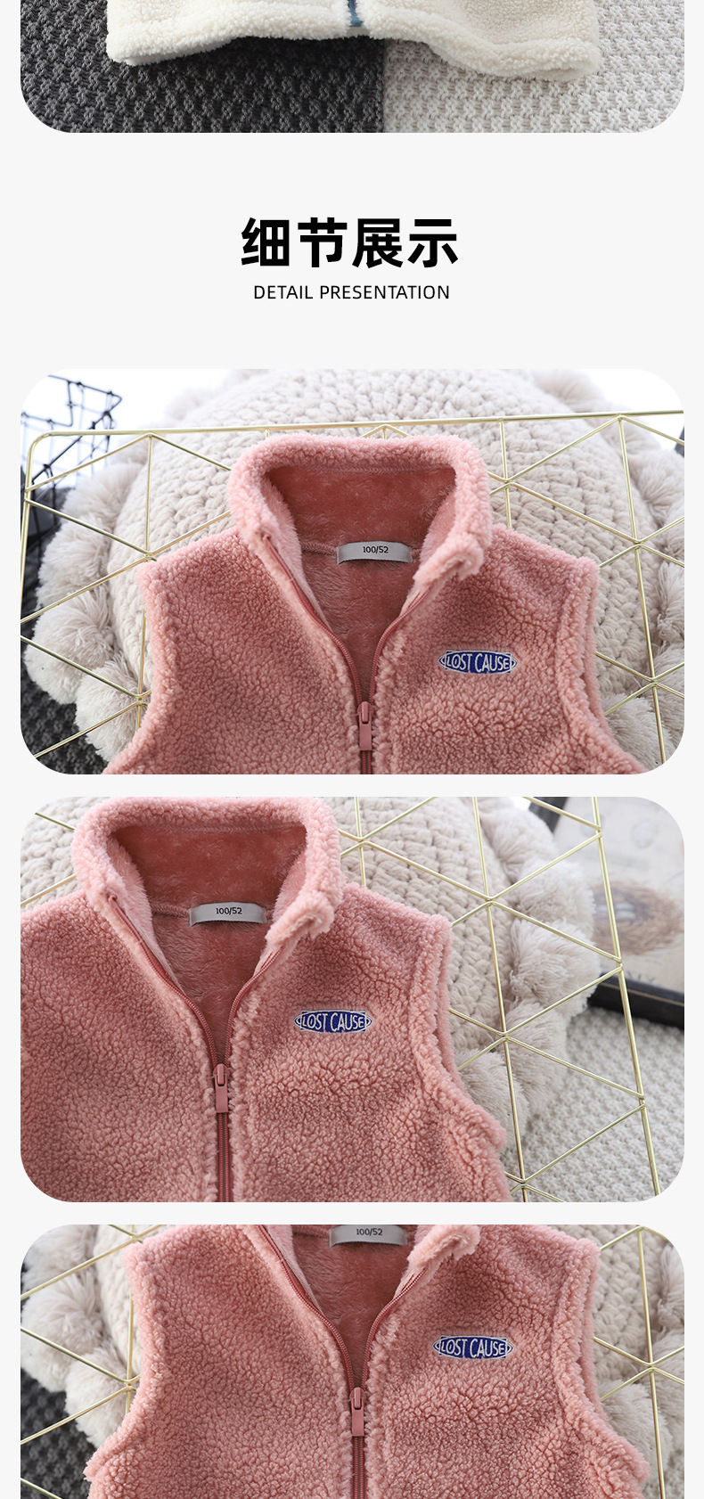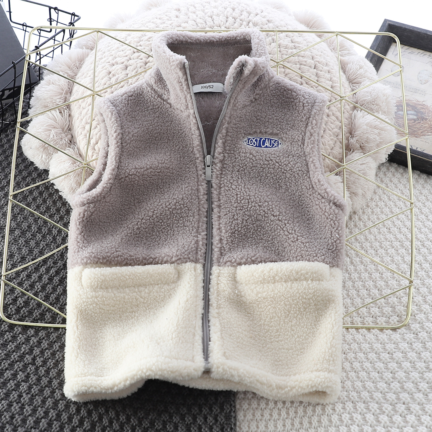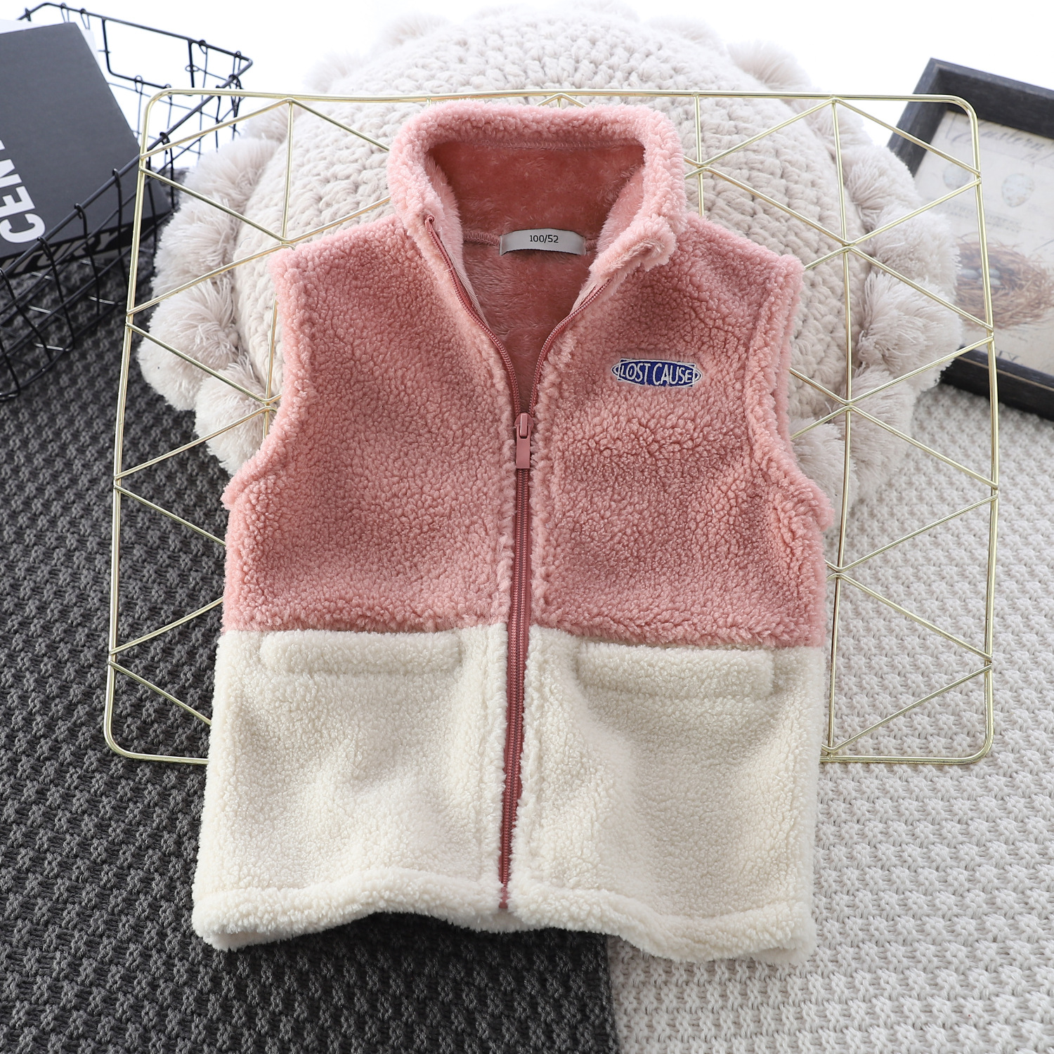 Zeta Tik 가을과 겨울 소년과 소녀 컬러 블록 양고기 따뜻한 조끼 어린이 3 색 더블 레이어 두꺼운 조끼스토어 가기
