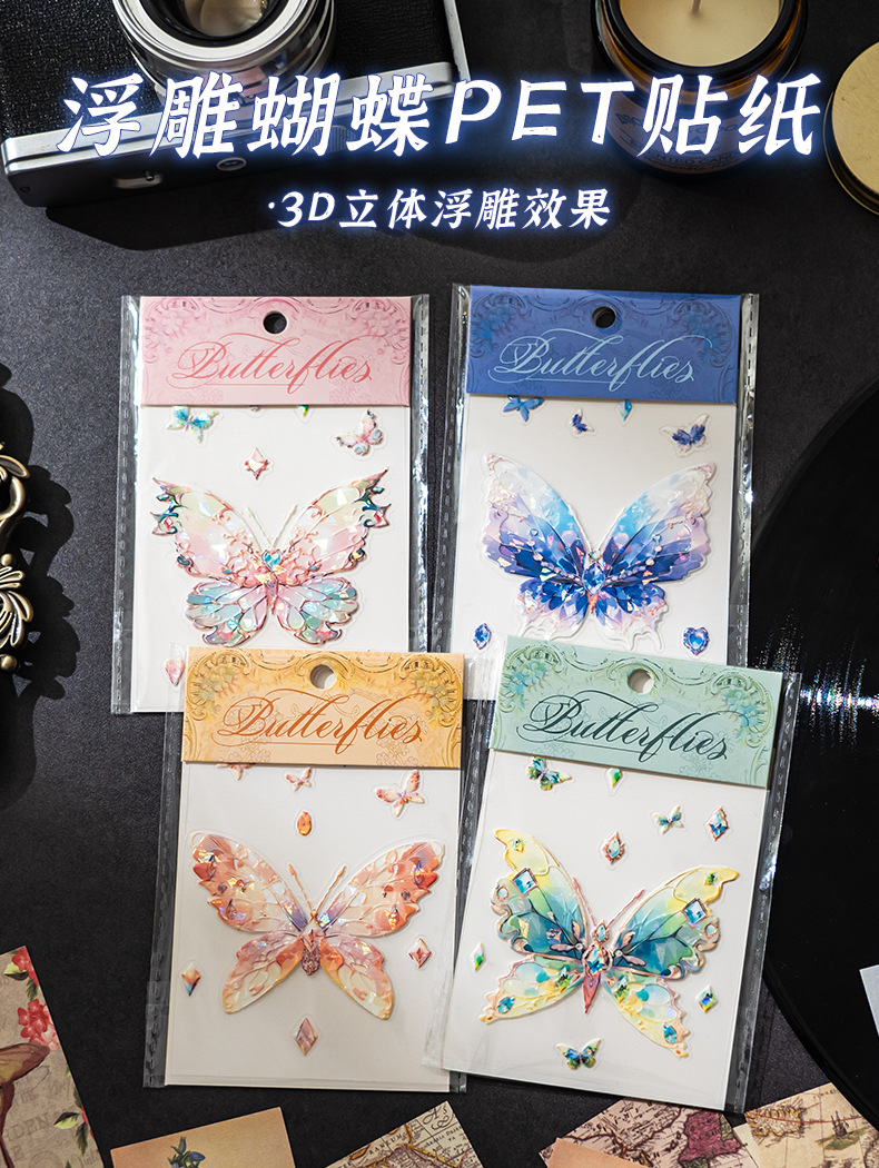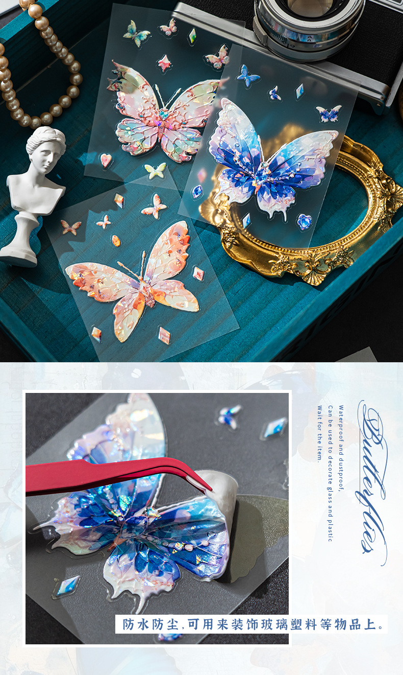 구호 나비 애완 동물 스티커 3d 입체 창조적 인 소재 손 계정 동물 diy 장식 소녀 심장 손 계정 스티커스토어 가기