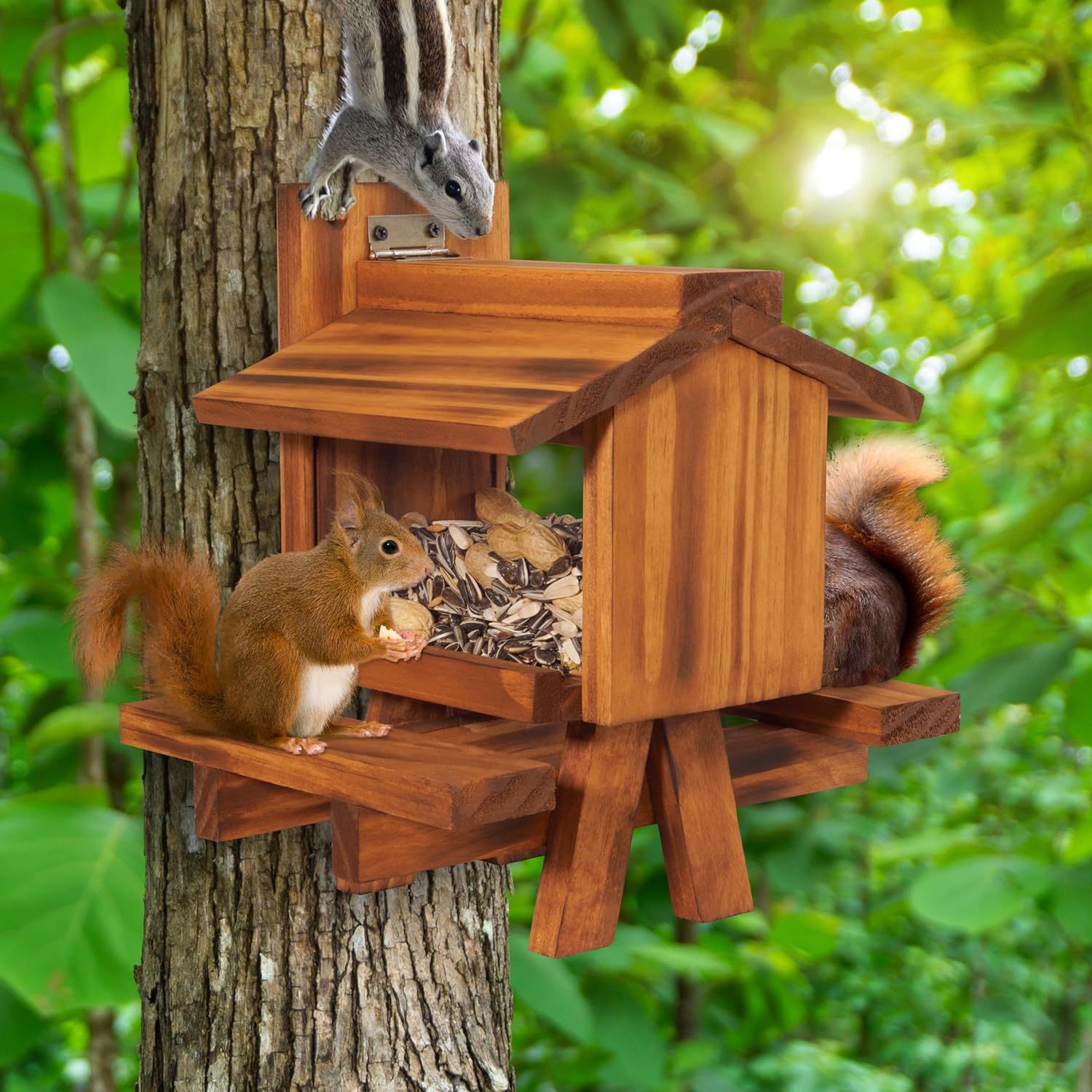 나무 다람쥐 피더 나무 다람쥐 피크닉 테이블 나무 야외 정원 동물 피더 펜던트 도매스토어 가기