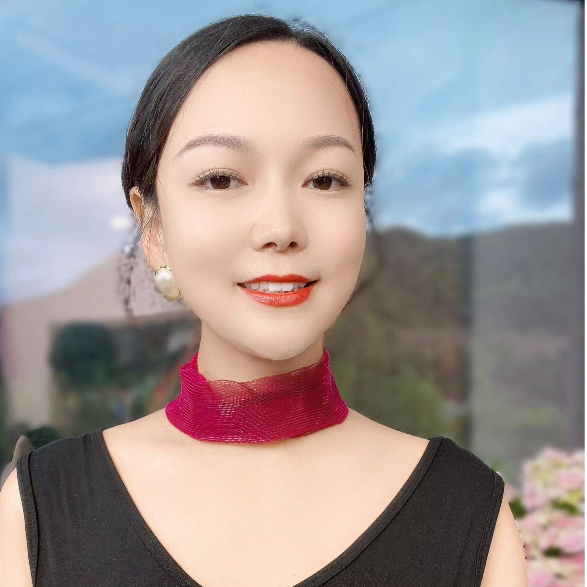 • 로즈 레드-화려한 마그네틱 버튼 실크 스카프