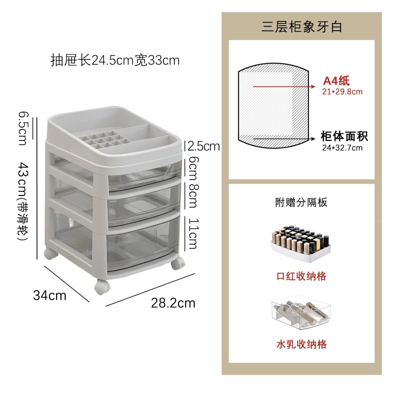 • 흰색 [3단] - 무료 수납 칸막이 상자 + 바퀴