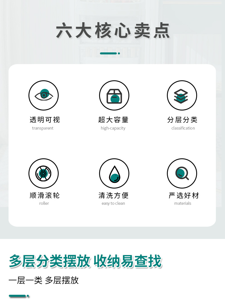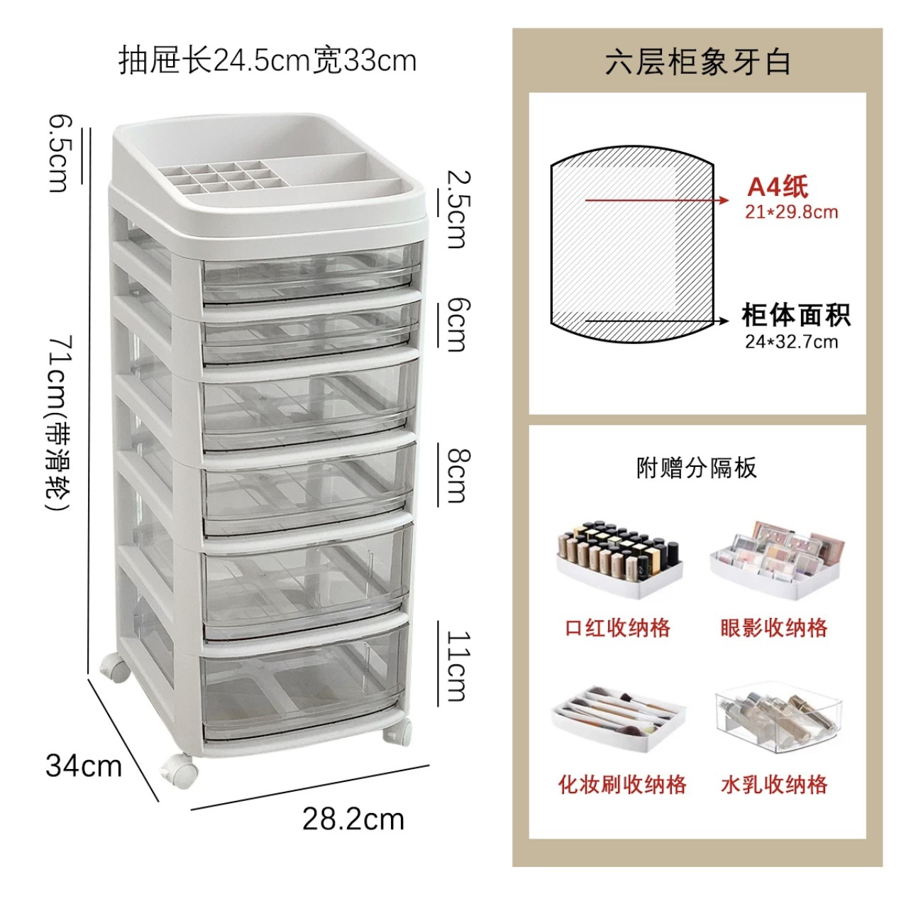 • 흰색 [6겹] - 무료 수납 칸막이 상자 + 바퀴