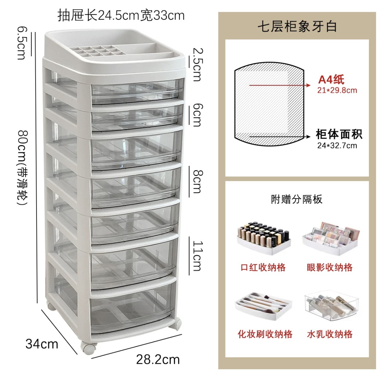 • 흰색 [7단] - 무료 수납 칸막이 상자 + 바퀴