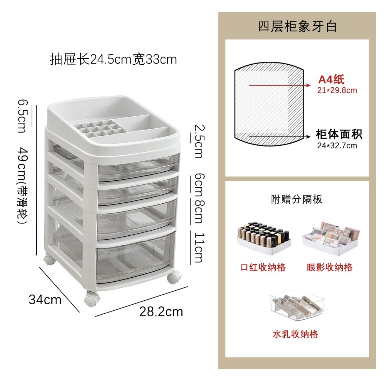 • 흰색 [4겹] - 무료 수납 칸막이 상자 + 바퀴