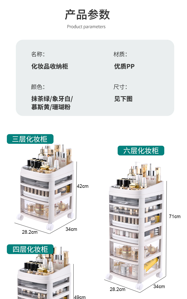 화장품 보관 캐비닛 서랍 유형 아크릴 화장품 상자 마스크 립스틱 보관 캐비닛 이동식 랙 도매스토어 가기
