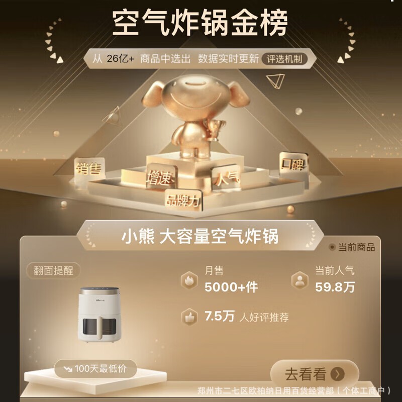 곰 공기 프라이어 QZG-F15E3 가정용 다기능 금연 마이크로 컴퓨터 터치 비주얼 전기 프라이어스토어 가기