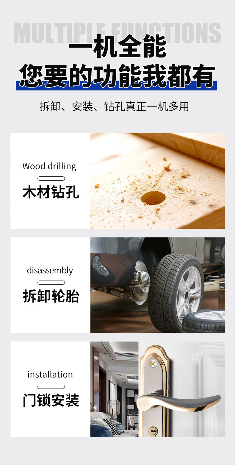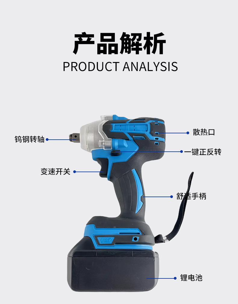 이중 용도의 대외 무역 리튬 배터리 충전식 브러시리스 강력 전기 렌치, 고토션 목공 및 자동차 수리 임팩트 렌치