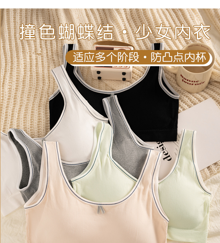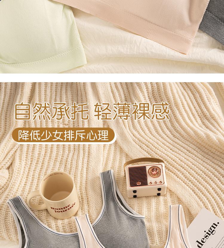 여자 브라 속옷 여자 스포츠 조끼 중학교 고등학교 고등학교 학생 개발 기간 얇은 순수 면화 스틸 링 여름