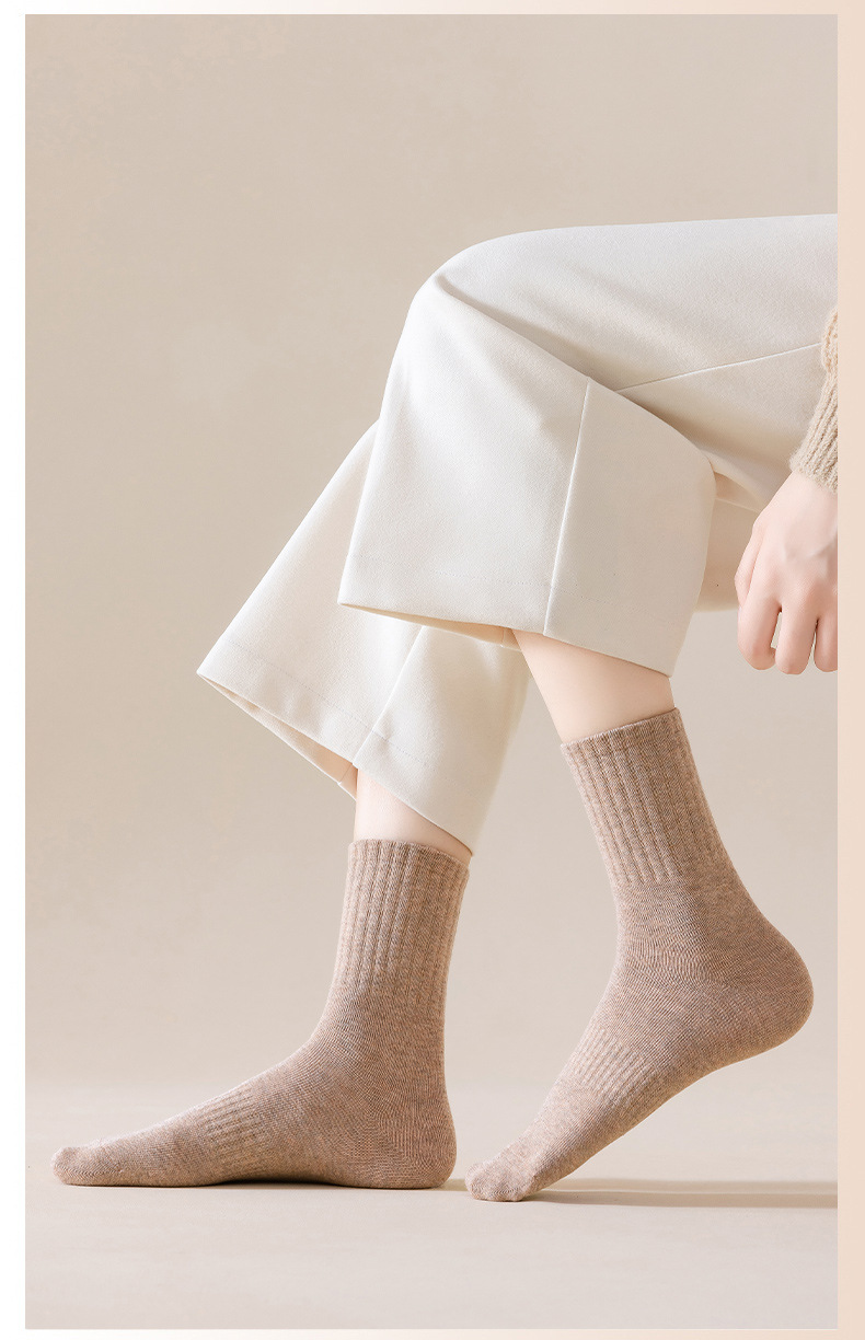 순수 코튼 뼈없는 양말 여성 중반 송아지 양말 가을, 겨울 스포츠 땀 흡수 여성 스타킹 솔리드 컬러 코튼 블랙 중반 송아지 여성 양말
