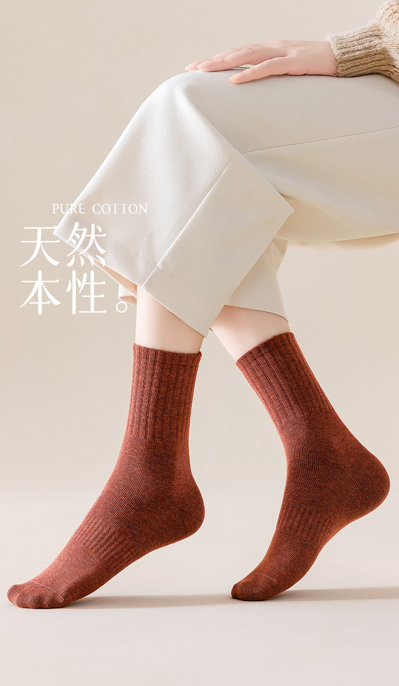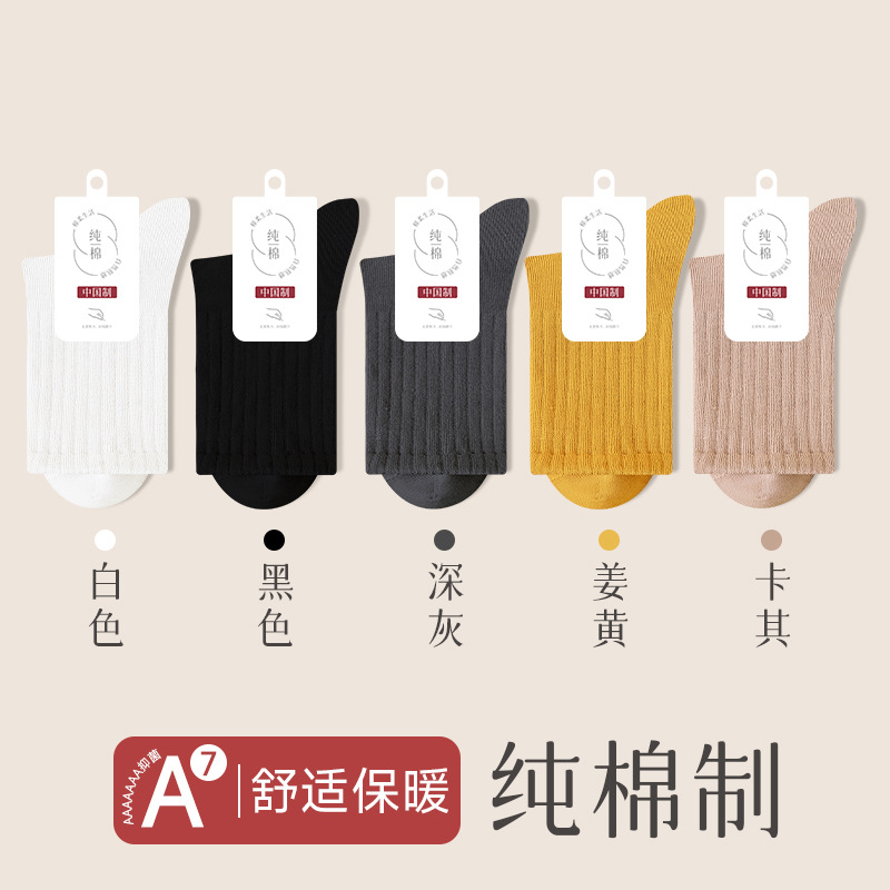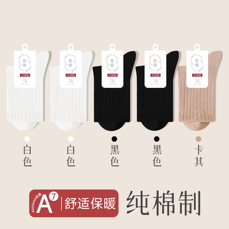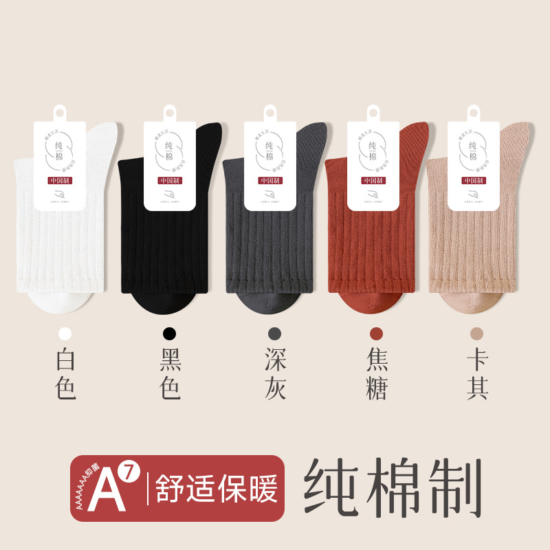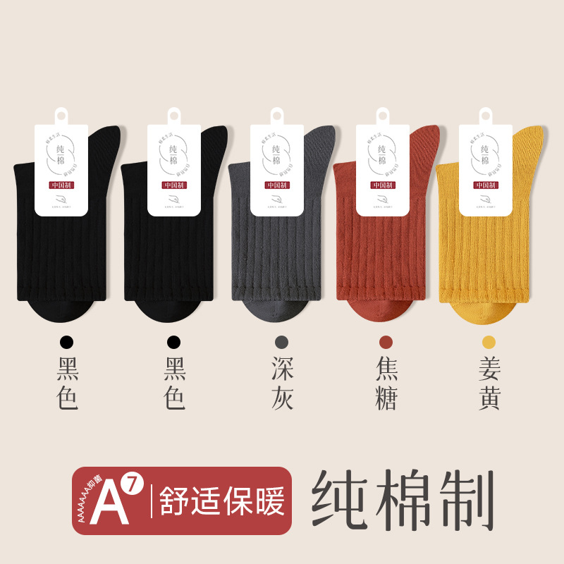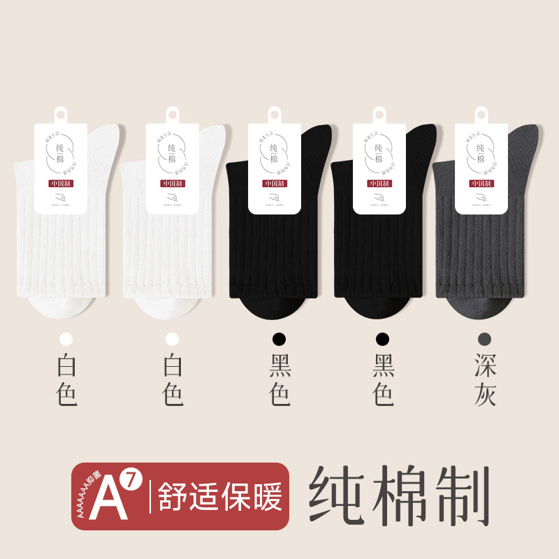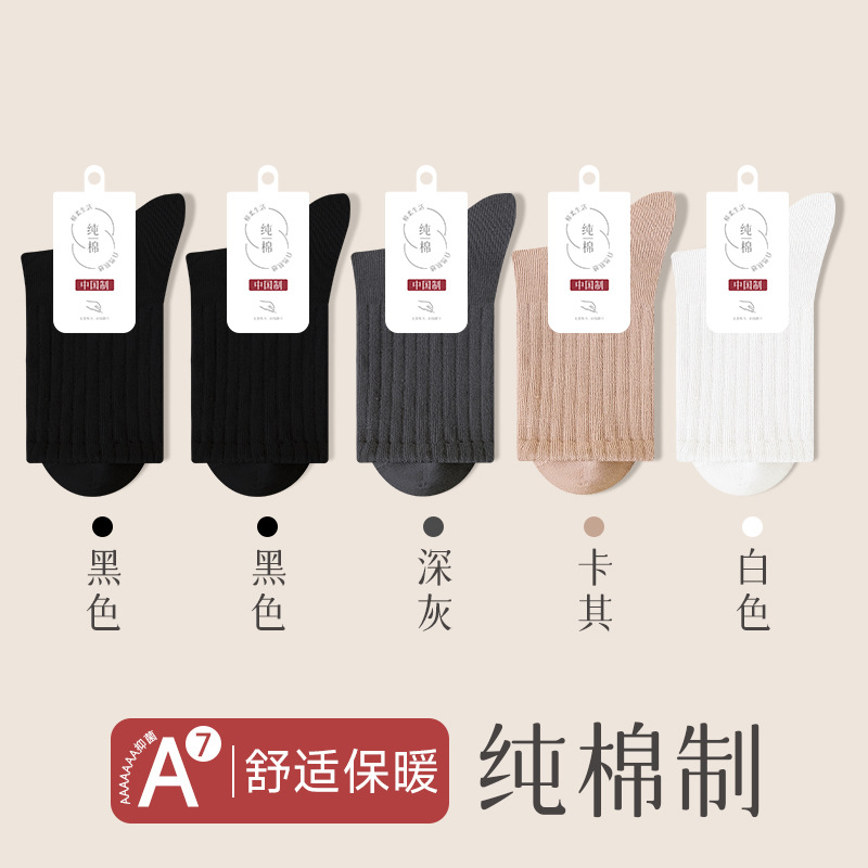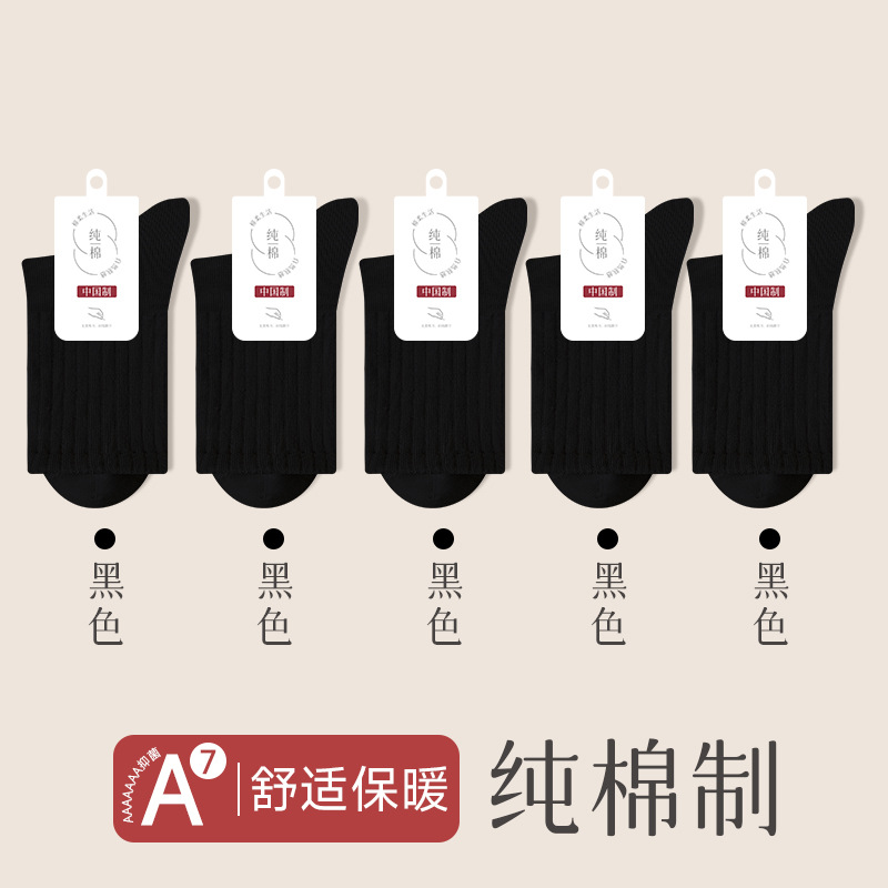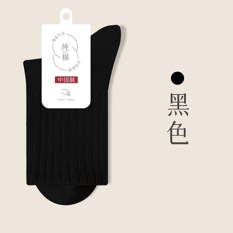 순수 코튼 뼈없는 양말 여성 중반 송아지 양말 가을, 겨울 스포츠 땀 흡수 여성 스타킹 솔리드 컬러 코튼 블랙 중반 송아지 여성 양말스토어 가기