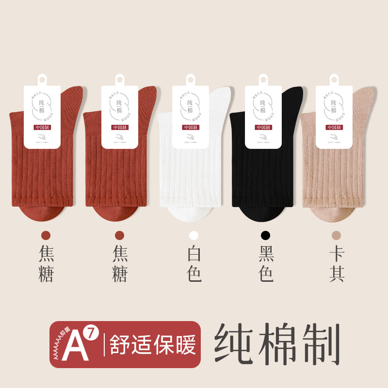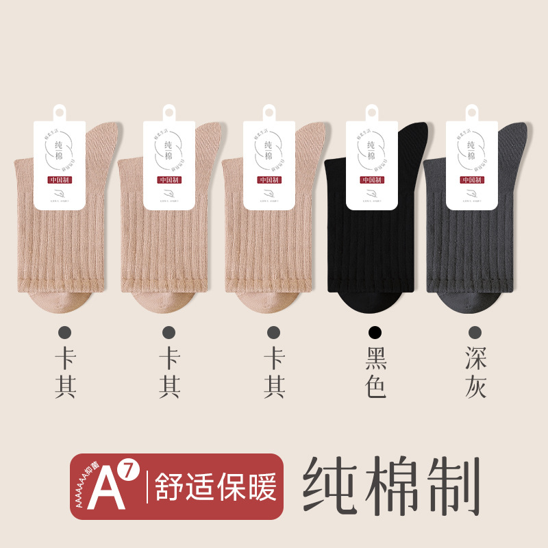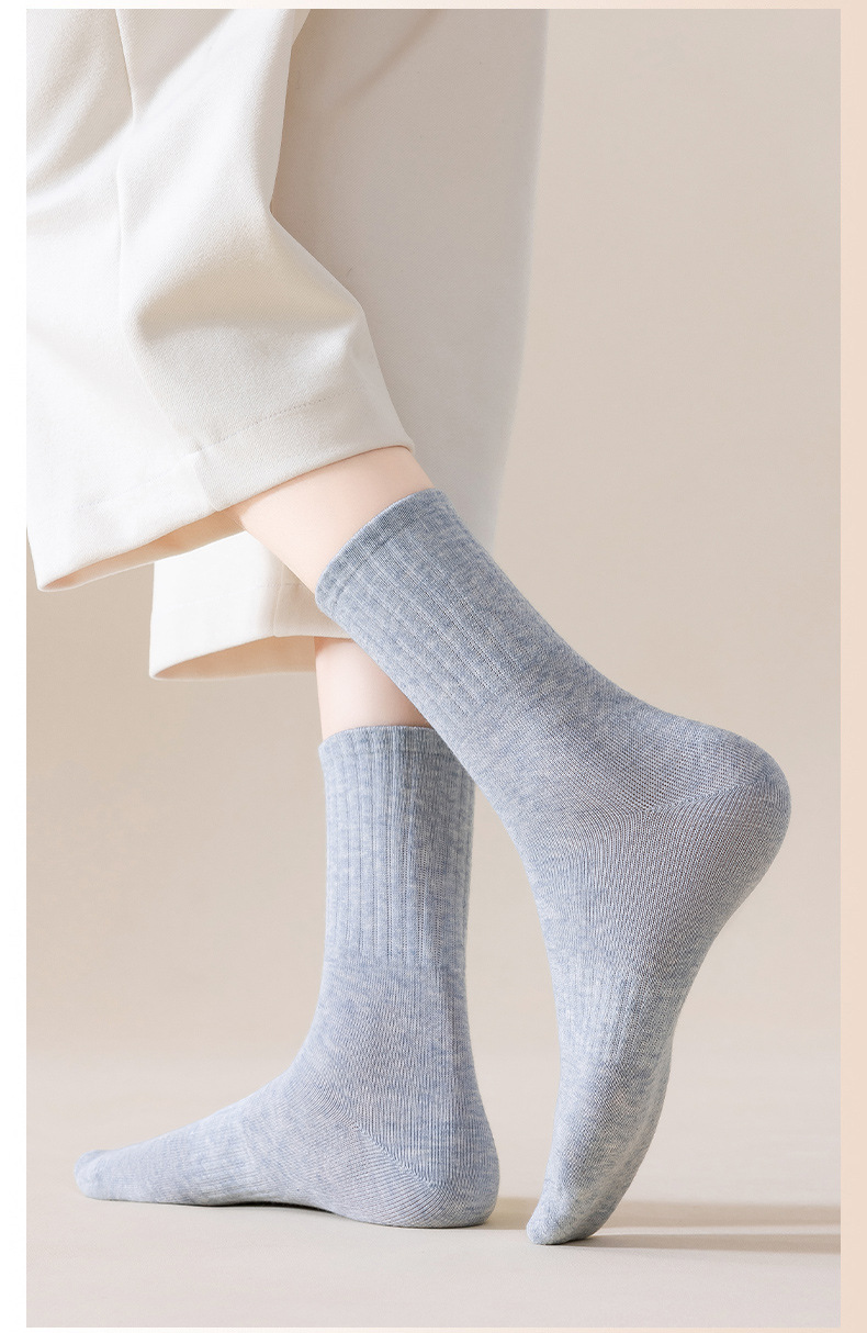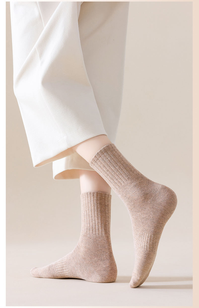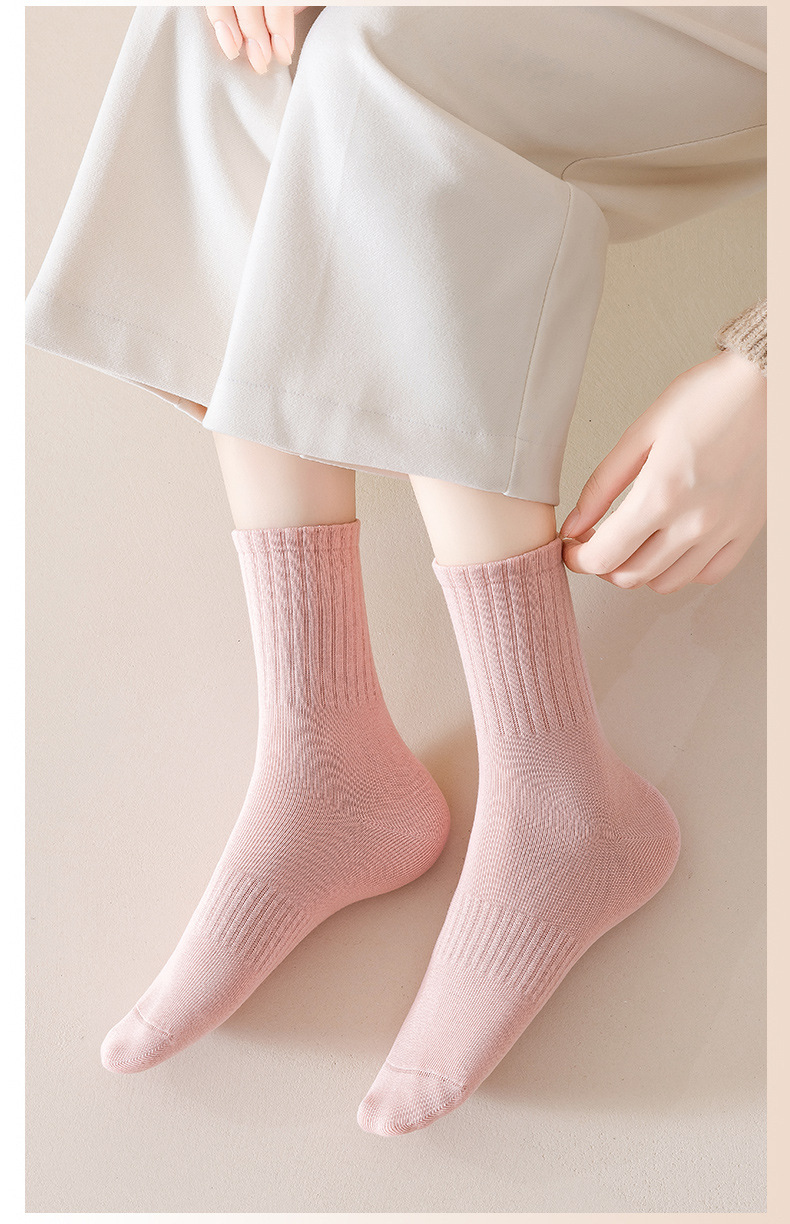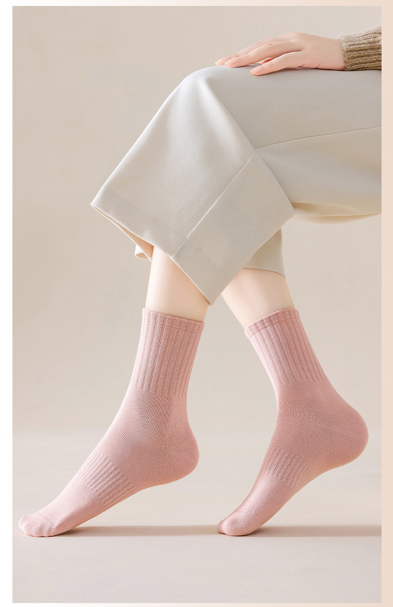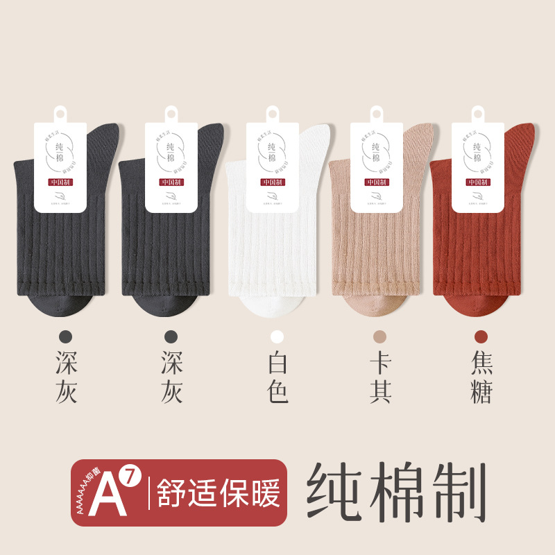 순수 코튼 뼈없는 양말 여성 중반 송아지 양말 가을, 겨울 스포츠 땀 흡수 여성 스타킹 솔리드 컬러 코튼 블랙 중반 송아지 여성 양말스토어 가기