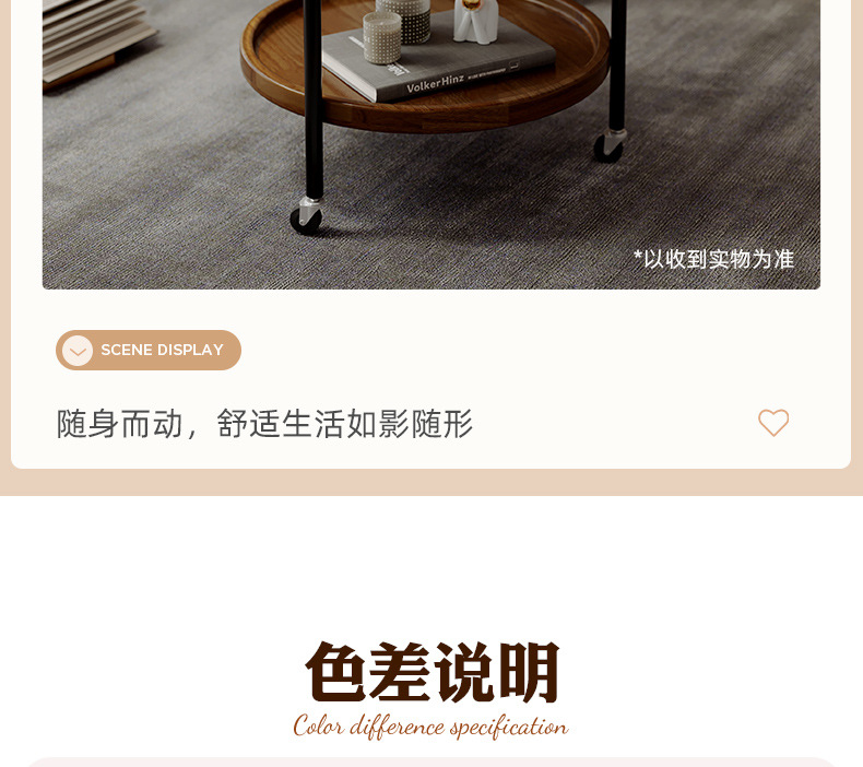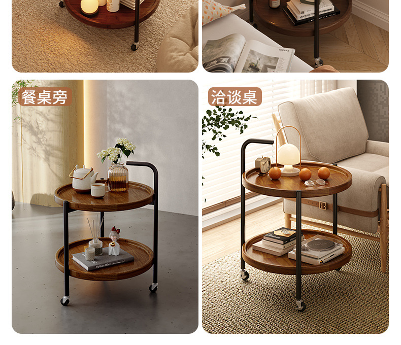 可移动边几实木小茶几客厅家用小户型带轮置物架新款圆形小推车