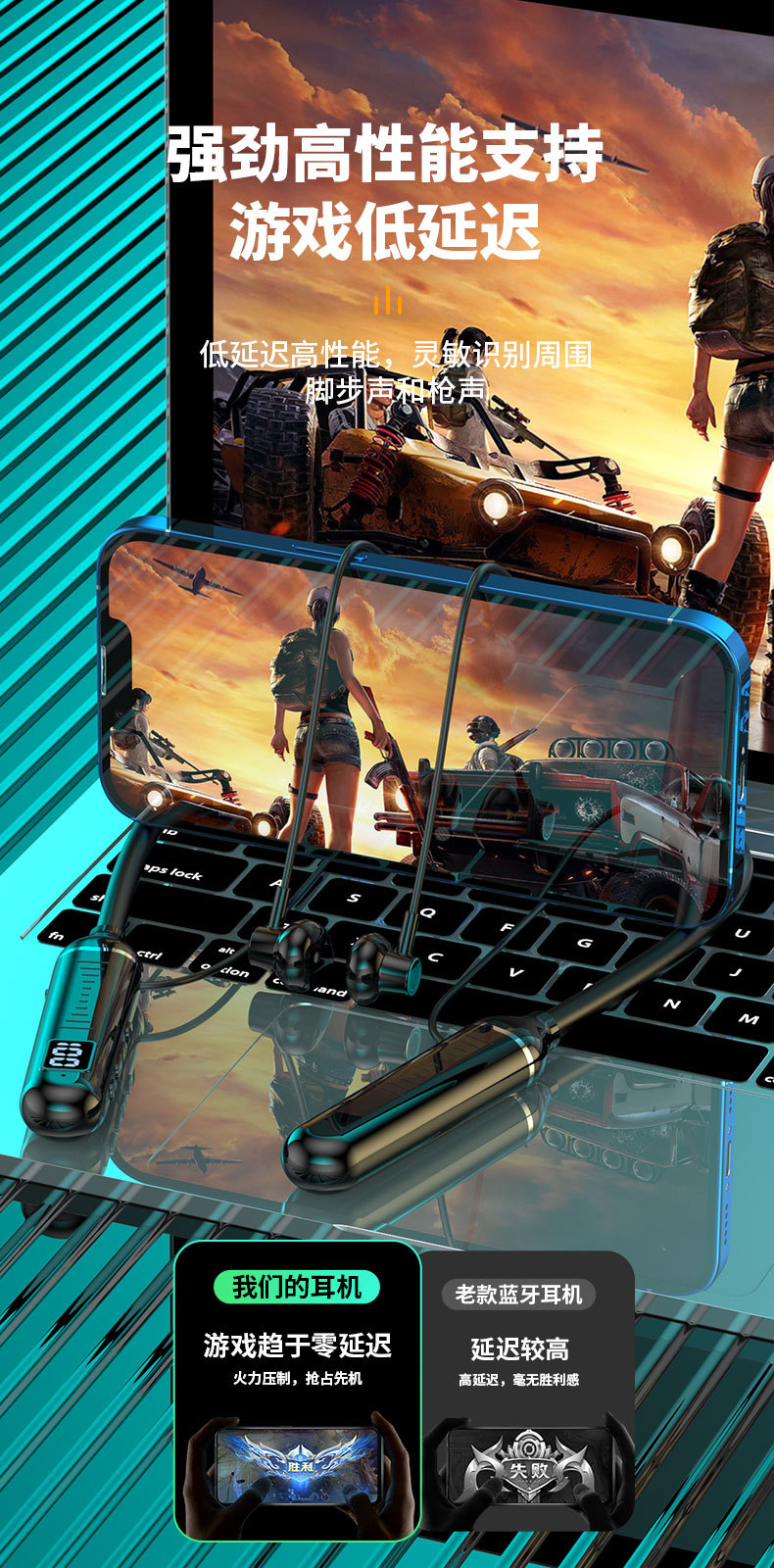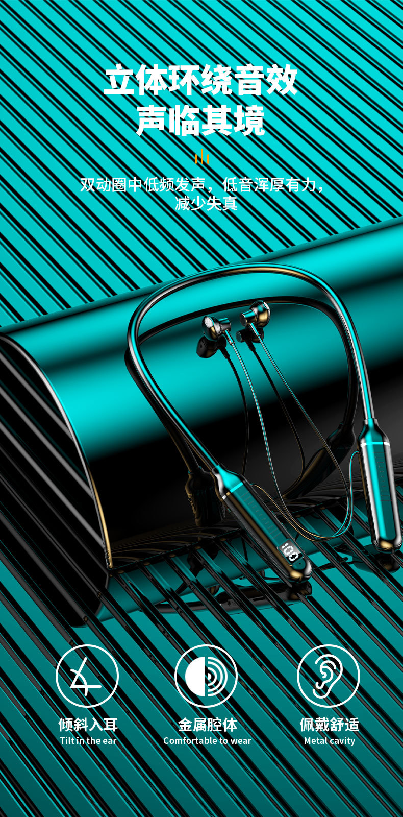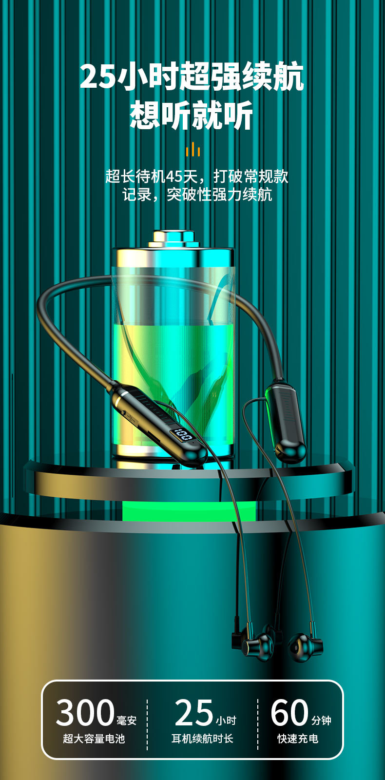 现货批发蓝牙无线耳机挂脖运动双耳入耳颈挂式超长待机续航K21