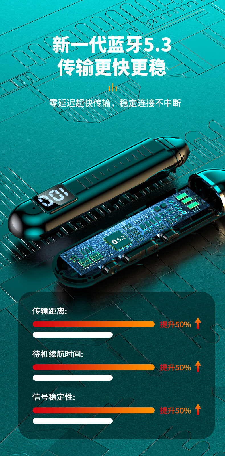 YD04新品私模无线蓝牙耳机TWS大屏智能数显入耳式呼吸灯运动耳机