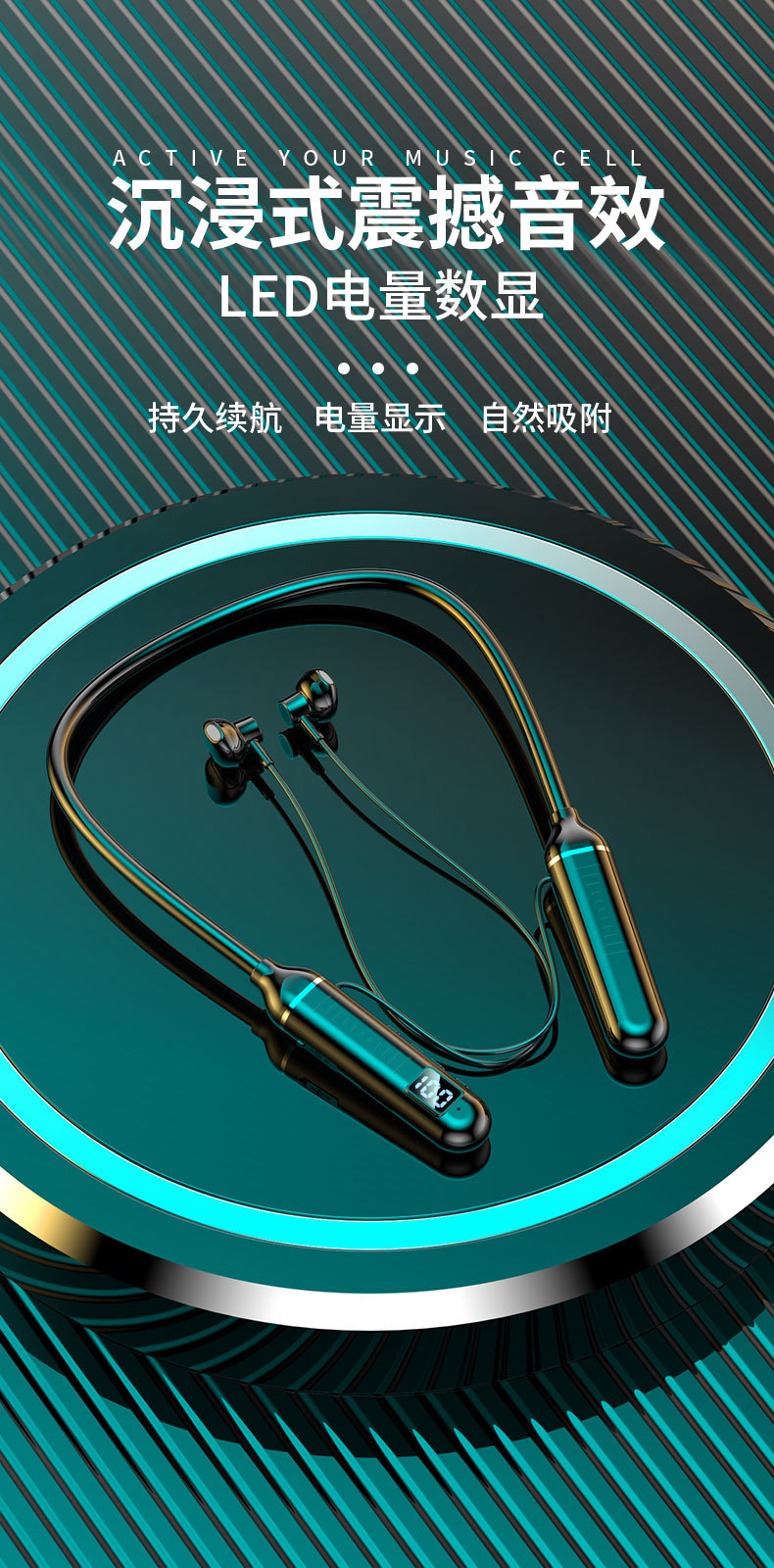 매달려 목 블루투스 헤드셋 전원 디스플레이 무선 블루투스 헤드셋 목 장착 5.3 스포츠 슈퍼 긴 대기 유니버설스토어 가기
