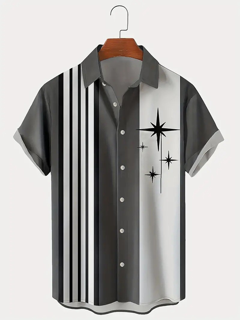 국경 간 전자 상거래 여름 남성 반팔 하와이안 셔츠 패션 스트라이프 패턴 3D 디지털 인쇄 옷깃 카디건스토어 가기