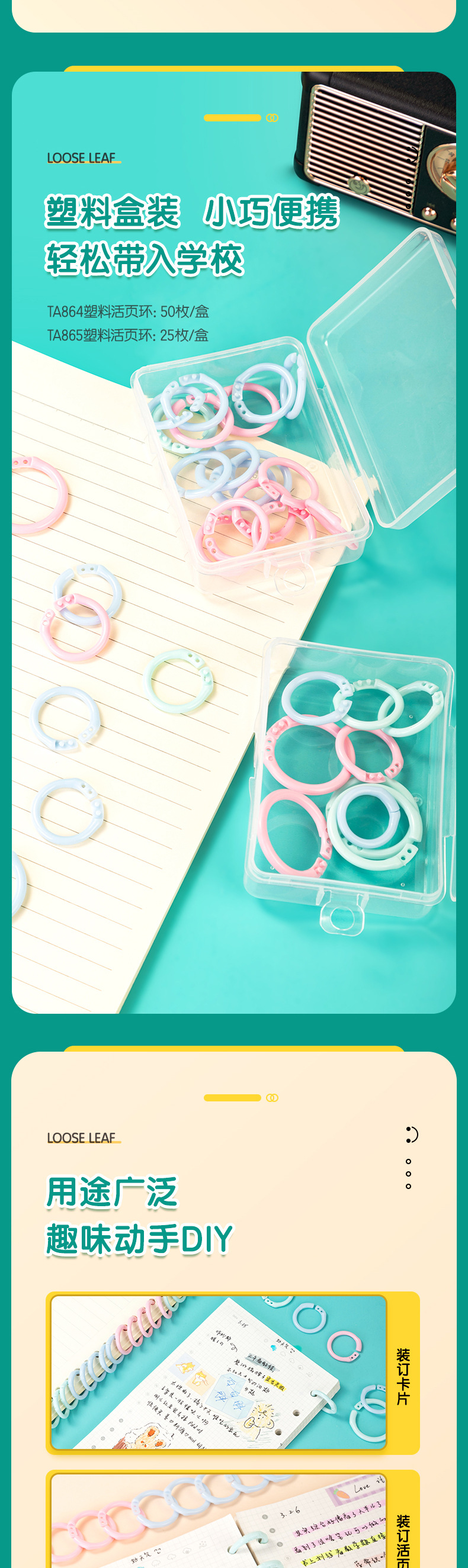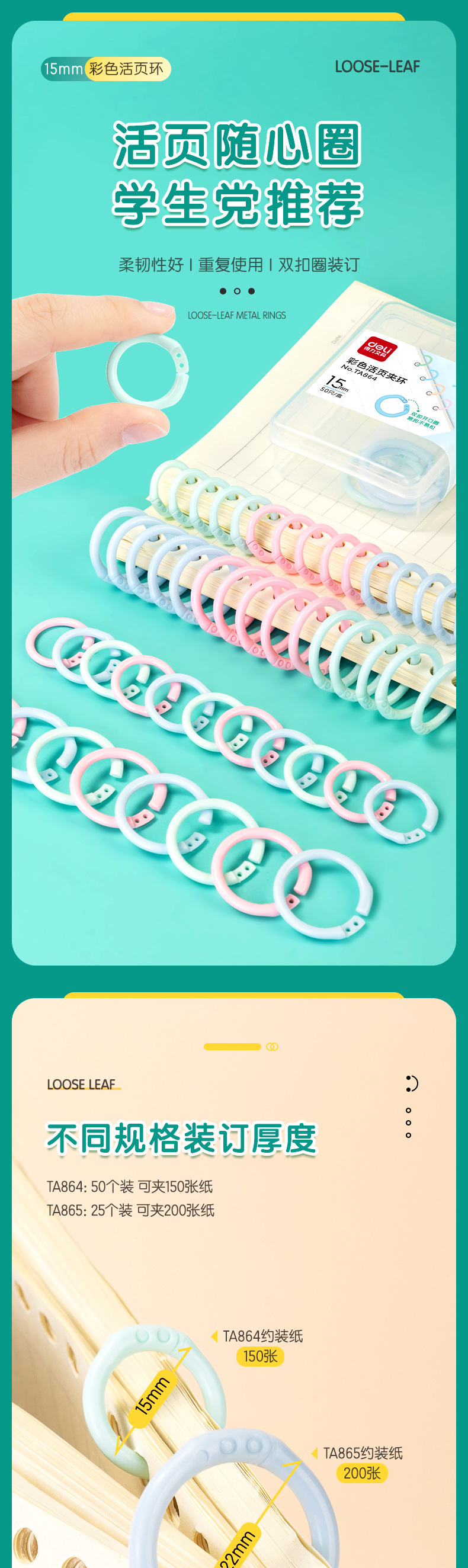 델리 TA864 컬러 느슨한 잎 버클 링 분리 가능한 포어 펀처 문서 버클 학생 도서 바인딩 링