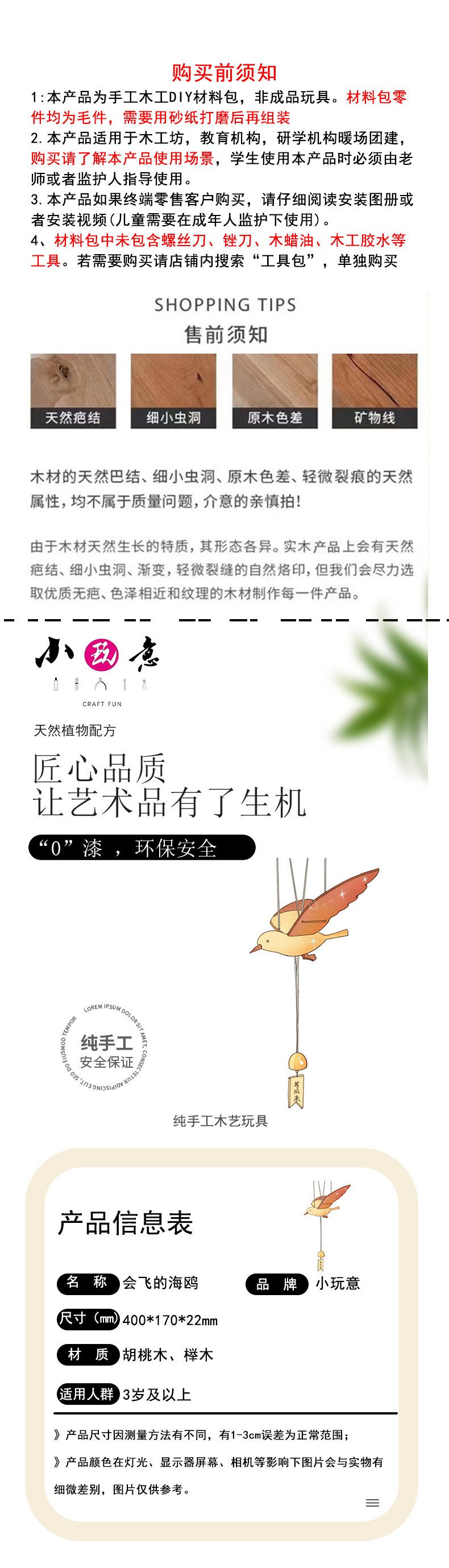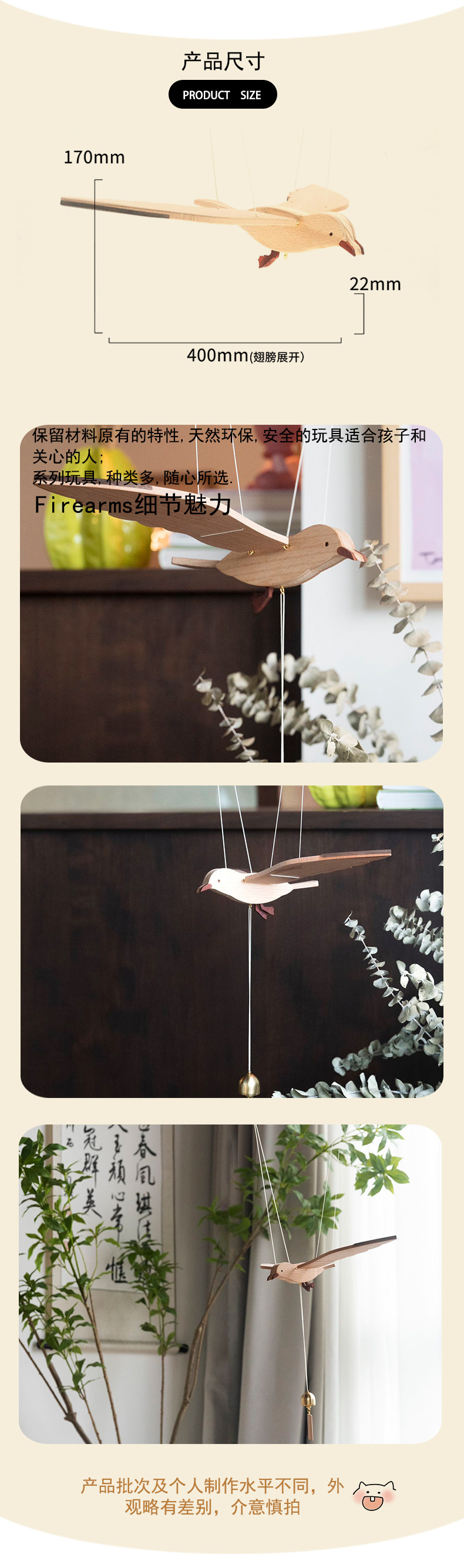 비행 갈매기 공기 균형 매달려 장식 수제 소재 가방 나무 새 펜던트 어린이 창조적 인스토어 가기