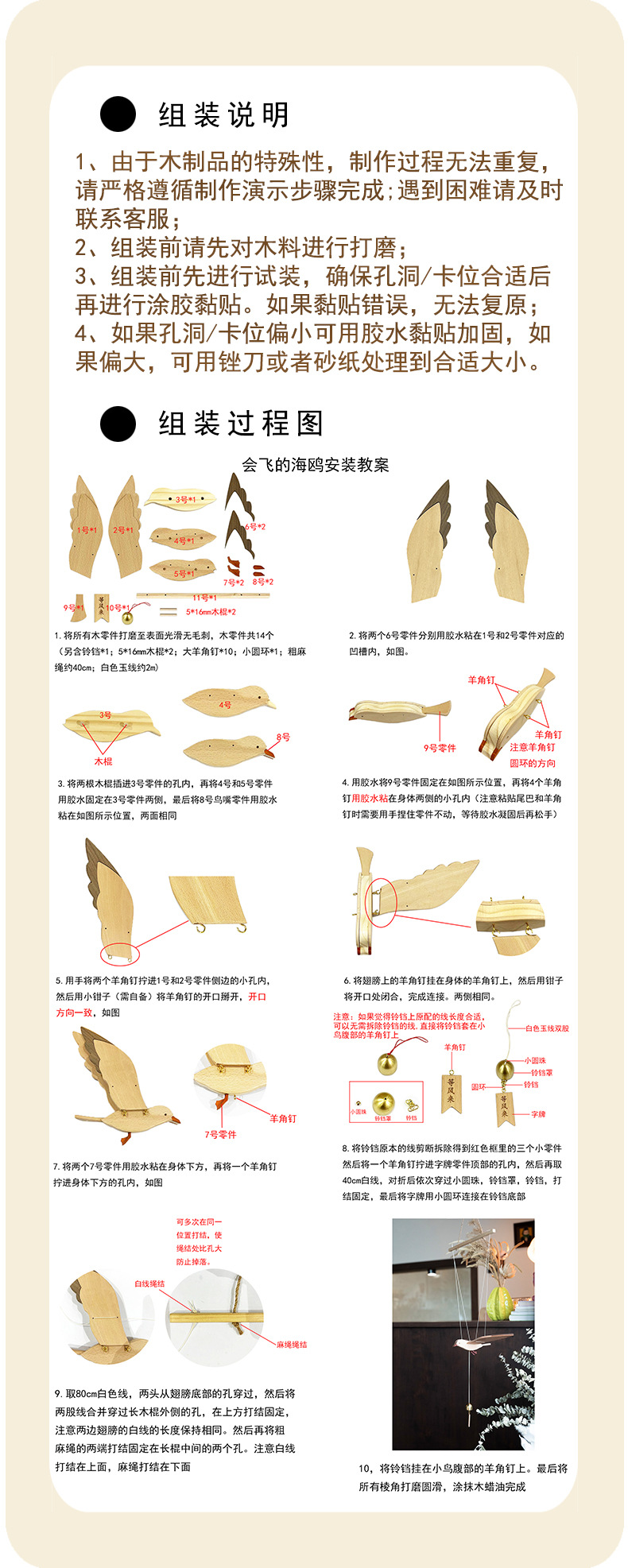 비행 갈매기 공기 균형 매달려 장식 수제 소재 가방 나무 새 펜던트 어린이 창조적 인