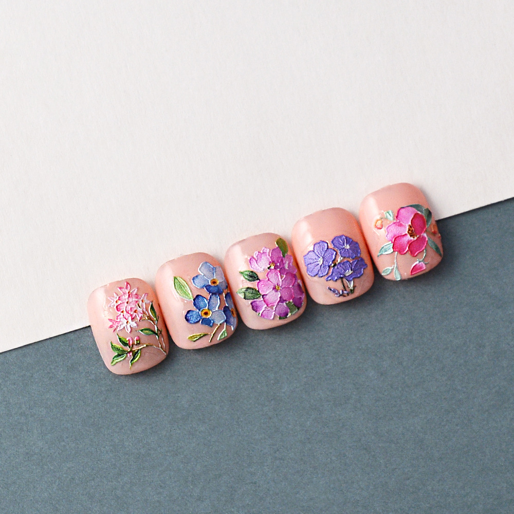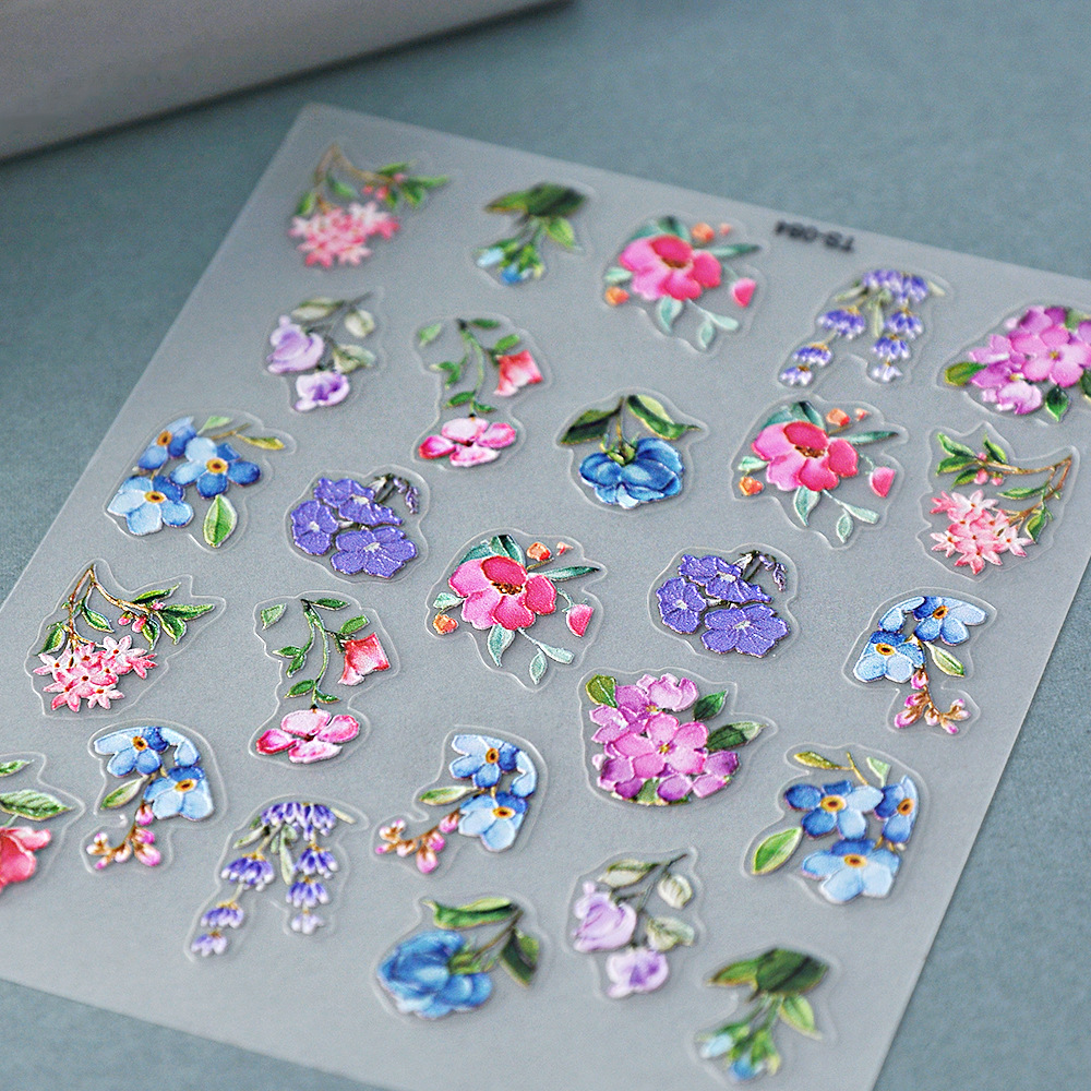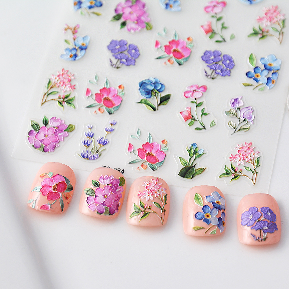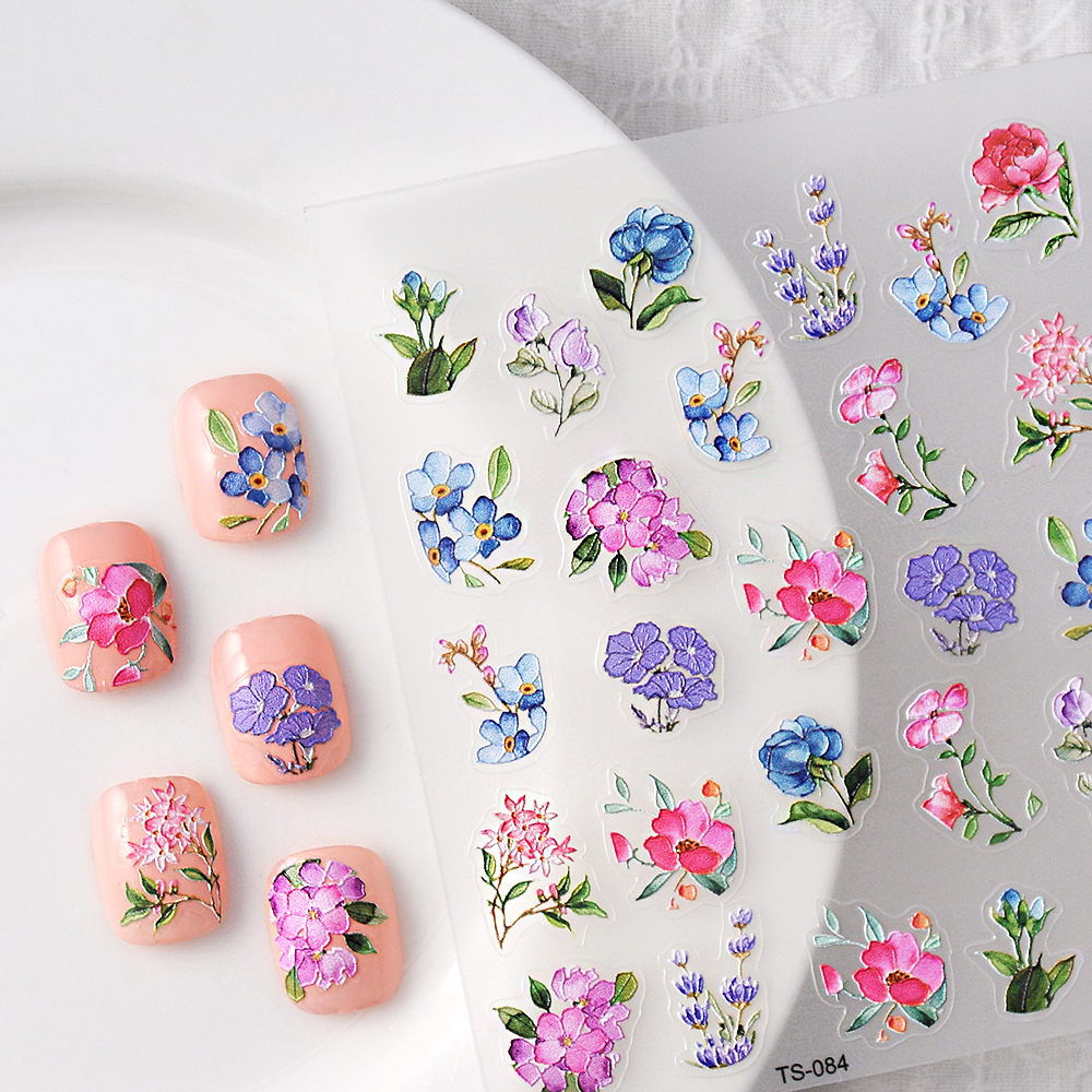 네일 아트 3 차원 잉크젯 얇은 거친 다채로운 꽃 네일 스티커 복사 립스틱 장식 자체 접착 메이크업 스티커