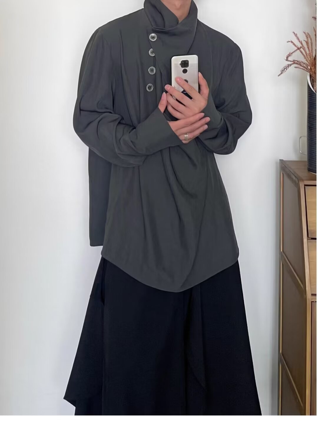 니치 드롭 셔츠 남자의 2024 새로운 봄과 여름 빛 성숙한 영국 스타일 고급 더피 슈아이 차오 브랜드 긴팔 셔츠 재킷