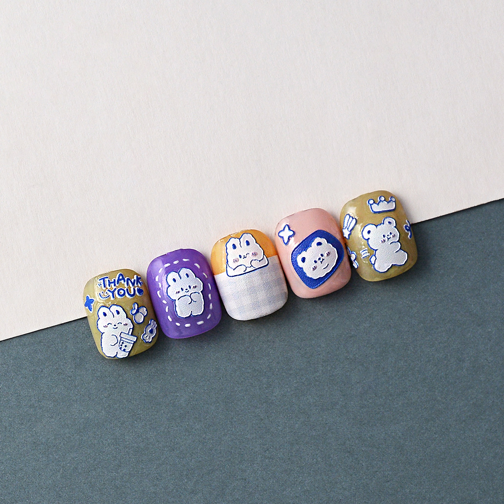 DIY 네일 아트 스티커 벙어리 귀여운 토끼 네일 장식 스티커 트렌디 쿨 핸드 계정 구오 카드 셀프 접착 인터넷 연예인