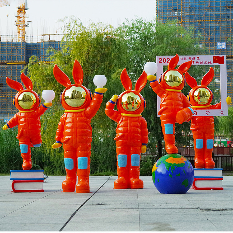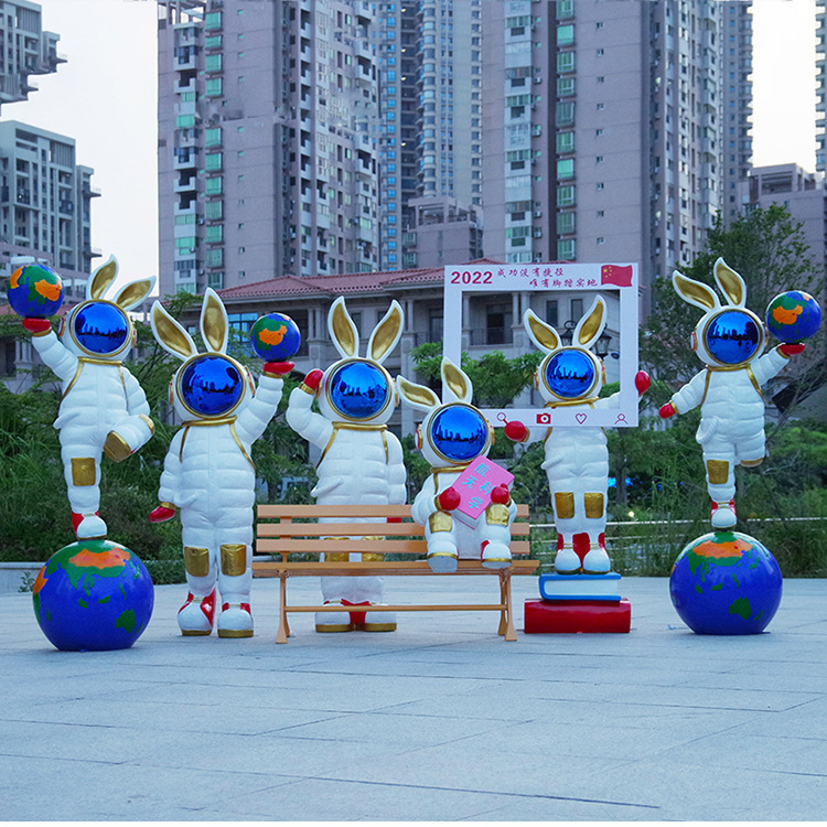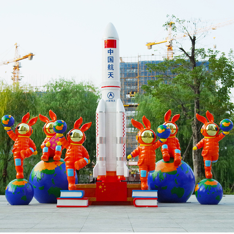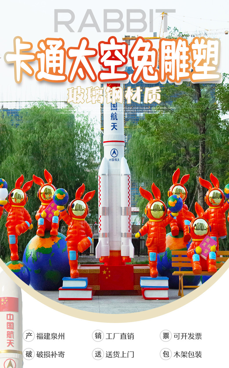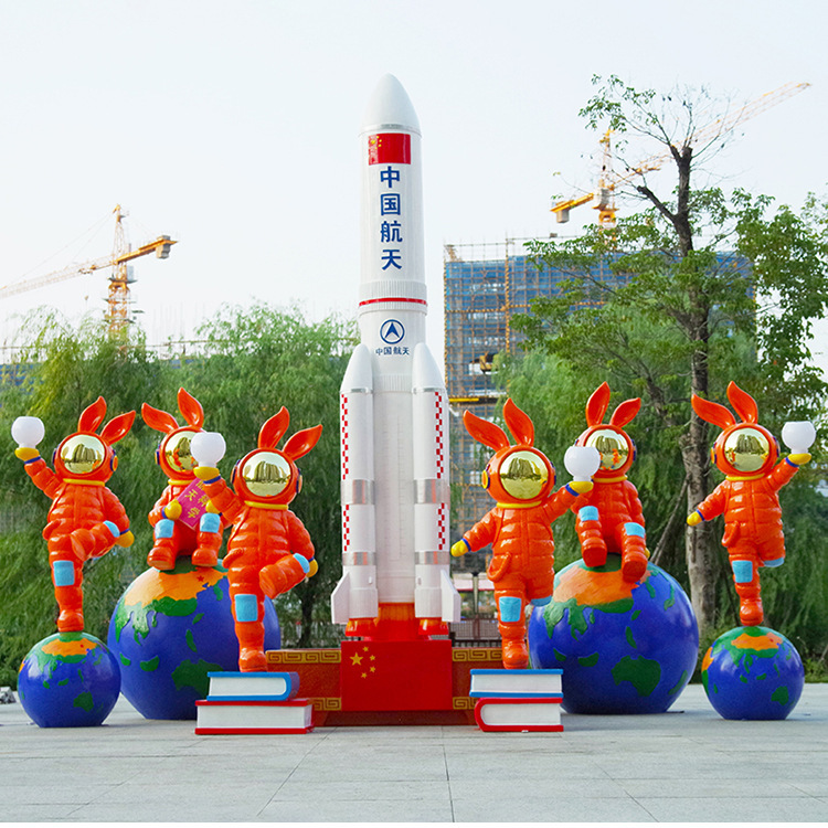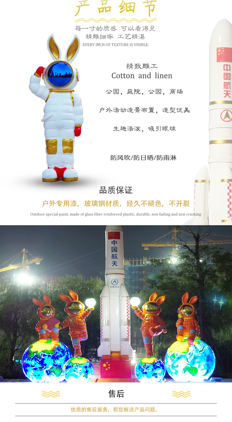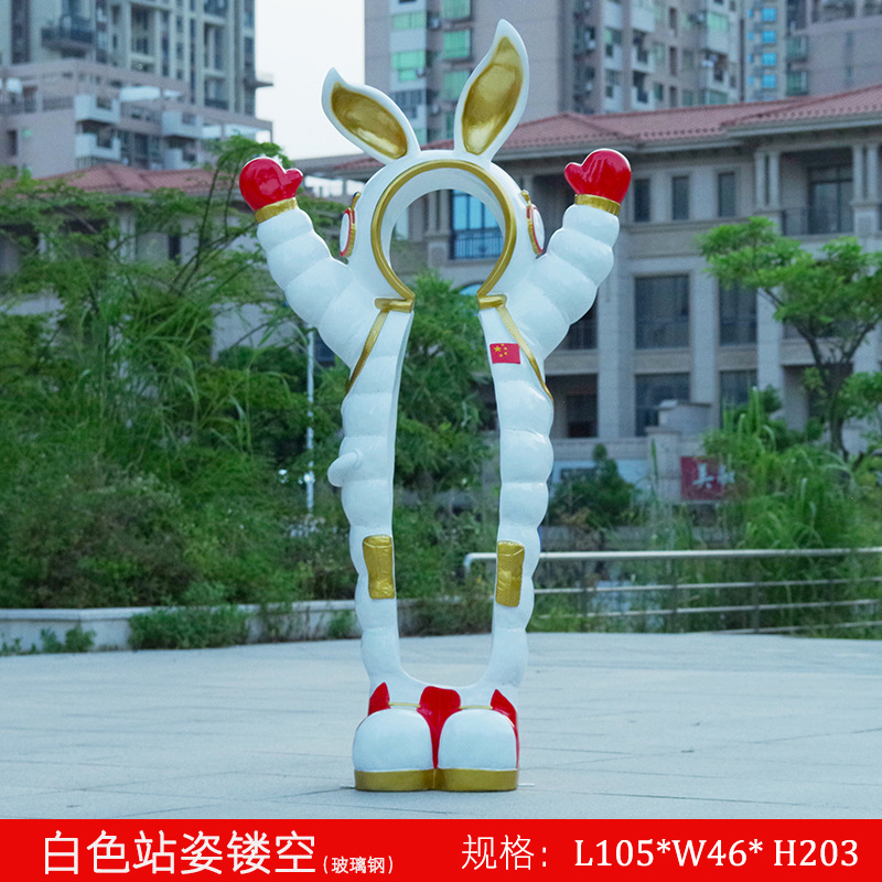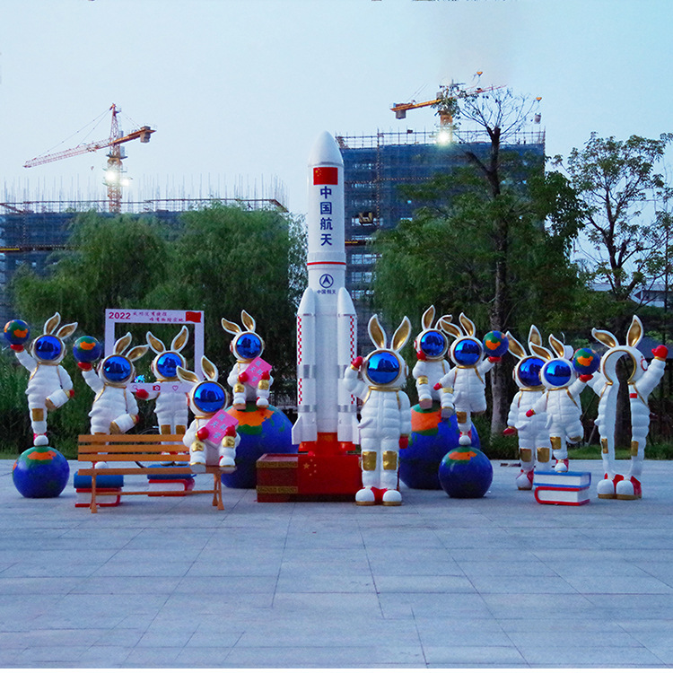 야외 유리 섬유 강화 플라스틱 빛나는 달빛 토끼 공간 토끼 큰 조각 그물 빨간 푸시 카드 공간 로켓 Meichen 쇼핑몰 장식스토어 가기