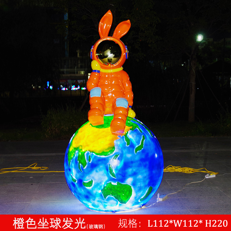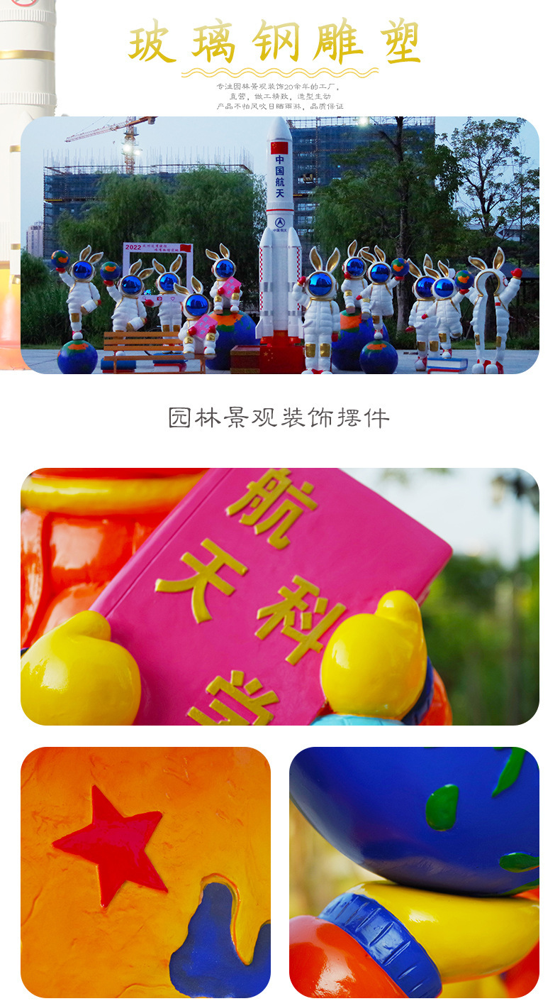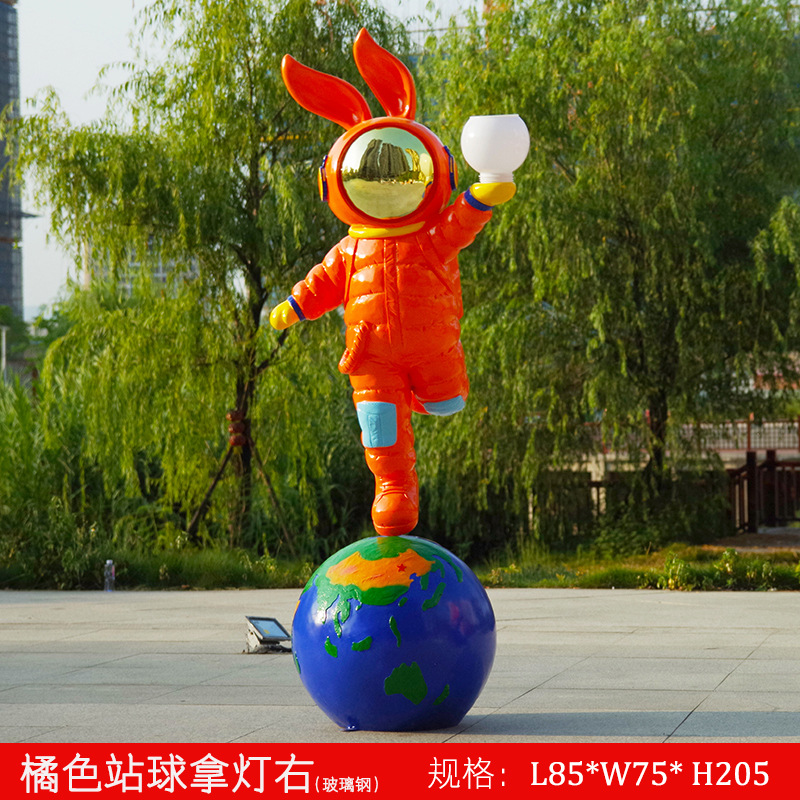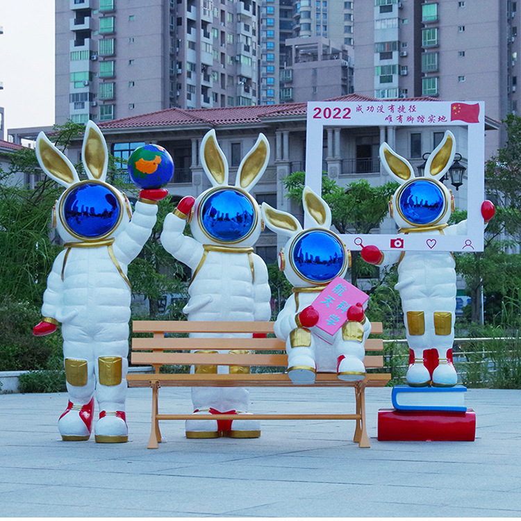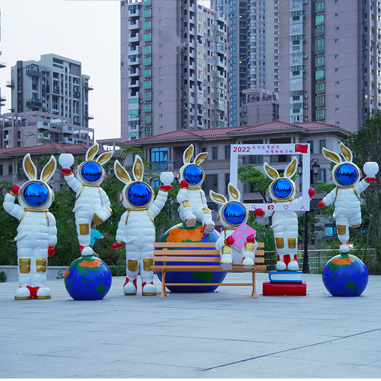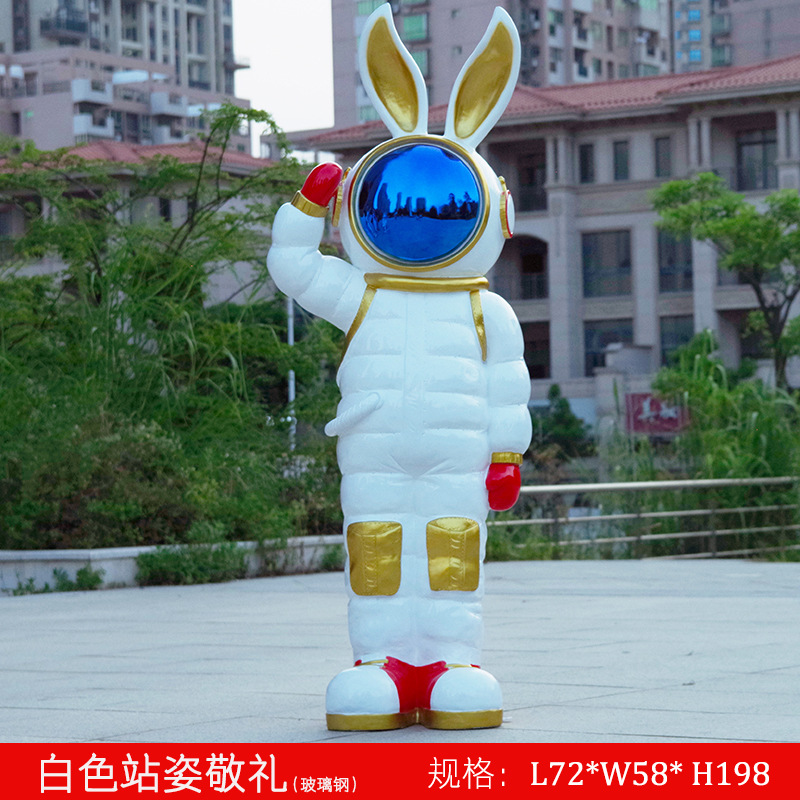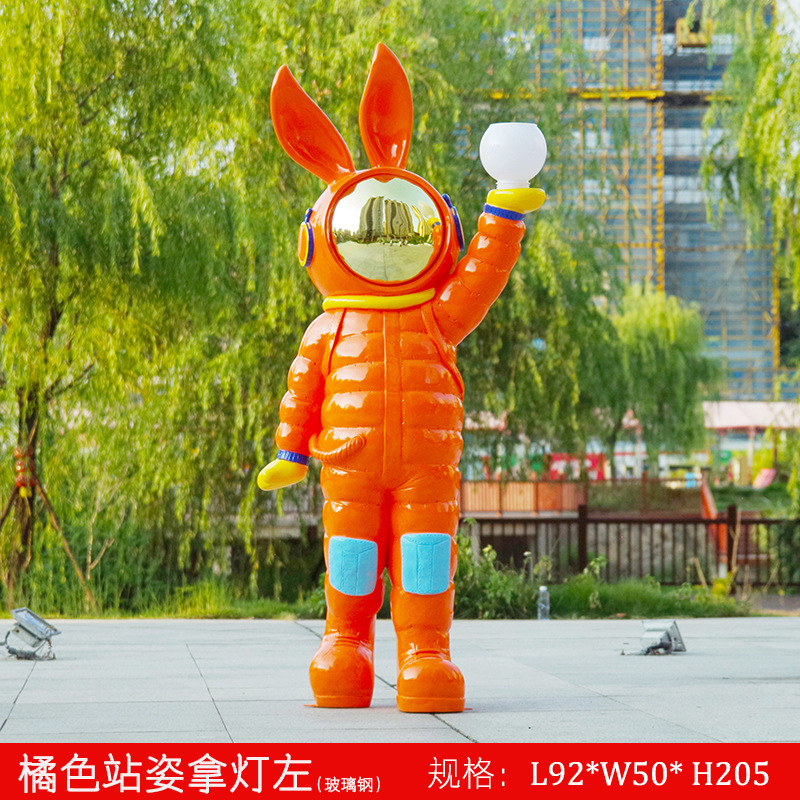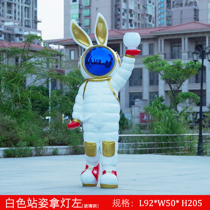 야외 유리 섬유 강화 플라스틱 빛나는 달빛 토끼 공간 토끼 큰 조각 그물 빨간 푸시 카드 공간 로켓 Meichen 쇼핑몰 장식스토어 가기