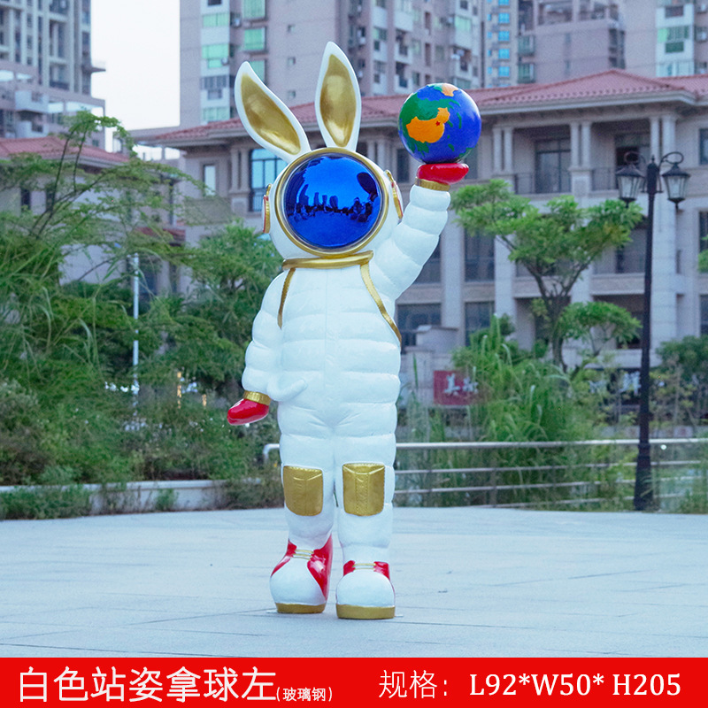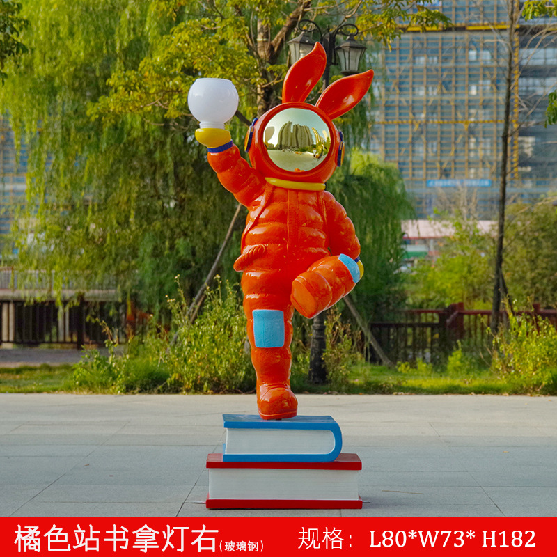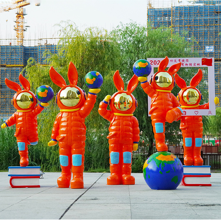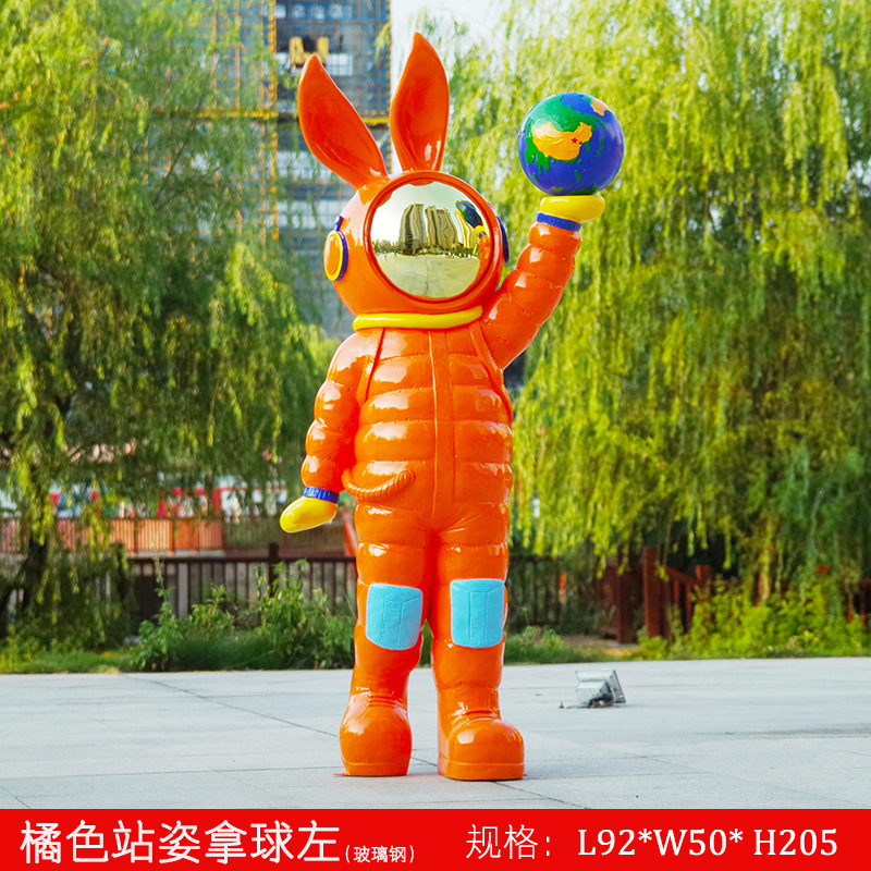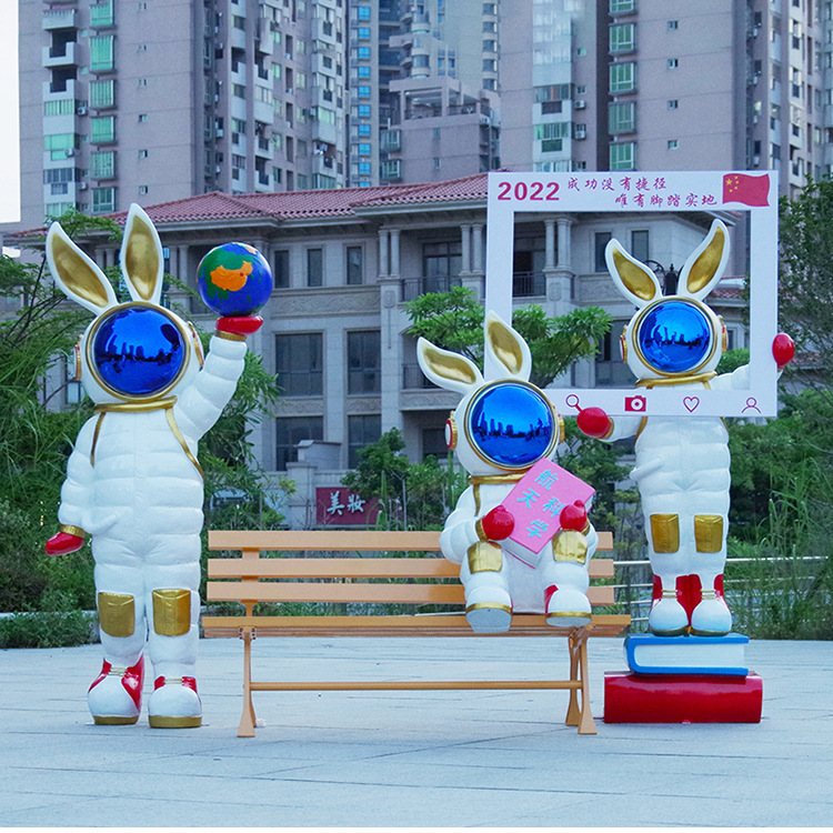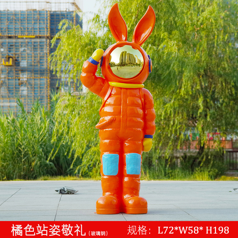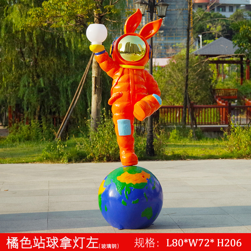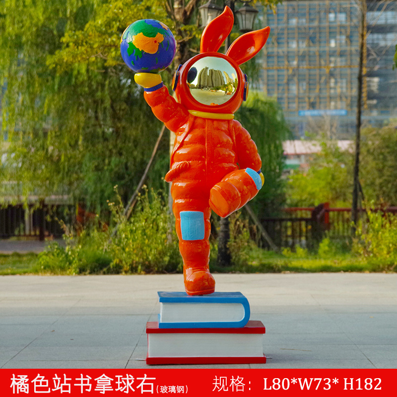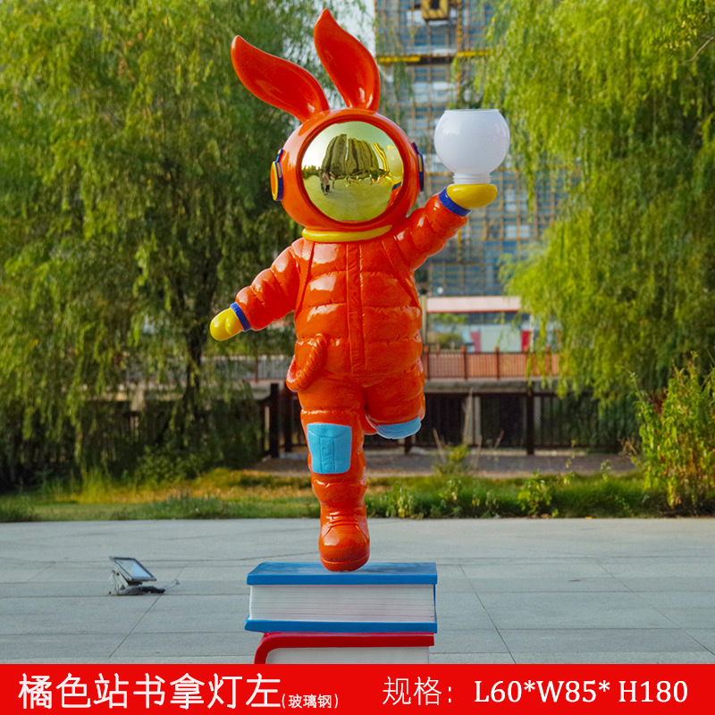 야외 유리 섬유 강화 플라스틱 빛나는 달빛 토끼 공간 토끼 큰 조각 그물 빨간 푸시 카드 공간 로켓 Meichen 쇼핑몰 장식스토어 가기