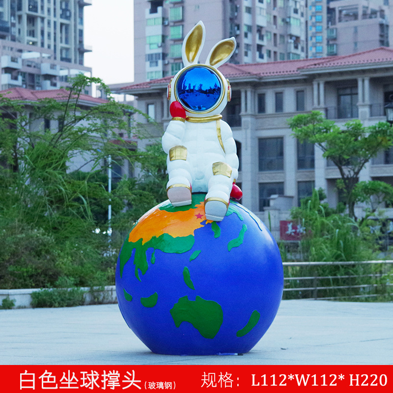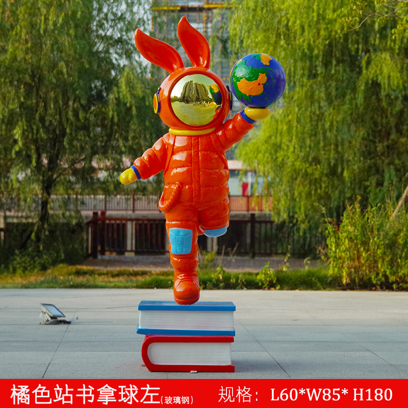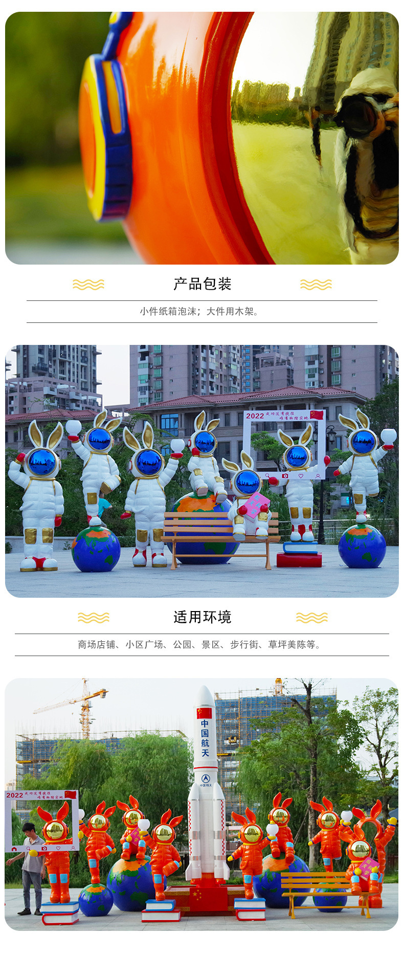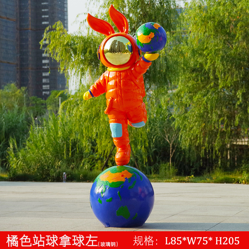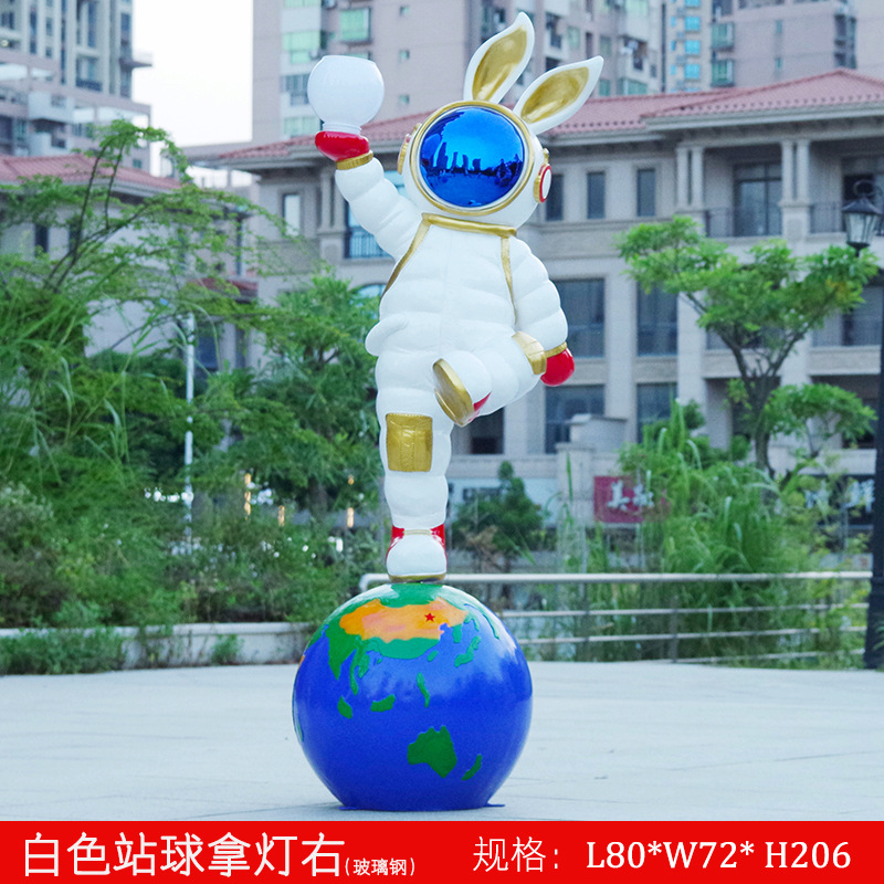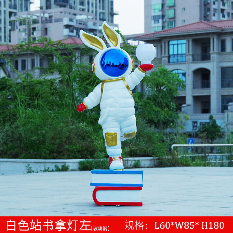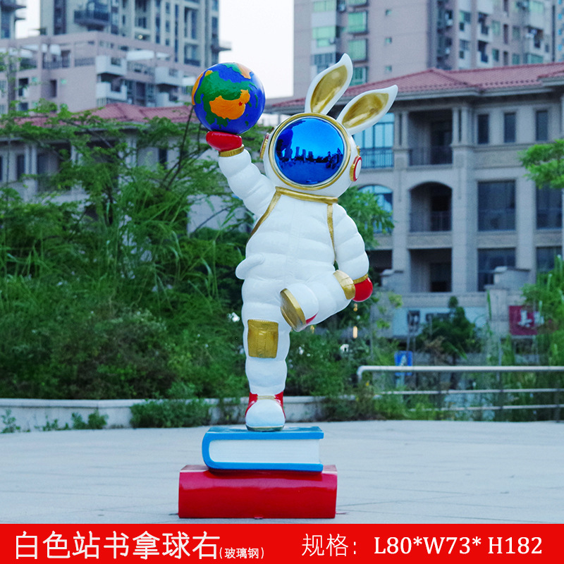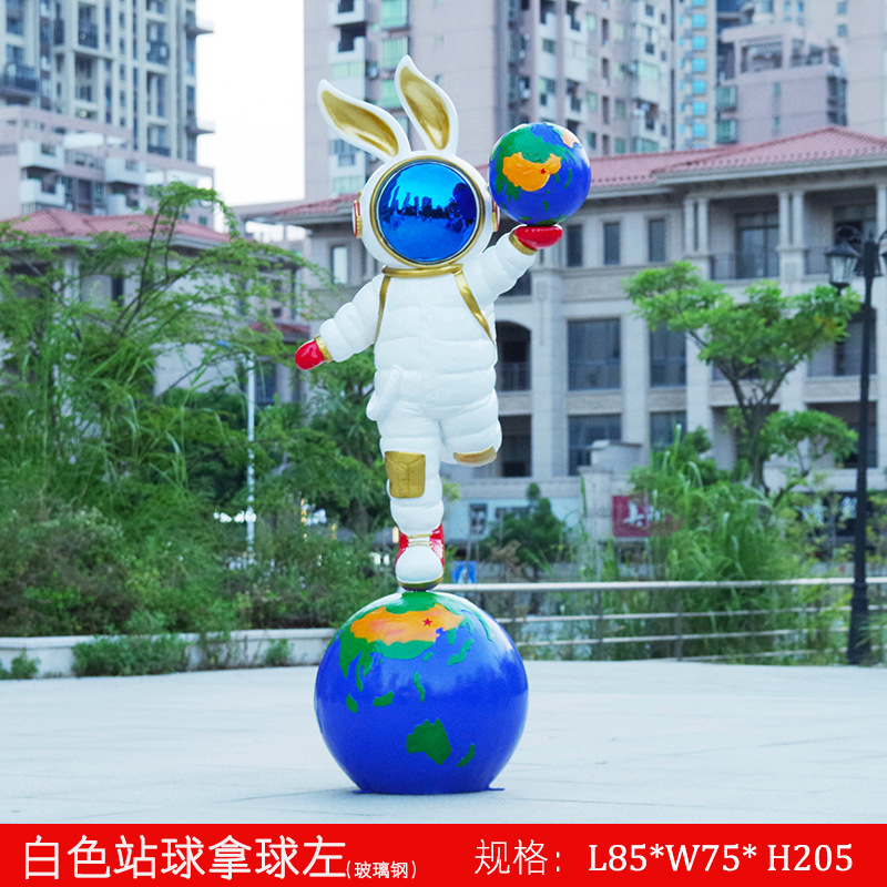 야외 유리 섬유 강화 플라스틱 빛나는 달빛 토끼 공간 토끼 큰 조각 그물 빨간 푸시 카드 공간 로켓 Meichen 쇼핑몰 장식스토어 가기