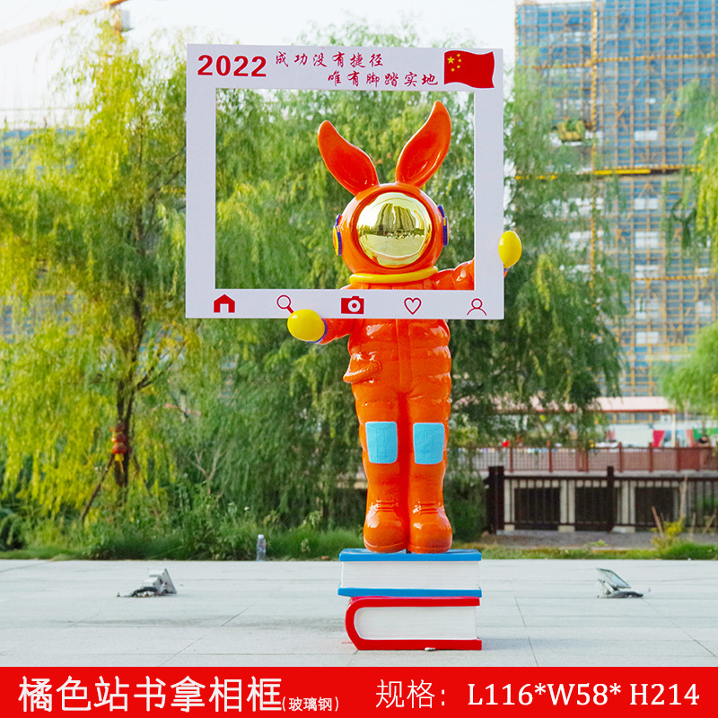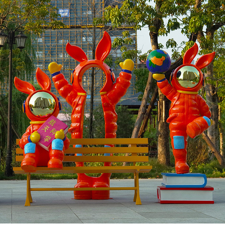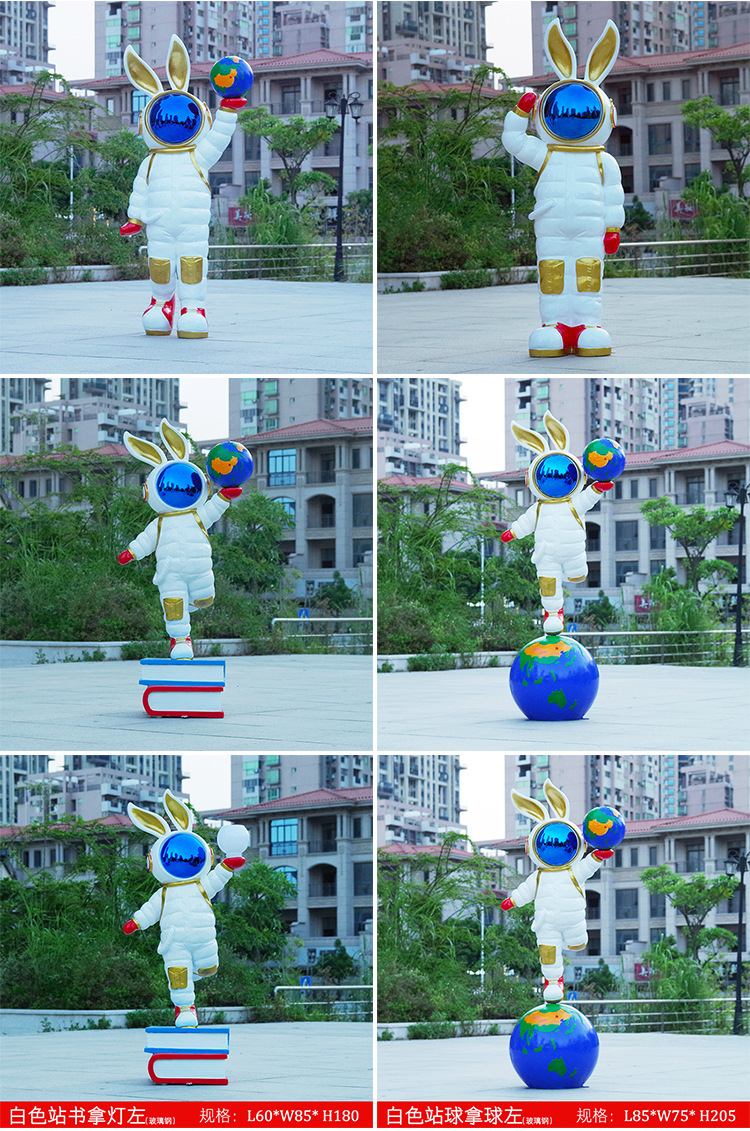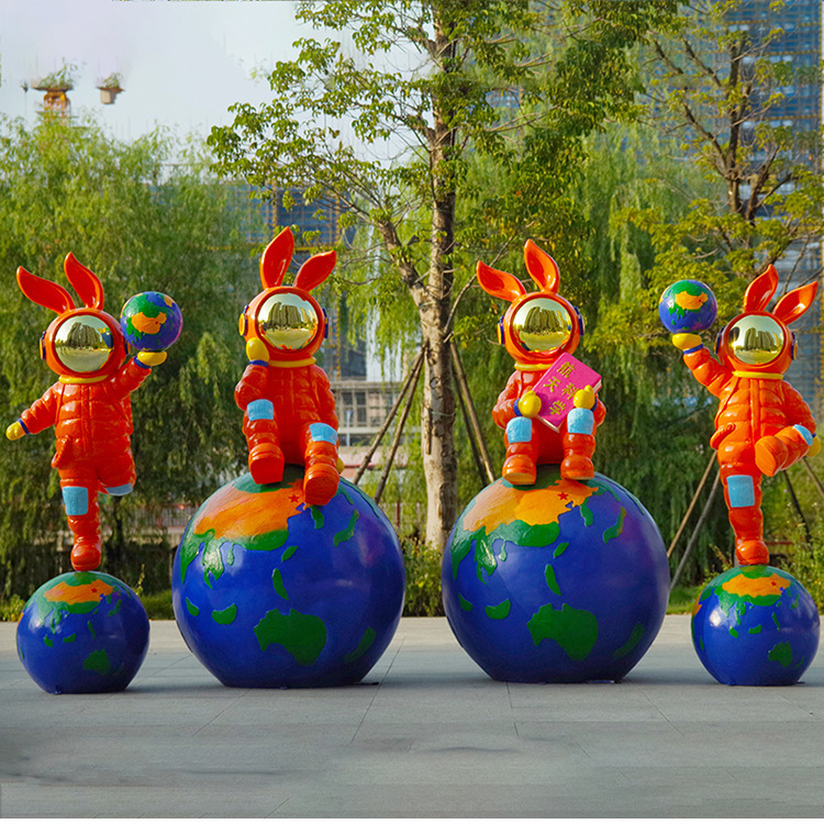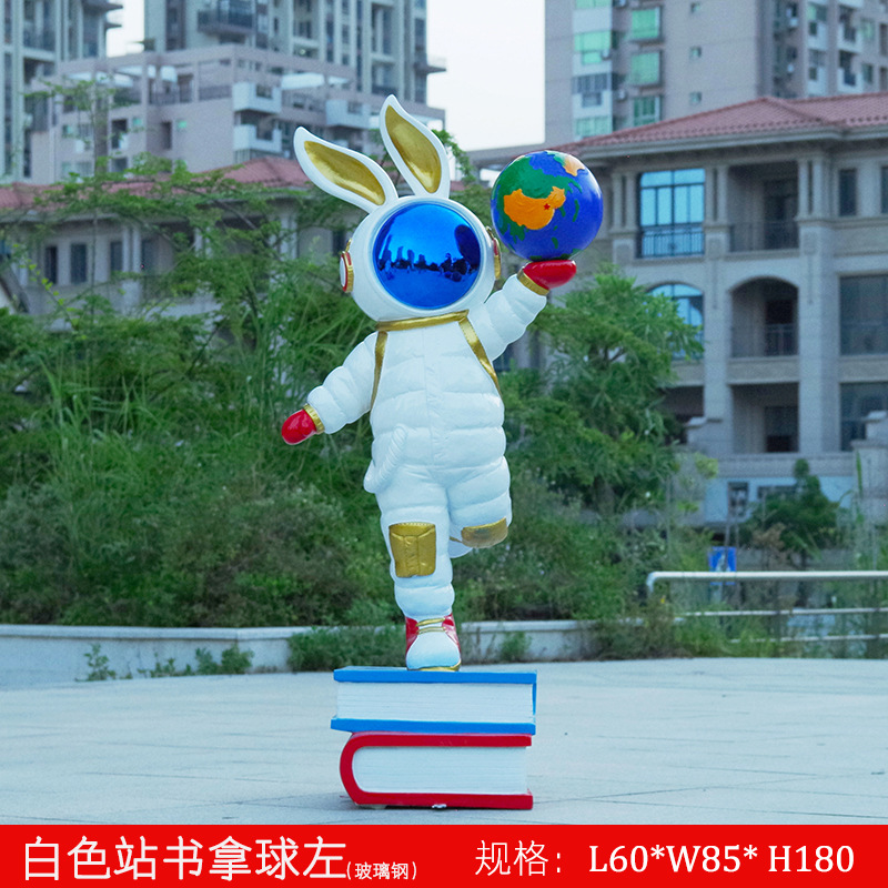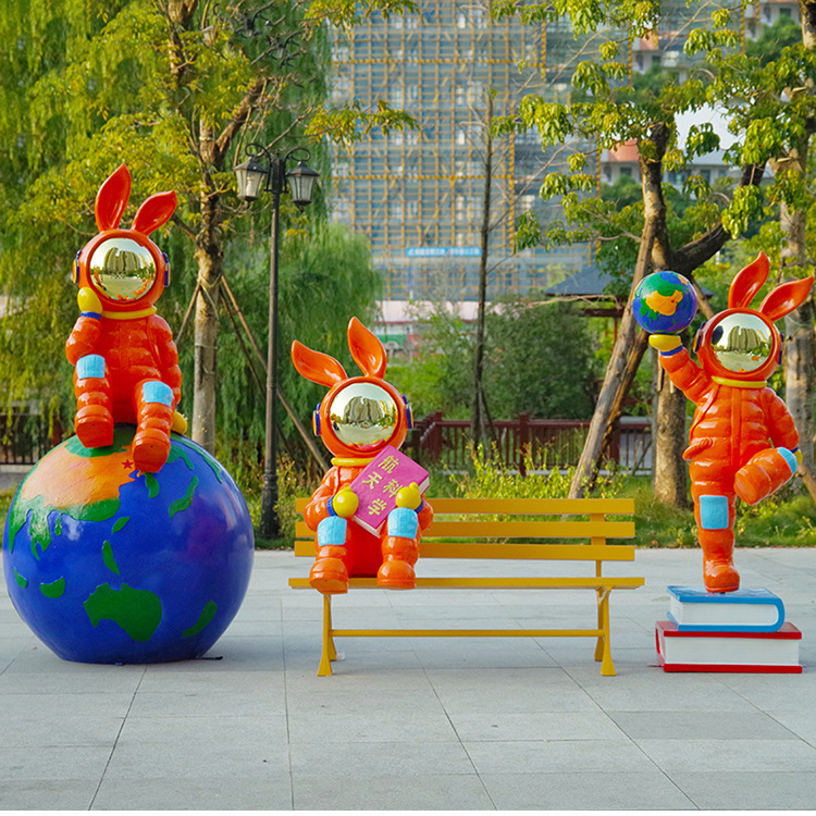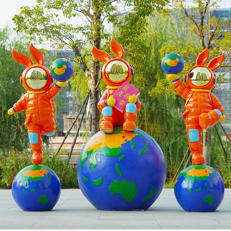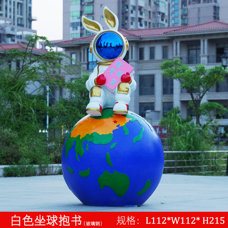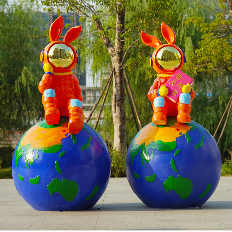 야외 유리 섬유 강화 플라스틱 빛나는 달빛 토끼 공간 토끼 큰 조각 그물 빨간 푸시 카드 공간 로켓 Meichen 쇼핑몰 장식스토어 가기