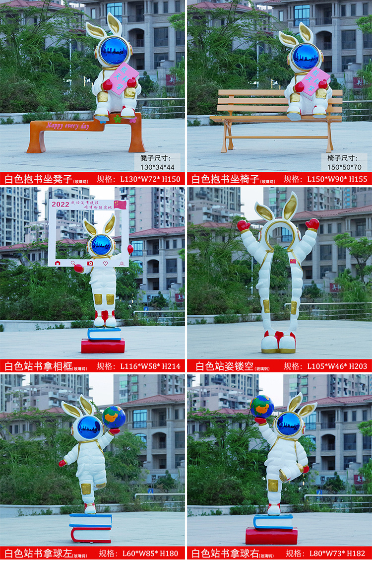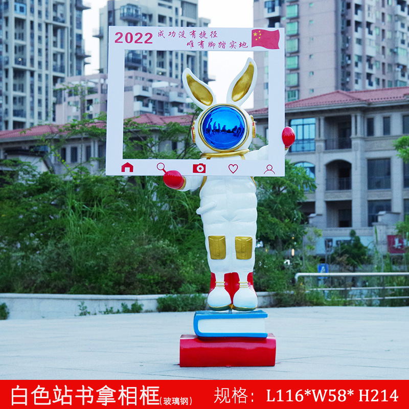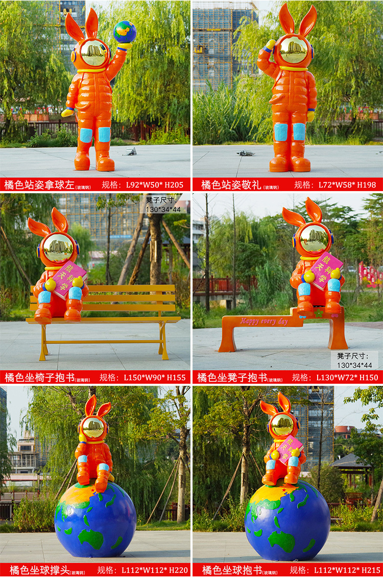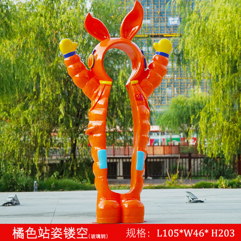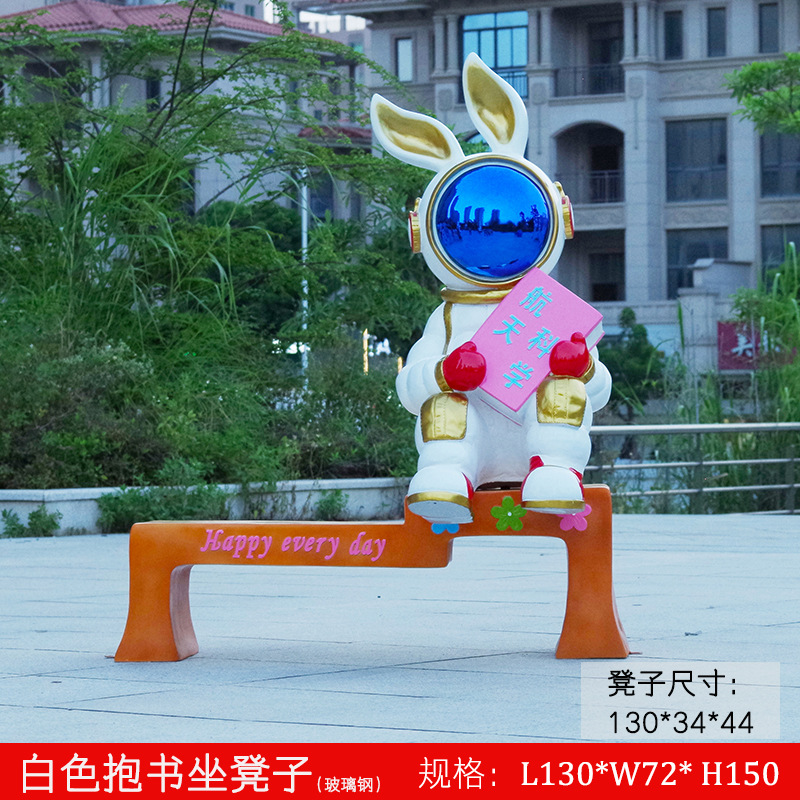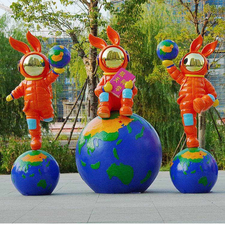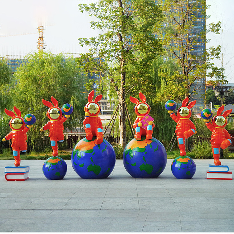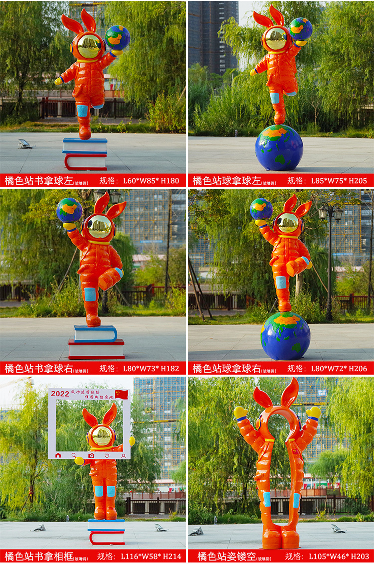 야외 유리 섬유 강화 플라스틱 빛나는 달빛 토끼 공간 토끼 큰 조각 그물 빨간 푸시 카드 공간 로켓 Meichen 쇼핑몰 장식스토어 가기