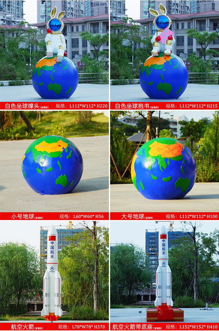 야외 유리 섬유 강화 플라스틱 빛나는 달빛 토끼 공간 토끼 큰 조각 그물 빨간 푸시 카드 공간 로켓 Meichen 쇼핑몰 장식