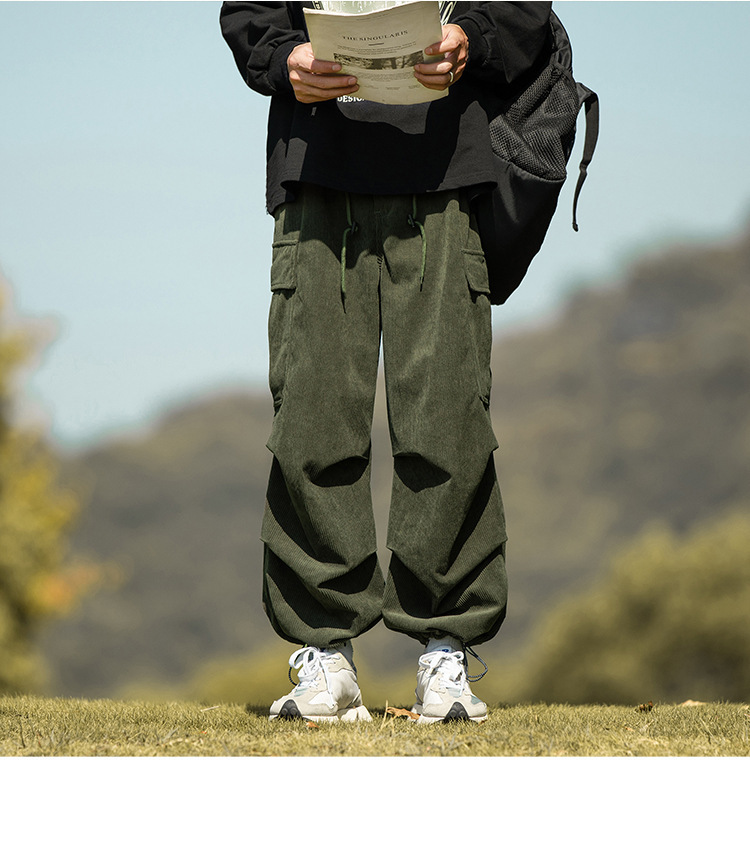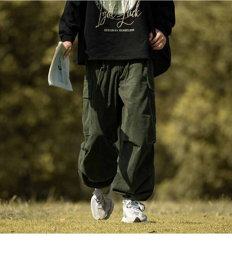 코듀로이 바지 남성 애호가 캐주얼 카키 바지 패션 브랜드 가을과 겨울 스트레이트 와이드 레그 팬츠스토어 가기